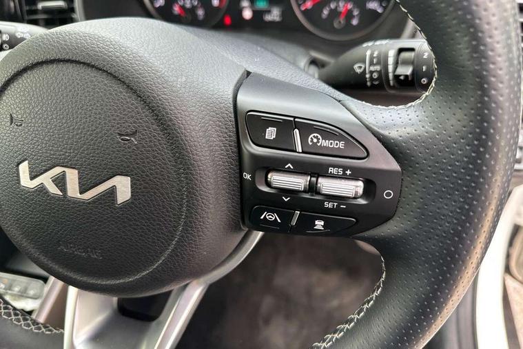 4.2" supervision colour cluster display, 8" touchscreen navigation, Apple car play/Android Auto with voice control, Blind spot collision avoidance assist, Blind spot collision warning, Drive mode selector, Electric power steering, Emergency call service, Emergency stop signalling system, External temperature display, Forward Collision-Avoidance Assist (FCA) - City/Pedestrian/Cyclist, Front parking sensors, Intelligent speed limit warning, Lane keeping assist system (LKAS), Driver attention warning (DAW) and High beam assist (HBA), Rear parking sensor, Reversing camera system, Smart cruise control, Trip computer, Intelligent Stop and Go, Audio system with 6 speakers, Bluetooth with music streaming, Front USB port, Steering wheel mounted controls, All round electric windows with drivers auto up/down function, Auto dimming rear view mirror, Automatic defog system, Automatic headlights control, Black rear roof spoiler with high mounted LED braking light, Black side sill, door garnish and wheel arch trims, Black/body colour bumpers, Body coloured exterior door handles, Chrome side window trim, Electrically adjustable/heated/folding door mirrors with LED indicators, Front and rear silver skid plates, Gloss black door mirrors with matt black lower housing, GT-Line body kit, Headlight levelling device, Heated rear window, High gloss black and satin radiator grille, LED Bi-function projection headlights with static bending, LED daytime running lights, LED front fog lights, LED position light, LED rear combination lights, Privacy glass - Rear windows and tailgate, Rain sensing front wipers, Rear fog lights, Rear side wing doors, Rear wash/wipe, Roof rails, Shark fin antenna, Solar windshield glass, Speed variable front aeroblade wipers, Tinted glass, Welcome and follow-me home light functionality, Windscreen Washer Level Warning, 12V power point front, 3 seat bench in 2nd row, 60/40 split folding rear seat, Air filter, All-round height adjustable headrests, Aluminium pedals, Automatic air conditioning, Centre armrest storage box, Centre console with cupholders, D-Cut perforated leather trimmed steering wheel, Dash illumination dimmer switch, Driver's seat height adjuster, Front and centre cabin lights, Front and rear door map pockets with bottle holder, Gear shift indicator, Glovebox illumination, GT-Line cloth/faux leather upholstery, Heated front seats, Heated steering wheel, ISOFIX Child seat top tethers and anchor fixings outer rear seats, Leather trimmed gearshift, Luggage area light, Luggage area parcel shelf, Luggage net, Luggage net with hooks, Overhead console lamp, Overhead console with sunglasses cases, Passenger front seatback pockets, Passenger seat height adjuster, Rear USB charging port, Satin chrome interior door handles, Single front passenger seat, Sunvisors with vanity mirror illumination (Driver and front passenger), Tilt/telescopic adjustable steering wheel, ABS with Electronic Brakeforce Distribution (EBD) and Brake Assist System (BAS), All round 3-point seatbelts, Electronic stability control (ESC) and vehicle stability management (VSM), Front passenger airbag cut-off switch, Front seatbelt pretensioners + load limiters, Height adjustable front seatbelts, Hill start assist control (HAC), Impact sensing auto door unlocking, Manual child lock in rear doors, Rear seat Occupancy alert, Seatbelt reminder warning, Twin curtain airbags, Twin front airbags, Twin front side airbags, Tyre pressure monitoring system, Alarm system, Door deadlocks, Engine immobiliser, Locking wheel nuts, Smart key with engine start/stop button, Speed sensitive auto door locking, Visible vehicle identification number, High gloss black centre fascia, 17" GT-Line alloy wheels, Tyre mobility kit,