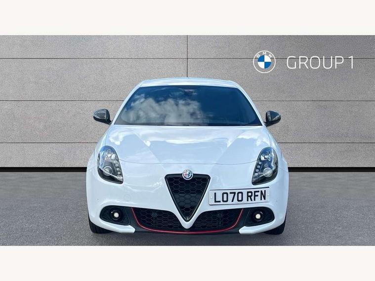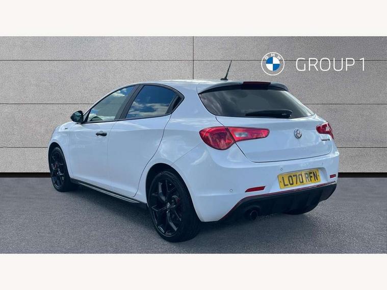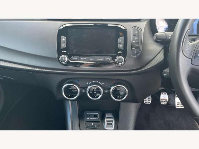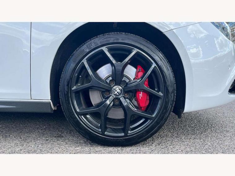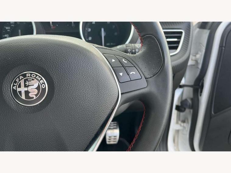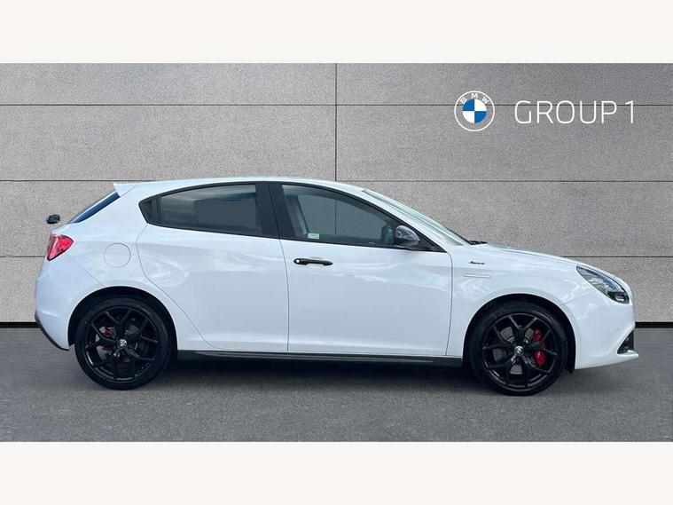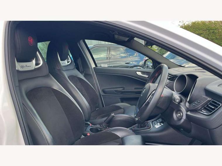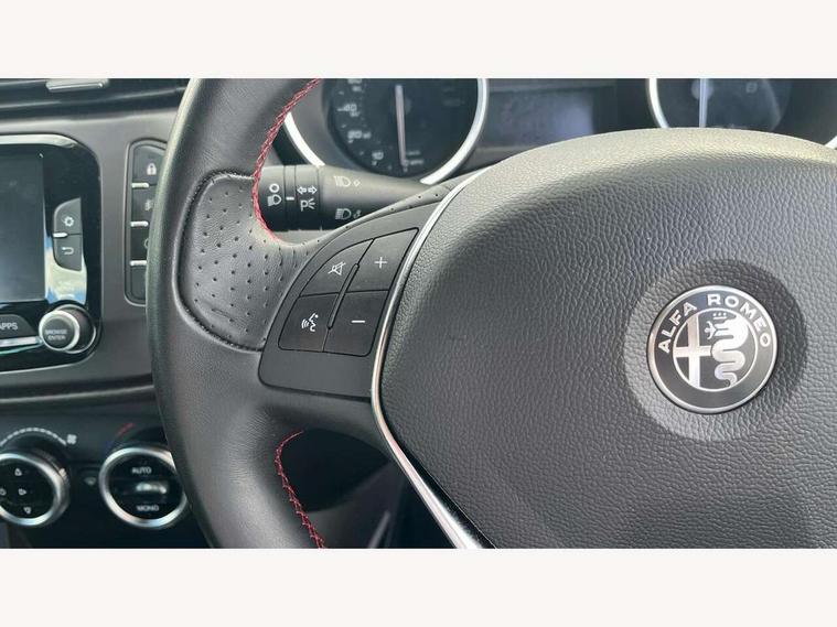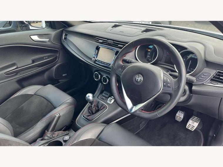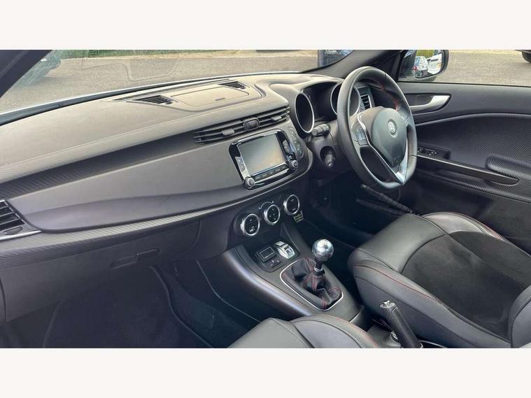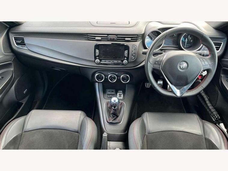 Cruise control, Drive mode selector, Front parking sensor, Matrix display with white illumination, Multifunctional display and trip computer, PAS, Rear parking sensor, Service interval indicator, Stop/start system, Uconnect 6.5" colour touchscreen radio nav with preloaded 3D maps, TMC, bluetooth audio streaming, voice recognition, DAB, USB, aux-in, Uconnect internet access, Q2 electronic differential, Hi-fi BOSE sound system with digital amplifier (8 speakers + 1 central + subwoofer), Body coloured bumpers, Carbon look healight bezel, Chrome effect window sills, Dark miron exterior finishing, Dark sprint badge, Dark tinted rear windows, Electrically heated and adjustable satin finish wing mirrors, Enlarged sports exhaust finisher, Front and rear electric windows, Front fog lights, LED daytime running lights, Privacy glass, Rear LED cluster lights, Rear spoiler, Rear wiper, Side skirts, Sport front splitter and rear DAM with red trim, 12V socket, 12V socket in luggage compartment, 2 outer rear head restraints, 60/40 split folding rear seat, Aluminium sports pedals, Carbon effect dashboard surround and door panels, Cooled glovebox, Cupholder, Dark headlining, Dual zone automatic climate control including rear air vents, Front centre armrest with storage compartment, Front head restraints, Front seat back storage pockets, Height adjustable drivers seat, Height adjustable passenger seat, Isofix child seat preparation, Leather steering wheel with phone and radio controls, Leather/Alcantara upholstery with sports seats + red stitiching, Rear armrest with storage + third rear headrest + through-load system, Red stitching on steering wheel, handbrake & gearstick gaiter, Satin Chrome door handles, velvet floor mats, Carbon style pack - Giulietta Sprint, 3x3 point rear seatbelts, 6 Airbags-driver, passenger, front side and window, Front airbag deactivation on passenger side, Front and rear dams read moulding, Red brembo brake calipers, Tyre pressure monitoring system, VDC with hill holder (ABS + ASR + EBD + Brake assist), Alfa code immobiliser and alarm, Electronic key with remote central locking and boot release, Safety locks, Matte black trim inserts, Sports dials with white illumination, Monochrome central wheel caps, Tyre repair kit,