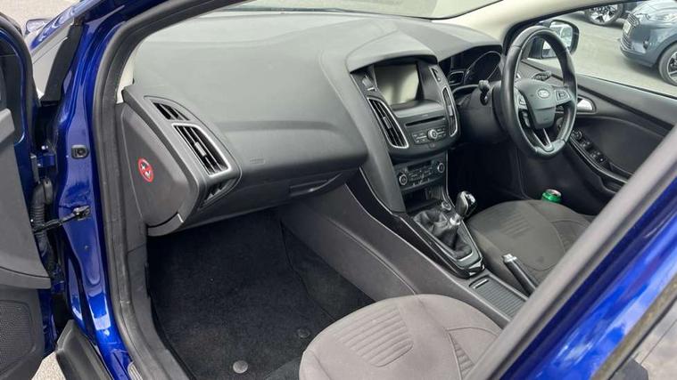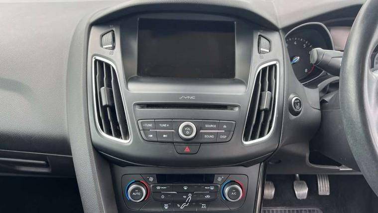 Digital clock, Easy fuel capless refuelling system, Eco mode, Electric boot release, PAS, Rear parking sensor, TFT cluster screen, Trip computer, 6 speakers, Aux input, Steering column with mounted audio controls, SYNC 2 DAB radio/CD, 8" colour touch screen, emergency assistance, Bluetooth connection, advanced voice control, USB connection, 'Quickclear' heated windscreen/heated washer jets, Auto dimming rear view mirror, Automatic headlights, Automatic rain sensing wipers, Body colour bumpers, Body colour door handles, Body colour door mirrors, Body colour rear spoiler, Chrome finish on upper door line, Chrome radiator grille and surround, Electric adjustable heated door mirrors, Front fog lights, Front variable intermittent wipers with electric wash, Heated rear window, Tailgate wash/wipe, 3 spoke leather steering wheel, 60/40 split back and cushion rear seats with 2 height adjustable headrests, Centre console storage box/armrest, Driver's seat with adjustable lumbar support, Dual electronic automatic temperature control air conditioning - CFC-free, Height adjustable front headrests, Isofix child seat preparation, Reach + rake adjustable steering column, Sports style front seats, ABS+Electronic Brake force Distribution, Active city stop, Driver airbag, ESP with traction control + emergency brake assist, Front inertia reel height adjustable seatbelts with pre-tensioners, Front passenger airbag, Front side airbags, Hill start assist, Side curtain airbags, Three rear inertia reel lap/diagonal seatbelts, Torque vectoring brake, Tyre pressure monitoring system, Immobiliser-Passive Anti-Theft System (PATS), Key free system, MyKey system, Remote central double locking, Thatcham Cat.1 alarm,