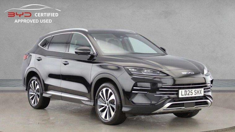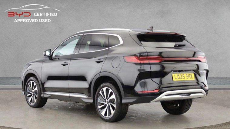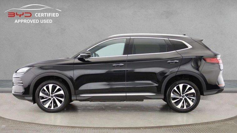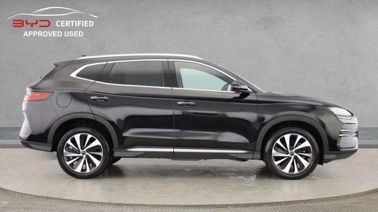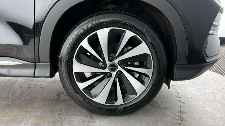 12.3" TFT full LCD instrument panel, 360 camera, Adaptive Cruise Control (ACC) and Intelligent Cruise Control (ICC), Automatic vehicle hold, Blind spot detection, BYD voice control assistant "Hi, BYD", Controller Deceleration Parking (CDP), Drive mode select (Eco, normal, sport, snow), e-Call (emergency call), Electric tailgate release, Emergency Lane Keeping Assist (ELKA), Forward collision warning, Front and rear parking sensors, Front cross traffic alert and front cross traffic brake, Head up Display, Indirect driver fatigue management, Intelligent Speed Limit Control (ISLC), Keyless system entry and start, Lane change assist, Lane Departure Assistant (LDA) and Lane Departure Warning (LDW), Lane departure prevention, PAS, Predictive collision warning, Rear collision warning, Rear cross traffic alert and rear cross traffic brake, Rollover Control System (RMI), Smartphone wireless charging, 2 x 15W, Traffic sign recognition (TSR), Vehicle-to-Load (V2L) function, 11kW on board charger, Mode 3 Type 2 charging cable (3 phase), V2L (Vehicle to load) power strip - Type F, 15.6" Electrically rotatable touchscreen, FM/DAB+ radio, Front USB ports, 1 x 18W Type C, 1 x 60W Type C, Infinity sound system with 10 speakers, Rear USB ports, 2 x 18W Type C, Aluminium roof rails, Auto dimming interior rear view mirror, Auto headlamps (on/off), Dynamic welcome lights, Electric folding and heated door mirrors, Emergency tow hook, Exterior mirror footlights, Follow me home headlights (The headlights turned on in advance and delayed off function), Front windscreen, UV protection, thermal insulation and sound proofing, High beam assist, LED 3rd brake light, LED daytime running lights, LED Headlights, LED taillights, One touch electric front/rear windows with pinch protection, Panoramic sunroof with anti-pinch sensor and electrically adjustable sunshade, Rain sensor windscreen wipers, Rear fog lights, Rear side wing doors, Rear window and rear windscreen with tinted glass, Rear wiper, 12V power outlet, 3 seat bench in 2nd row, 8 way electrically adjustable drivers seat, Adjustable rear headrests, Boot parcel shelf, Driver and passenger sunvisors with illuminated vanity mirrors, Driver seat memory function, Front centre armrest with 2 cupholders, Front LED reading lights, Front passenger seat with 4-way electric adjustment, Front seat footlights, Heat pump, Heated front seats, Heated steering wheel, Integrated headrest in front seats, ISOFIX and i-Size for front passenger and outer rear seats, LED front door lights, Nylon floor mats, PM2.5 air filter, PM2.5 air purification system, Rear air vents, Rear armrest with 2 cupholders, Rear side LED reading lights, Rhythm-reactive multi-colour ambient lighting, Single front passenger seat, Split folding rear seats - 40/60, Vegan leather multifunction steering wheel, Vegan leather upholstery, Ventilated front seats, 3x3 point rear seatbelts, ABS/EBD, Automatic emergency braking system, Brake override system (BOS), Child presence detection, Comfort stop, Door open warning, Driver airbag, Electric parking brake, Force limiting pre-tensioned front seat belts, Front centre airbag, Front passenger airbag, Front passenger airbag deactivation, Front side airbags, Hill descent control, Hill hold control, Hydraulic Brake Assist (HBA), Hydraulic brake boost, Mechanical child safety lock, Rear middle seat force limiting seat belt, Rear seat belt pretensioners, Reflective vest, Side curtain airbags, Traction control system (TCS), Tyre pressure monitoring system (TPMS), Vehicle Dynamics Control System (VDC), Warning triangle, 2 x Smart keys, Anti theft alarm system, Automatic door locking, 19" Bi-colour alloy wheels, Tyre nut covers remover, Tyre repair kit,