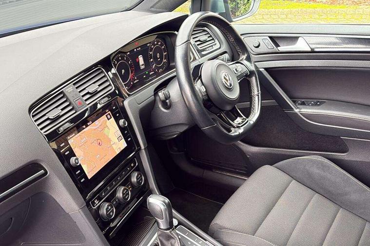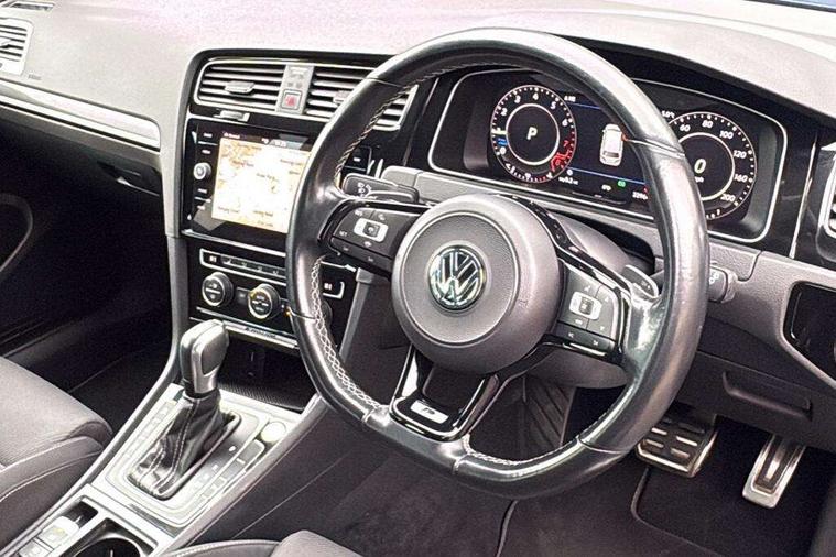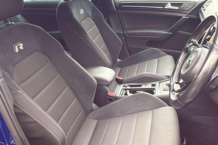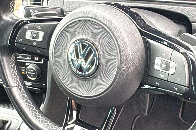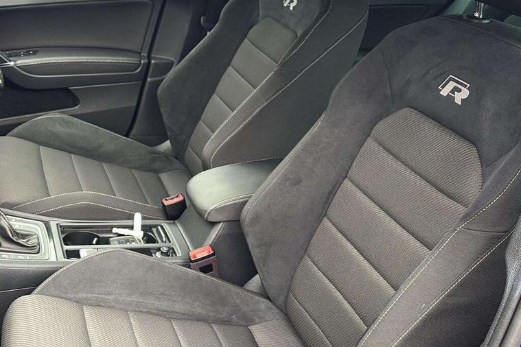 'Lights On' Reminder warning buzzer, 8" colour touch screen, ACC - Adaptive cruise control with front assist, forward collision warning, distance monitoring, city emergency brake and speed limiter, Bluetooth telephone and audio connection for compatible devices, Brake pad wear indicator warning light, Driver alert system, Driving Mode Selection with four preset modes - Eco, normal, sport or individual modes, Multifunction computer with visual gear change recommendation for fuel consumption, Progressive power assisted steering, Rear view camera, Speedo, rev counter, electronic odometer, trip, service interval display, exterior temperature and fuel gauge, Think blue trainer driver tips and journey analysis, Ultrasonic front and rear optical and audible parking sensors, Unique R instrument cluster, Warning buzzer and light for front seatbelts unfastened, Anti-tramp function, Battery regeneration during braking, Lowered sports suspension, XDS electronic differential lock, DAB Digital radio receiver, Driver Personalisation profile selection, MDI multi device interface, MP3/WMA compatability, Premium USB cable in choice of either Apple or Android smartphone compatibility, SD card slot, SMS Functionality, Title and cover art display, USB charging socket, Volkswagen media control, Anthracite wheel arch protection, Automatic coming/leaving home lighting function, Black rear diffuser, Body colour door handles, Body colour front and rear bumpers, Body colour rear roof spoiler, Chrome trimmed front air intake surround, Dusk sensor + automatic driving lights, Electrically adjustable and heated door mirrors, Front and rear electric windows, Fully galvanised body, Heated rear windscreen, High level 3rd brake light incorporating LED Technology, LED daytime running lights, LED rear lights, LED rear number plate lights, Rain sensor and automatic dimming interior rear view mirror, Rear fog lamp, Rear tinted glass 65% light absorbing from B pillar backwards, Rear window aerial, Rear window wash/wipe with intermittent wipe, Reflectors in all doors, Twin exhaust tailpipes x2, Unique R badging, Unique R design key, Unique R radiator grille with matt chrome strip, Windscreen wipers/ intermittent wipe + 4 position delay, 12V socket in luggage compartment, 3 rear headrests, 3 spoke steering wheel, 4 load lashing points in luggage compartment, 60/40 split folding rear seat backrest and flat folding into boot floor, Ambient lighting in front door armrest, light strips below trim in front doors and reflectors in front and rear doors, Bag hook in luggage compartment x 2, Black decorative sleeve on gear handles, Black roof lining, Climate control - 2 zone electronic air conditioning with automatic air recirculation and allergy filter, Cooled glovebox, Cover for storage compartment in centre, Dust/pollen filter, Front + rear carpet mats, Front centre armrest with storage compartment and two rear air vents, Front footwell illumination, Front seat back storage pockets, Grab handles front x 2, rear x 2 with integrated coat hooks, Height and reach adjustable steering wheel, Illuminated door sills, Illuminated vanity mirrors, Instrument lighting white adjustable panel illumination, Interior light delay, Isofix preparation for 2 rear child seats, LED front and rear reading lights X 2, Load through provision with rear centre armrest and cupholders x2, Luggage compartment cover with stowable convenience opening, Luggage compartment lighting, Multifunction leather steering wheel with R Logo and leather trimmed gear knob including paddle shift, Overhead storage box, Stainless steel pedals in clutch, brake and accelerator, Storage box in luggage compartment, Storage compartment in roof console with cover, Storage compartments in front doors, Storage compartments in rear doors, Sun visors, Variable boot floor, height adjustable and removable, Convenience Pack - Golf, Mirror pack - Golf, Winter pack - Golf, 3 rear three point seatbelts, Airbags - Driver and rear passenger curtain, driver knee, front side impact, driver and passenger airbag with passenger deactivation switch, Anti-lock Braking System (ABS) with Hydraulic Brake Assist (HBA), Automatic post collision braking system, Child locks on rear doors, Driver/Passenger optimised head restraints, Electronic parking brake with auto hold, Electronic stability control (ESC) including Electronic differential lock (EDL) and ASR (Traction control) with deactivation via infotainment system, Front ventilated disc brakes and rear disc brakes, Pre crash preventive occupant protection, Predictive pedestrian protection, Three point height adjustable front seatbelts with tensioners, Tyre pressure loss indicator, Volkswagen roadside assistance, Alarm with interior protection and deactivation via infotainment system, Electronic engine immobiliser, Keyless entry with start/stop button on centre console, Carbon touch decorative inserts in dash and door panels, Chrome plated air vent surround, Chrome-plated light switch surround, Piano black decorative inserts in centre console, Full size wheel trims, Steel space saver spare wheel,
