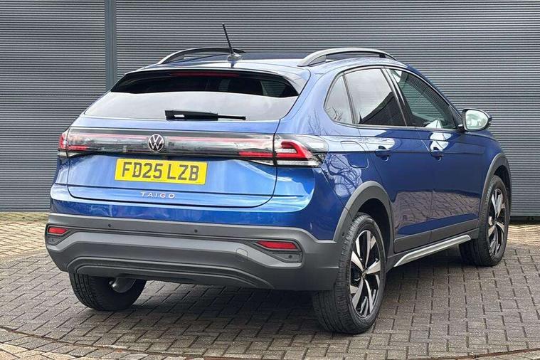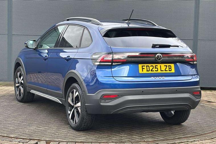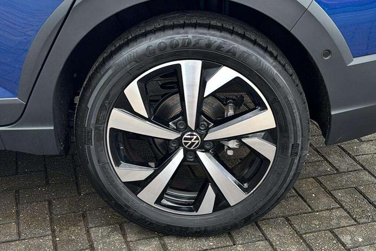 8" Digital cockpit basic display, Adaptive cruise control, Advanced driver attention and drowsiness monitor, Dynamic road sign display, e-Call (emergency call), Power Steering, Rear view camera, Travel assist including emergency assist, Washer fluid level indicator, Wireless Charging including Bluetooth, Start-stop system with battery regeneration (recuperation - energy recovery during braking), Digital radio reception (DAB+), WeConnect plus, Ambient lighting with logo projection, Aspherical driver's exterior mirror, Body coloured bumpers, Body coloured exterior mirror housings and door handles, Electric windows, External USB type C socket and charging sockets, Heat insulating glass windscreen, LED rear combination lamp, LED third brake light, Left convex exterior mirror, Power folding adjustable/heated exterior mirrors and front passenger exterior mirror lowering function, Rear fog light on one side, reversing light on both sides, Rear side wing doors, Rear wash/wipe with intermittent wipe setting, Side windows in heat-insulating glass, from B-pillar and rear window dark tinted, 'Slash/ Austin' Cloth upholstery, 12V socket in centre console, 2 front reading lights, 3 rear head restraints, 3 seat bench in 2nd row, Black carpets, Ceramique headliner, Child seat anchor for child seat system i-Size, 2x top tether and child seat anchor in front on front passenger side, Door and side trim panels in titan black, Driver and front passenger seat height adjustment, Front centre armrest, Handbrake lever handle in leather, Height and reach adjustable steering wheel, Leather trimmed gear knob, Leather wrapped multifunction steering wheel with paddle shift, Luggage compartment floor, Luggage compartment light, Lumbar support for driver's and front passengers seat, Seat covers in titanium black, Single front passenger seat, Split folding backrest with centre armrest and unsplit rear seat bench, Storage compartment under front seats, Sun visors with illuminated vanity mirrors, Titanium black instrument panel, Chrome Package - Taigo, Drivers assistance package - Taigo, Light and sight pack - Taigo, 2 x 3-point seatbelts/outer rear seats with ECE label, 3-point seat belts in front with pretensioner and height adjustment, 3-point seatbelt for centre rear seat, Driver and front passenger airbag with front passenger airbag deactivation, Driver and front passenger safety-optimised head restraints, Electronic stability control, Extended and predictive pedestrian/ cyclist protection, Front and rear disc brakes, Front curtain and side airbags with center airbag, Hill start assist, Manual rear child locks, Single tone horn, Tyre pressure loss indicator, Anti-theft alarm system with interior monitoring, backup horn, and towing protection, Keyless locking and starting system keyless access with safelock, Black (slush) Dashboard, Lava stone black gloss/matt decorative inserts in dash and front door panels, Low rolling resistance tyres,