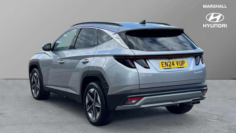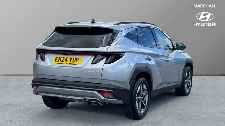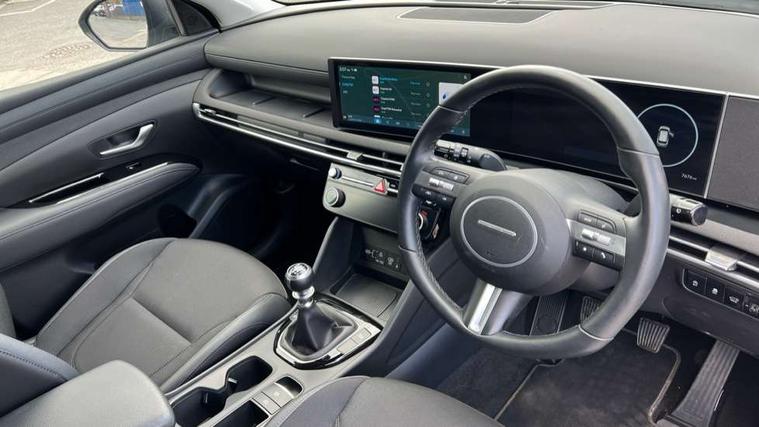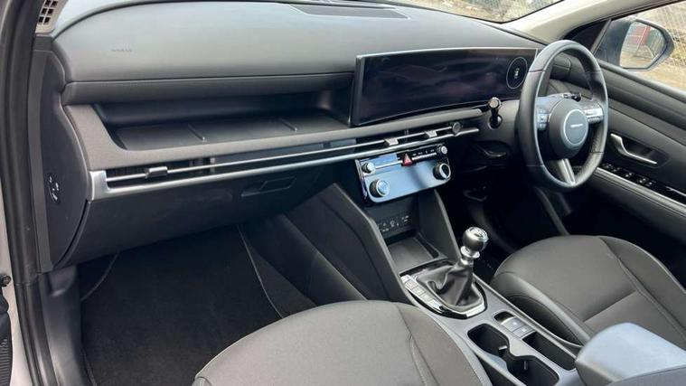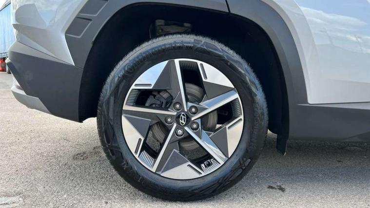 12.3" LCD display with driver's supervision instrument cluster, 12.3" widescreen navigation with bluelink and mapcare, Bluetooth system, Cruise control, Digital clock, Drive mode selector, Driver attention warning, E-call, Emergency stop signalling system, Forward Collision Avoidance Assist (FCA) - Car, Pedestrian and Cycle, Forward Collision Avoidance Assist Junction Turning (FCAJX), Front and rear parking sensors, Hyundai road side assistance, Intelligent speed limit assist, Lane follow assist, Lane keep assist, Over the air updates(OTA), PAS, Rear camera and guidance parking system, Rev counter, Smart power tailgate, Tailgate open warning light, Trip computer, Trip odometer, Voice recognition, Water temperature gauge, Windscreen washer fluid sensor and warning indicator, Wireless Apple CarPlay/Android Auto, Wireless phone charging pad, 2 front and 2 rear USB-C ports, DAB Digital radio, Krell premium audio system with 8 speakers and subwoofer, Steering wheel mounted audio/phone controls, Adjustable intermittent front windscreen wipers with aero wiper blade, Auto dimming rear view mirror, Automatic defog system, Automatic headlights with dusk sensor, Automatic windscreen wipers with rain sensor, Black wheel arches, Body colour bumpers, Body colour door mirrors with integrated indicators, Body colour exterior door handles, Electrically adjustable, heated and power folding door mirrors, Follow me home headlights, Front and rear electric windows with anti-trap mechanism and one touch control, Front fog lights, LED daytime running lights, LED Headlights, LED rear lights, Positioning Lights - LED, Privacy glass - Rear windows and tailgate, Rear side wing doors, Rear wash/wipe with intermittent wipe setting, Roof rails, Soft touch rear door paneling, Tinted glass with windscreen shade band, Trailer stability assist, 12V power outlets in front console and luggage compartment, 3 seat bench in 2nd row, 40/20/40 split folding rear seat, 64 colours interior ambient lighting, Adjustable head restraints (Up and down), Cupholders in rear armrest, Door courtesy lights, Driver and passenger sunvisors with illuminated LED vanity mirrors, Driver's seat electric adjustments, Dual zone climate control, Front and rear door pockets, Front armrest with storage box, Front centre console and door bottle holders, Front passenger's seat electric adjustments, Heated front seats, Heated rear seats, Heated steering wheel, Height/reach adjustable steering column, Illuminated/air conditioned glove compartment, ISOFIX child seat anchorage points attached on outer rear seats, Leather wrapped steering wheel and gear knob, LED interior lighting, Luggage compartment lighting, Luggage cover, Luggage hooks, Luggage net, Map and reading lights, Premium cloth/leather upholstery, Rear seat remote folding function, Rear side window sunblind, Reclining rear seats, Retractable load cover, Single front passenger seat, Sunglasses holder, Touch sensitive climate controls with temperature dials, TUCSON branded metal door scuff plate, Underfloor boot compartment, Trailer wiring package - Tucson, 3x3 point rear seatbelts, Active bonnet, Airbag - Front, front side, curtain and centre front airbags, Anti-lock brake system (ABS), Brake assist function, Childproof rear door locks, Curtain airbag roll over sensor, Downhill brake control, Electric parking brake, Electronic stability control, Front and rear seatbelt reminder, Front passenger airbag deactivation switch, Front seatbelt pretensioners, Hill start assist control (HAC), Multi-Collision braking, Outer rear seatbelt height adjustment, Seatbelt height adjustment for front seats, Traction control, Tyre pressure monitoring system with individual tyre pressure display - TPMS, Vehicle stability management, Deadlocks, Immobiliser, Locking wheel nuts, Remote control central locking, Smart key with keyless entry and engine start/stop button, Speed sensitive auto door locking, Thatcham category 1 alarm, 18" Alloy wheels, Tyre repair kit,