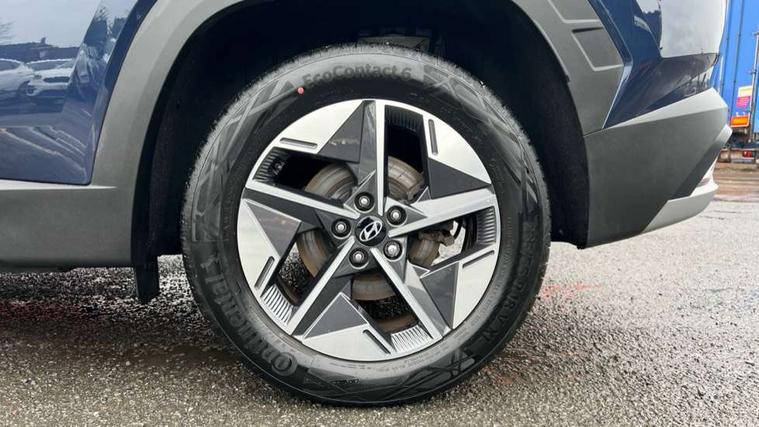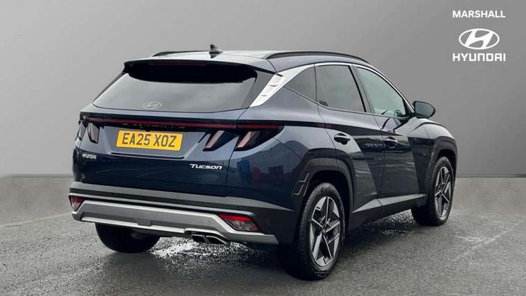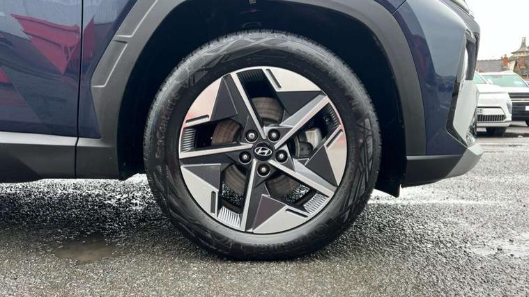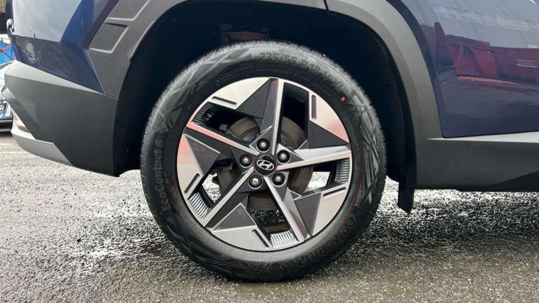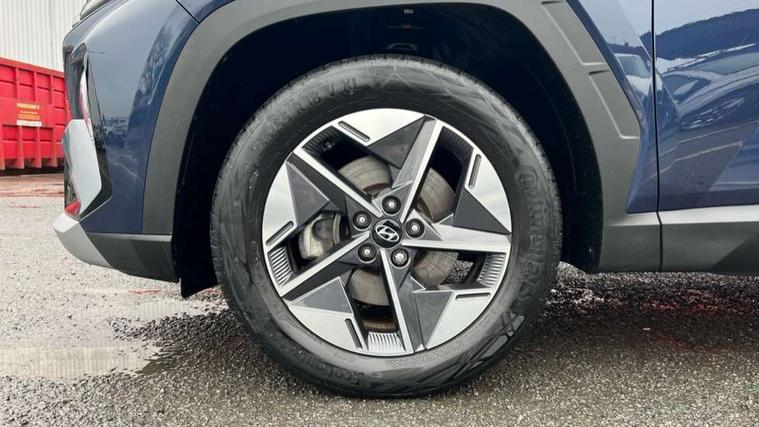 12.3" LCD display with driver's supervision instrument cluster, 12.3" widescreen navigation with bluelink and mapcare, Bluetooth system, Cruise control, Digital clock, Drive mode selector, Driver attention warning, E-call, Emergency stop signalling system, Forward Collision Avoidance Assist (FCA) - Car, Pedestrian and Cycle, Forward Collision Avoidance Assist Junction Turning (FCAJX), Front and rear parking sensors, Hyundai road side assistance, Intelligent speed limit assist, Lane follow assist, Lane keep assist, Over the air updates(OTA), PAS, Rear camera and guidance parking system, Rev counter, Smart power tailgate, Tailgate open warning light, Trip computer, Trip odometer, Voice recognition, Water temperature gauge, Windscreen washer fluid sensor and warning indicator, Wireless Apple CarPlay/Android Auto, Wireless phone charging pad, 2 front and 2 rear USB-C ports, DAB Digital radio, Krell premium audio system with 8 speakers and subwoofer, Steering wheel mounted audio/phone controls, Adjustable intermittent front windscreen wipers with aero wiper blade, Auto dimming rear view mirror, Automatic defog system, Automatic headlights with dusk sensor, Automatic windscreen wipers with rain sensor, Black wheel arches, Body colour bumpers, Body colour door mirrors with integrated indicators, Body colour exterior door handles, Electrically adjustable, heated and power folding door mirrors, Follow me home headlights, Front and rear electric windows with anti-trap mechanism and one touch control, Front fog lights, LED 3rd brake light, LED daytime running lights, LED Headlights, LED rear lights, Positioning Lights - LED, Privacy glass - Rear windows and tailgate, Rear side wing doors, Rear wash/wipe with intermittent wipe setting, Roof rails, Soft touch rear door paneling, Tinted glass with windscreen shade band, Trailer stability assist, 12V power outlets in front console and luggage compartment, 3 seat bench in 2nd row, 40/20/40 split folding rear seat, 64 colours interior ambient lighting, Adjustable head restraints (Up and down), Cupholders in rear armrest, Door courtesy lights, Driver and passenger sunvisors with illuminated LED vanity mirrors, Driver's seat electric adjustments, Dual zone climate control, Front and rear door pockets, Front armrest with storage box, Front centre console and door bottle holders, Front passenger's seat electric adjustments, Heated front seats, Heated rear seats, Heated steering wheel, Height/reach adjustable steering column, Illuminated/air conditioned glove compartment, ISOFIX child seat anchorage points attached on outer rear seats, Leather wrapped steering wheel and gear knob, LED interior lighting, Luggage compartment lighting, Luggage cover, Luggage hooks, Luggage net, Map and reading lights, Premium cloth/leather upholstery, Rear seat remote folding function, Rear side window sunblind, Reclining rear seats, Retractable load cover, Single front passenger seat, Sunglasses holder, Touch sensitive climate controls with temperature dials, TUCSON branded metal door scuff plate, Underfloor boot compartment, Trailer wiring package - Tucson, 3x3 point rear seatbelts, Active bonnet, Airbag - Front, front side, curtain and centre front airbags, Anti-lock brake system (ABS), Brake assist function, Childproof rear door locks, Curtain airbag roll over sensor, Downhill brake control, Electric parking brake, Electronic stability control, Front and rear seatbelt reminder, Front passenger airbag deactivation switch, Front seatbelt pretensioners, Hill start assist control (HAC), Multi-Collision braking, Outer rear seatbelt height adjustment, Seatbelt height adjustment for front seats, Traction control, Tyre pressure monitoring system with individual tyre pressure display - TPMS, Vehicle stability management, Deadlocks, Immobiliser, Locking wheel nuts, Remote control central locking, Smart key with keyless entry and engine start/stop button, Speed sensitive auto door locking, Thatcham category 1 alarm, 18" Alloy wheels, Tyre repair kit,
