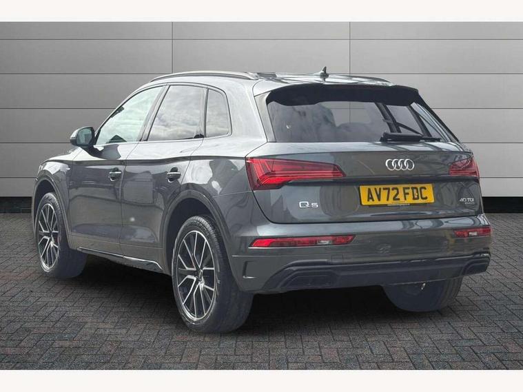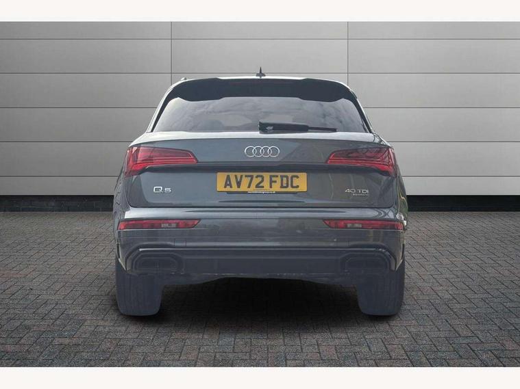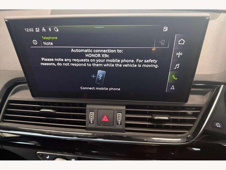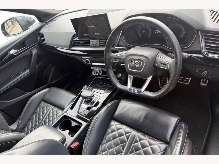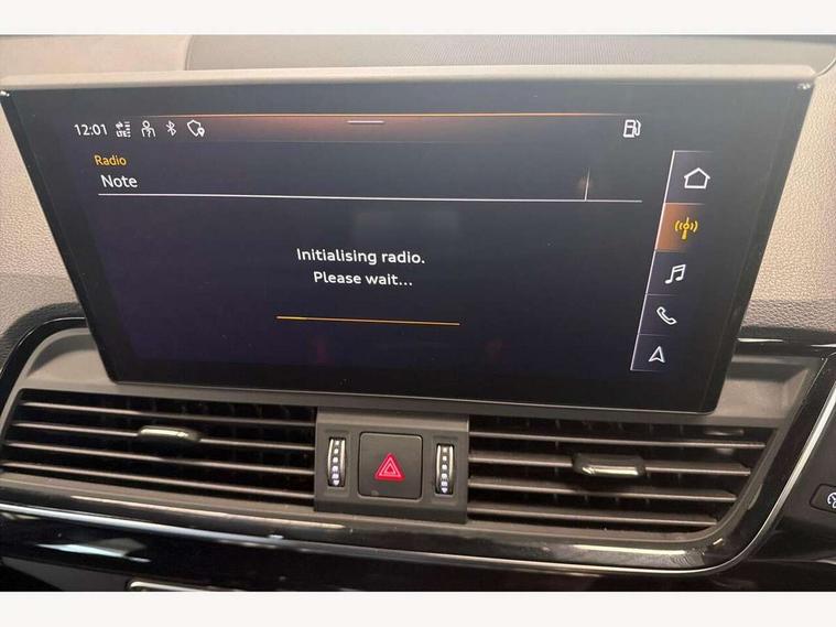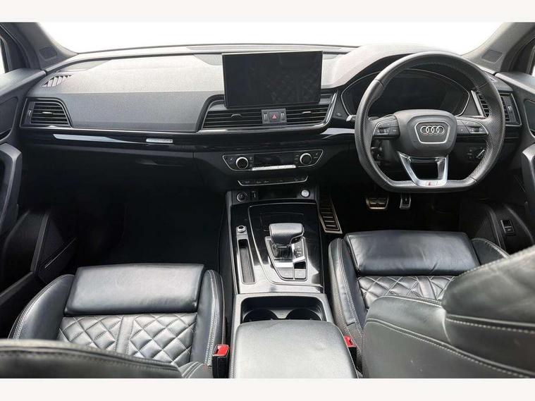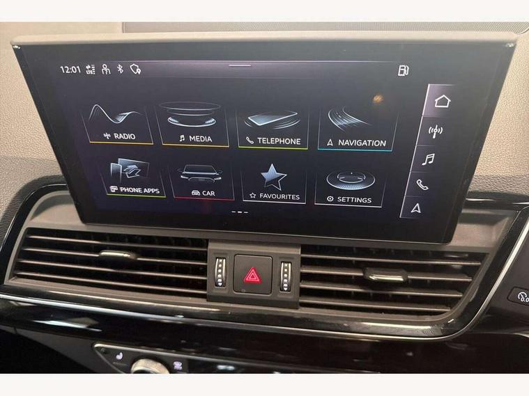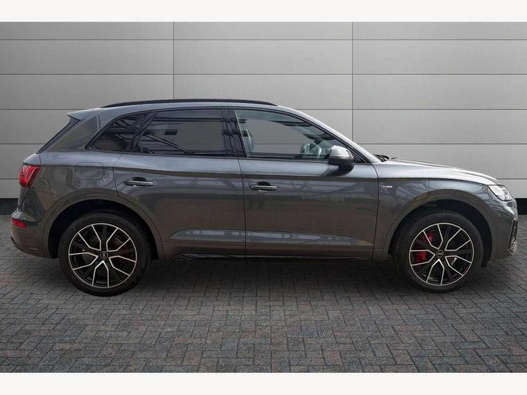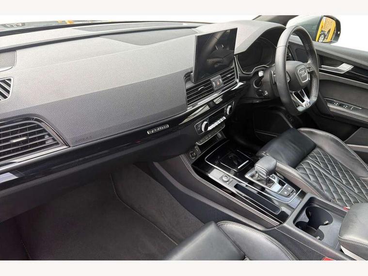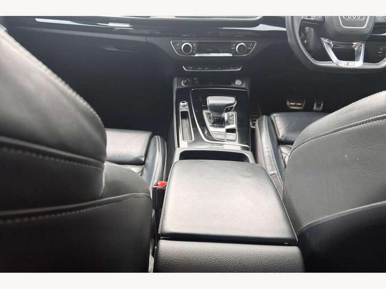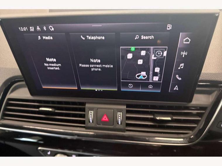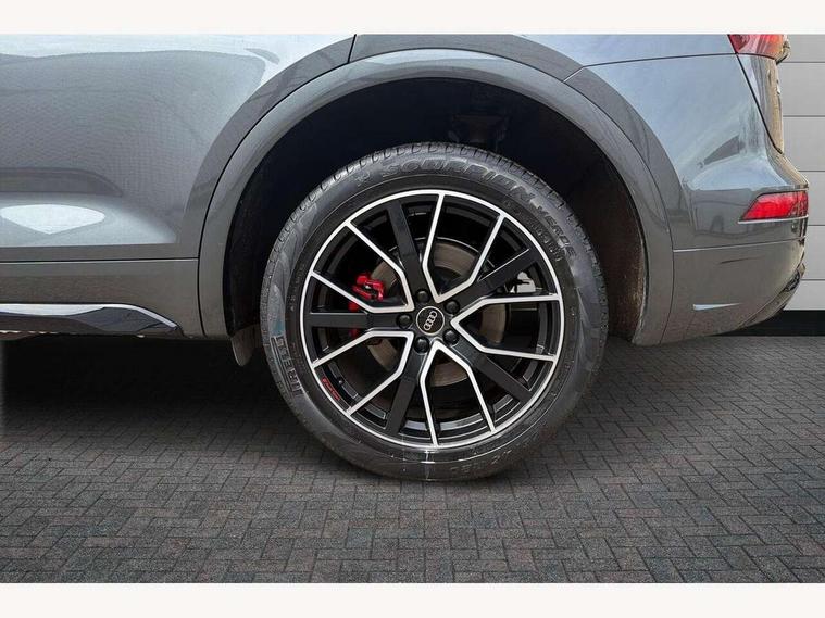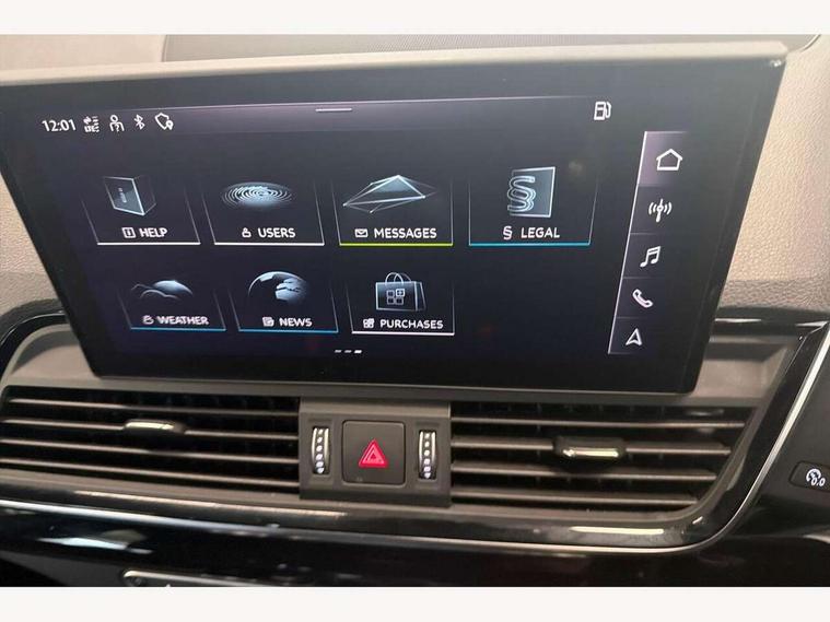 Audi connect safety and service (e-call), Audi connect with Amazon Alexa Integration, Audi drive select, Audi virtual cockpit plus with 12.3" screen and three different layout designs, Audi wireless smartphone interface, Automatic start-stop system with coasting functionality and efficiency programme, Bluetooth interface, Electro - mechanical power assisted steering, MMI navigation plus with 10.1" touch screen, Power tailgate, Reversing camera, Service interval indicator, Voice control system with Audi hotword activation "Hey Audi", Diesel particulate filter, Quattro on demand, S line sports suspension, 2 x USB charging port with aux input socket, DAB Digital radio, Acoustic windscreen, Audi matrix LED headlights with dynamic front and rear indicators, Audi rings at front and rear in black, Audi rings decal on rear doors, Auto dimming door mirrors, Auto dimming rear view mirror, Automatic headlights and windscreen wipers, Black door mirrors, Black roof rails, Body colour bumpers, Body colour underbody protection, Chrome plated exhaust trims, Daytime running lights, Door sills in Selenite silver, Electric adjustable/heated/folding door mirrors, Front air inlet surrounds in titanium black, Front and rear electric windows, Headlight washers, High gloss black B pillar trims and triangular rear door trim, High level LED brake light, Rear chrome trim strip below lights, Rear privacy glass and rear side windows, Rear side wing doors, Rear wiper, Roof bars, S Line rear spoiler, 3 rear headrests, 4 way electric lumbar support for driver and front passenger, 40:20:40 split folding 3 rear bench seat in 2nd row with rear centre armrest, Black cloth headlining, Comfort front centre armrest, Contrast stitching on seats, steering wheel and gear lever gaiter, Deluxe 3 zone electronic climate control, Electrically adjustable front seats, Fine Nappa leather upholstery with diamond pattern contrast stitching + front sport seats with S embossed logo, Front/rear floor mats, Gear lever in black leather, Heated front seats, Height adjustable front head restraints, Height/reach adjustable steering column, Illuminated door sill trims with S logo, ISOFIX child seat mounting and top tether, Rear seat bench plus, Removable luggage compartment floor, Single front passenger seat, Stainless steel pedals, Sunvisors with vanity mirrors, Black styling package - Q5 Edition 1, Extended interior upholstery pack - Q5, Extended LED Interior multi coloured Lighting Pack - Q5, 3 point seatbelts on all seats, 6 airbags - Driver, front passenger, curtain and side airbags, Electrically operated child locks on rear doors, Electromechanical parking brake, Electronic stabilisation control including ABS, ASR and EDL, Front and rear brake calipers painted in red, Front passenger airbag deactivation, Hill descent control, Hill hold assist, Multi collision brake assist, Pop-up bonnet for pedestrian protection, Pre sense city, Seat belt force limiter, Seatbelt monitoring, Tyre pressure warning, Warning triangle and first aid kit, Anti theft alarm, Anti-theft wheel bolts, Keyless Go access/ignition system, Remote central locking, Piano black finish inlay,