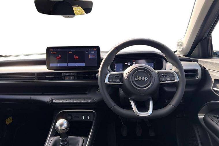 (AEB) Autonomous Emergency Braking with pedestrian and cyclist recognition, 10.25" Full TFT reconfigurable colour cluster, 180 Degree rear camera with drone view, 360 degree parking sensors, Adaptive cruise control, All-Terrain Mode Selector, Apple Carplay/Android Auto with wireless mirroring, BSRF connectivity box, Connectivity services, Drowsy driver detection system, eCall emergency call system, Keyless Start/Engine On Button, Lane keep assist, Odometer, PAS, Quick Guide English, Rear parking sensors, Rear view camera with dynamic grid lines, Telematic box and connected services, Traffic sign recognition, Urban blind spot monitor, Warranty Booklet - UK, Wireless charging, Battery default, High efficiency alternator, Rear USB port with type-C charging, 3rd brake light, 7 Slots grille in gloss black, All power windows express Up/Down, Automatic headlights, Automatic high/low beam, Body colour exterior door handles, Day time running light, Frameless auto dimming interior rear view mirror, Full LED headlights, Gloss black mirror caps, LED Fog lamps with cornering function, LED rear lights, Power foldable mirrors, Rain sensor, Rear side wing doors, Rear wiper, Silver skid plates, Welcome/leaving lighting, Wiring preparation for towing group by Mopar, 3 rear headrests, 3 seat bench in 2nd row, Automatic A/C (1 Zone), Central console dividers x2, Driver and front passenger sunvisor with vanity mirror, Foldable second row seats 40/60 - Fix and Fold, Front and rear velour floor mats, Front central armrest with storage, Front head restraints, Front passenger grab handle, Front passenger isofix child seat attachment, Front seat backrest pocket, Height adjustable cargo floor, I am Jeep label, Single front passenger seat, Synthetic leather steering wheel, Anti-lock braking system (ABS), Child locks on rear doors, Electric parking brake, ESC - Electronic Stability Control + traction control, Hill descent control, Kit fix and go predisposition/housing only, Rear seat ISOFIX, Three 3 point rear seatbelts, Volumetric anti theft alarm, Painted silver dashboard, 18" Diamond cut alloy wheels painted in matt black with summer not chainable, Fix and go tyre repair kit,