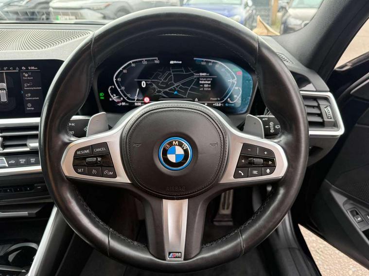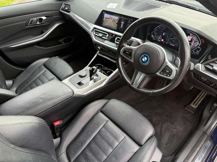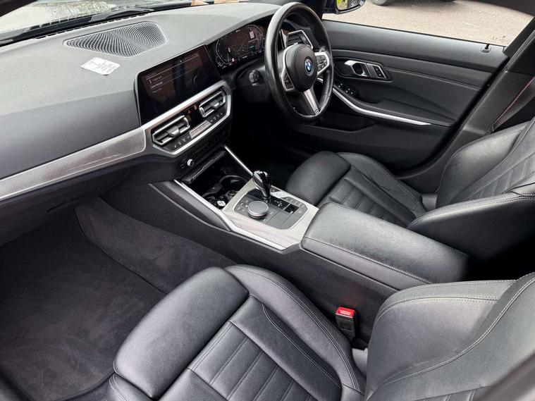 Active guard plus, Attentiveness assist, Auto start-stop, Bluetooth hands free facility with USB audio interface with audio streaming, BMW ConnectedDrive oline services with BMW apps, BMW service history, BMW Teleservices, Brake pad wear indicator in front and rear, Check Control warning system for monitoring of lights and door/luggage compartment open warning, Condition based service, Cruise control with brake function + speed limiter, Electric power steering with Servotronic steering optimised at all speed ranges, Gearshift time display in manual mode, iDrive controller on centre console, Instrument cluster with speedometer with mph readout, tachometer, fuel gauge and oil temperature gauge, Integrated owners handbook, Oil sensor for level and grade, warning by check control system, On board computer - average speed+fuel consumption, service interval, clock/date, odometer/trip meter, outside temperature display and ice warning, Optimum shift indicator, Personal Profile - automatic lock when driving away selectable, Variable sport steering, Adaptive M suspension, Balanced 50/50 weight distribution, Battery cut-out switch, Charging cable - Mode 2, Drive performance control - ECO PRO, comfort and sport modes, EU6 emissions management, Stroke dependent dampers, DAB tuner, Electronic service booklet, Stereo speaker system with 2 mid range speakers in the front door trims and rear parcel shelf + 2 central bass speakers underneath the front seats, Acoustic glazing, Active airstream chrome frame kidney grille with 8 high gloss black vertical slats, Automatic headlight activation/adjustment, Automatic headlight beam throw control with load dependent regulating reaction, dynamic compensation of braking dive and acceleration squat, Black mirror caps, Black roof mouldings, BMW Individual high gloss shadow line with extended contents, BMW individual lights shadow line, BMW Unique paint, Body colour door handles, Body colour fuel filler flap, Dynamic brake lights, Electric windows - front and rear, with open/close fingertip control, anti-trap facility and comfort closing, Exhaust tailpipe - split left and right, Exterior mirrors - electrically folding with anti-dazzle, Fading support, Front and rear bumper system with replaceable deformation elements, Front black door sill finishers with BMW designation, Green tinted heat protection glazing, High gloss black exterior B pillar, High gloss shadow line exterior trim, High gloss shadow line roof rails, Interior rear view electrochromatic mirror with automatic anti dazzle function, LED daytime running lights, LED front fog lights, Lightweight engineering, M designation on front side panels, left and right, Model designation on right side of tailgate, Rear wiper, Shark fin antenna, Sun protection glass, Two part LED tailights in L-shape with components in smoked glass, brake light, LED turn indicator and rear fog light, Visible VIN plate, Welcome lights in interior and door handle area, Windscreen wipers with integrated washing jets, 12V power socket in front storage compartment, 2 front cupholder in centre console with clamping elements and matt black inlay, 3 zone automatic air conditioning, 4 pieces lashing eyelets in luggage compartment, 40:20:40 split folding rear seat with loading system, Ambient lighting with welcome carpet light, Anthracite headlining, Armrest integrated in front and rear door trim + front centre console armrest, Backrest width adjustment, Centred top Luggage compartment lights, Four grab handles integrated in roof lining, Front and rear door exit lighting (left / right), Front and rear door pockets, Front and rear reading lights, Front and rear velour floor mats, Front head restraints, Front sport seats, Heated front seats, Height adjustable mechanically and infinitely variable steering column, Illuminated armrest storage compartment, Illuminated glove compartment with separate small compartment, Interior lighting - front centre over interior mirror with soft light, rear centre and front and rear footwell lighting, Make-up mirror lights, Rear centre armrest with 2 cupholders, Rear centre console with storage compartment and ventilation grille, Sunvisors with vanity mirrors and ticket pocket, Three spoke multifunction M sport leather steering wheel, Toolkit located in luggage compartment, Connected pack professional - 3 Series Saloon/Touring, Live cockpit professional pack - 3 series, M sport exterior styling pack - 3 Series Saloon/Touring, 2 tone horn, 3 rear seats with non folding headrests, Airbags activation controlled with intensity and scope, BMW emergency call, Brake energy regeneration, Braking pre-tensioning, Child proof locking system in rear door, Child seat ISOFIX attachment rear outer seats, Coasting in idle in ECO PRO mode, Crash sensor activating of airbags, Unlocking doors, hazard warning lights, fuel cut off, interior lighting+activation of safety battery terminal clamp, Deactivation of fuel pump in the event of a crash, Driver and front passenger side airbags, integrated in the door side seat backrest bolsters for all seat variants, Driver/Front Passenger airbags, Dry braking, Dynamic brake control, Dynamic stability control + (DSC+) - Anti-lock Braking System (ABS) with brake assist and cornering brake control + Automatic Stability Control (ASC), Dynamic Traction Control - DTC, Electromechanical parking brake including automatic hold function and automatic release of the parking brake when pulling away, Electronic differential lock control (EDLC), Front passenger manual airbag deactivation, Head airbags for all 4 outer seats, Hill start assist, M sport seatbelt, Seat belt security check for driver and front passenger, Side impact protection, Three 3 point seat belts on all seats including front belt stopper, pyrotechnic belt tensioners and belt force limiters, Tyre pressure monitoring with three level warning strategy, Ventilated front and rear disc brakes, Warning triangle and first aid kit, Alarm system (Thatch