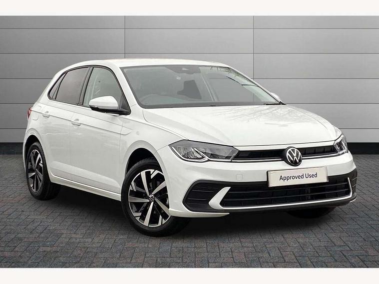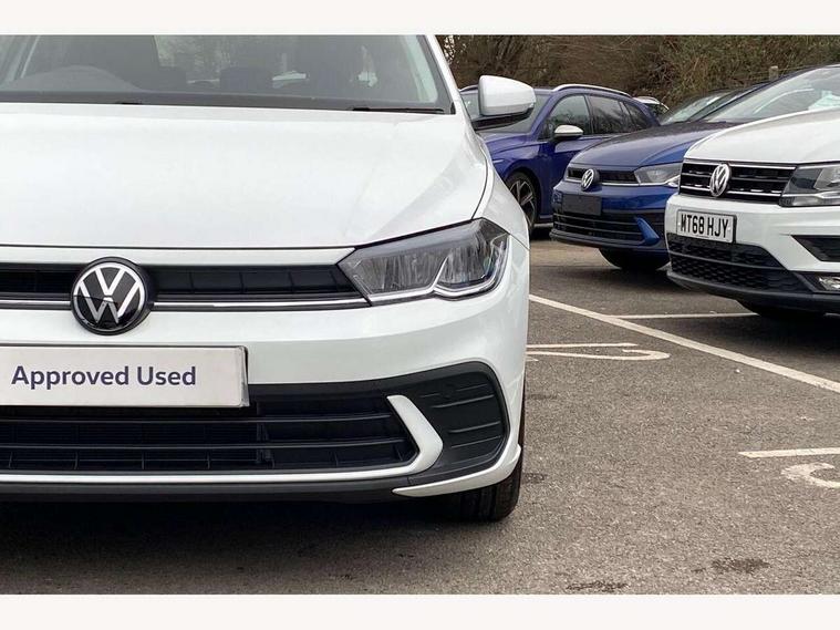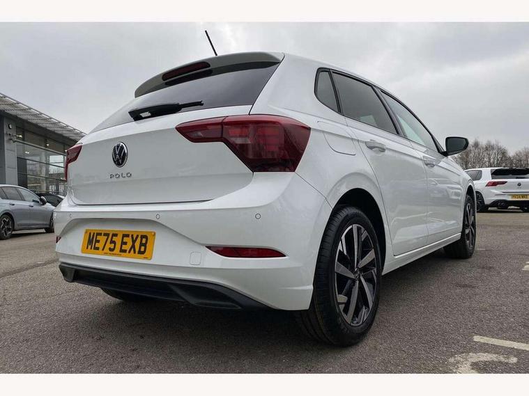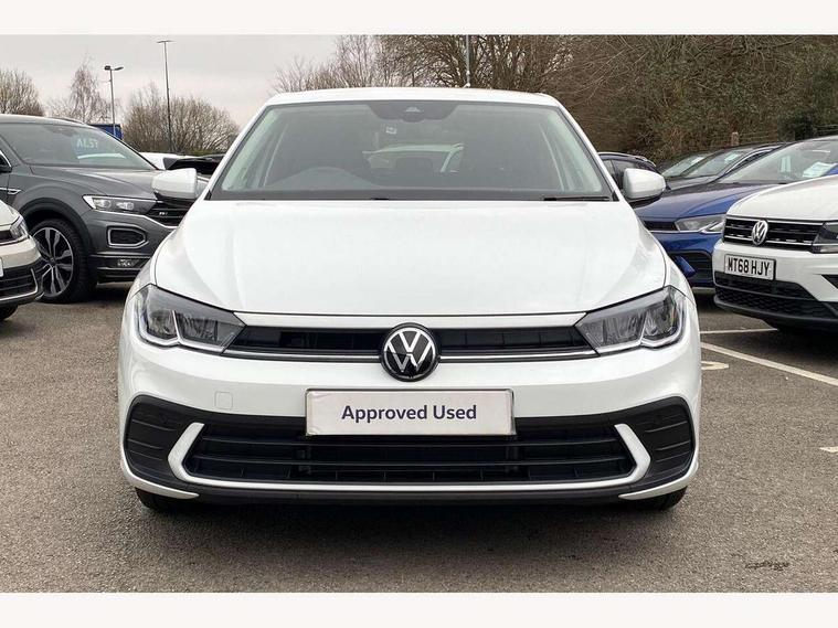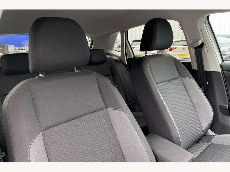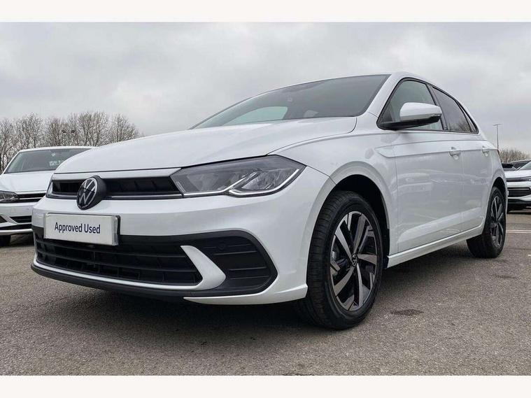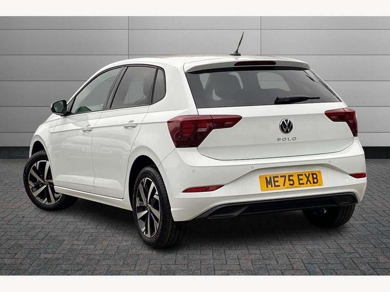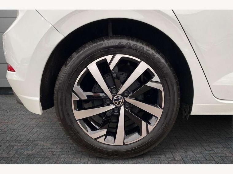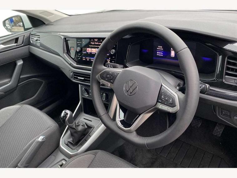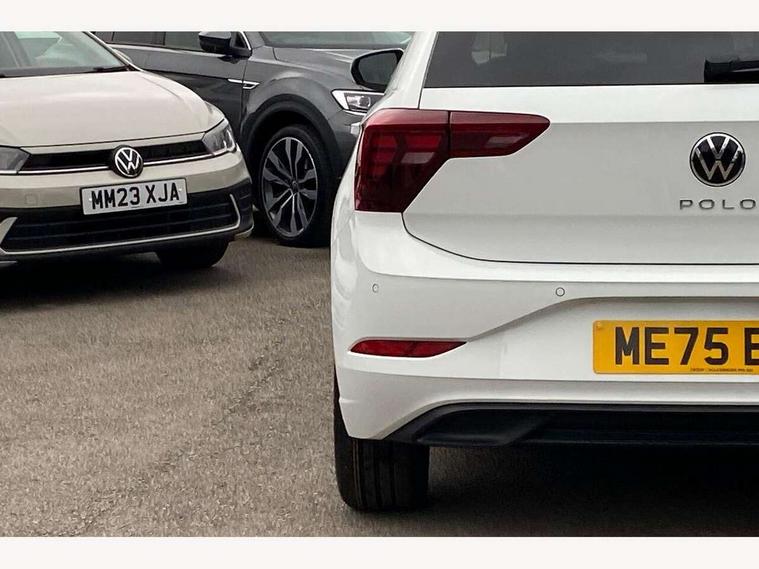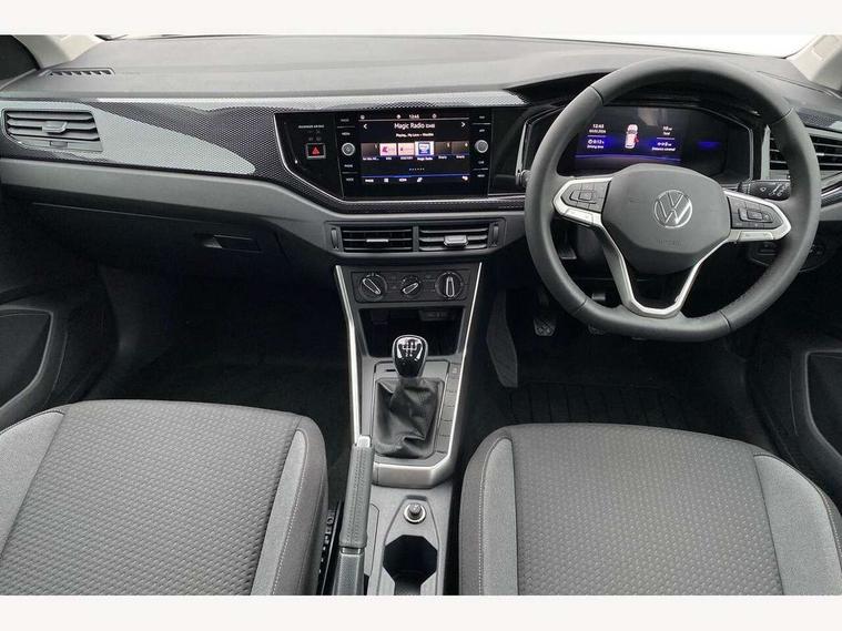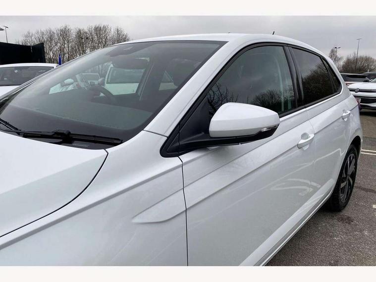 Adaptive cruise control without follow-to-stop and speed limiter, Advanced driver attention and drowsiness monitor, Bluetooth mobile phone interface, Dynamic road sign display, Emergency call service, Mobile phone preparation with inductive charging function, Multifunction front facing camera for distance control, Power assisted speed sensitive steering, Preparation for navigation system with media and internet package, Preparation for We connect and We connect plus, Rear view camera, Speedo and rev counter, electronic odometer, trip, service interval display and exterior temperature gauge, Standard rear axle, Travel Assist - Lane keeping system and traffic jam assist, Travel assist including emergency assist, Trip computer, Warning signal and warning light for front and rear seatbelts not fastened, Washer fluid level indicator, Wireless app connect, Front wheel drive, Rear shock absorpion, Start-stop system with battery regeneration (recuperation - energy recovery during braking), DAB Digital radio, Diversity antenna for FM reception, Automatic dimming interior rear view mirror, Automatic headlight control with LED separate daytime running lights with coming/leaving home function, Body colour bumpers with chrome inserts, Body colour door handles, Body colour door mirrors, Electric front windows, Engine badge deletion, Headlight range adjustment, Heat insulating and laminated safety glass windshield, LED Headlights, LED rear combination lamps, Power folding adjustable/heated exterior mirrors and front passenger exterior mirror lowering function, Rain sensor, Rear electric windows, Rear fog light, Rear side wing doors, Rear tinted glass from B-pillar backwards approx 65% tinted, Rear windscreen washer and wiper with interval delay, Third brake light, 12V power socket in centre console, 2 front and 2 rear reading lights with switch off delay and dimmer, 2 USB-C ports in the front, 2 USB-C charging sockets on the center console in the rear, 3 rear head restraints, 60/40 split folding rear seat and rear seat bench not split, Carpet mats, front and rear, Ceramique roof lining, Chrome plated radiator grille inserts, air vent surrounds and light switch surrounds, Door and side trim panel, Driver and front passenger seat height adjustment, Driver/passenger sunvisors with illuminated vanity mirrors, Front centre armrest, Front seat backrest storage pockets, Front standard seats, Handbrake lever handle in leather, Hartley/Thomas cloth upholstery, Headliner in recycled material, Isofix child seat preparation easy-fit (for two outer rear seats, and front passenger seat) compatible with I-size, Leather trimmed gear knob, Luggage compartment cover, Luggage compartment lighting, Removable luggage compartment floor, Single front passenger seat, Standard climatic zones, Standard pedal cluster, Three spoke leather wrapped multifunction steering wheel, Light and vision pack - Polo, 3 point height adj front seatbelts + pretensioners, 3 point seat belt for centre rear seat, 3 point seatbelts, outer rear with ECE lable, ABS, Driver and front passenger airbag with front passenger airbag deactivation, Drivers and front passengers safety optimised head restraints, ESC (Electronic stability control) + EDL (Electronic Differntial lock) and ASR (Traction control), Extended and predictive pedestrian/ cyclist protection, Front assist with autonomous emergency braking (for Adaptive Cruise Control ACC up to 130 mph), Front curtain and side airbags with center airbag, Front disc brakes, Hill hold control, Manual child lock in rear doors, Rear drum brakes, Single tone horn, Tyre pressure loss indicator, Alarm with interior protection, Anti-theft alarm system with interior monitoring, backup horn, and towing protection, Anti-theft wheel bolts, Electronic engine immobiliser, Lava stone black gloss/matt decorative inserts in dash and front door panels, 16" Torsby alloy wheels, Low rolling resistance tyres,