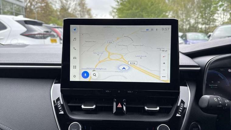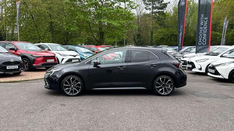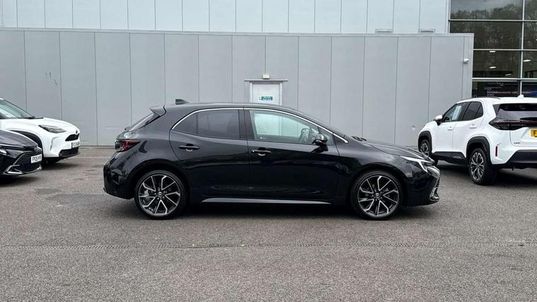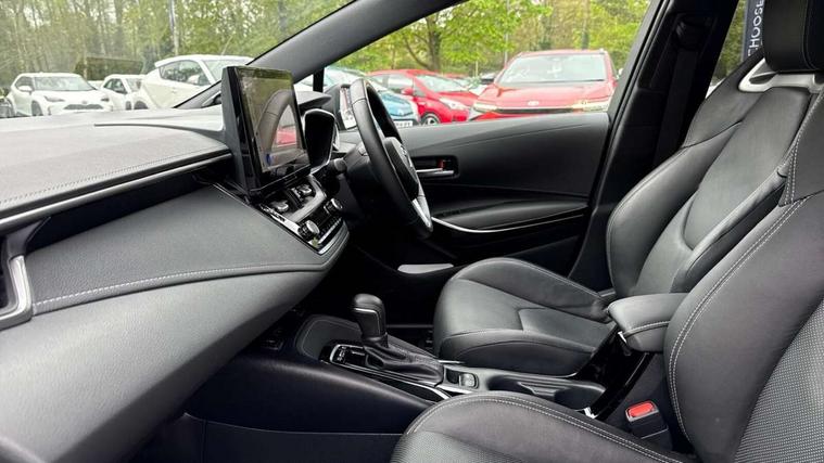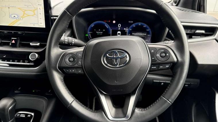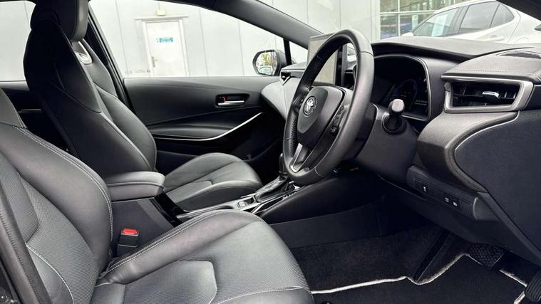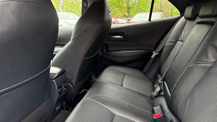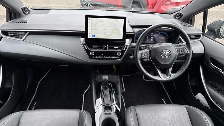 10.5" Multimedia display screen, Blind spot monitor and safe exit assist, Bluetooth telephone connectivity, Connected car functionality upgrade, tracker, remote status and e-care, Drive mode select (Eco, Normal), E-call, Electrically assisted power steering, EV drive indicator, Front and rear parking sensors, Full Digital 12.3" TFT Digital Combimeter, Head up Display, Intelligent clearance sonar, Key reminder warning, Lane Departure Alert (LDA) switch on steering wheel, Memory on adjustable speed limiter, MyT connected services, Proactive driving assist (PDA), Rear cross traffic alert, Reversing camera, Smart entry and push button start, Smartphone integration with Apple CarPlay and wired android auto, Tailgate, Toyota remote services, Toyota smart connect navigation, Wireless charger, Gasoline particulate filter, Vehicle Stability Control (VSC), AM/FM radio, DAB Digital radio, Front USB-C in centre console, Front USB-C in dashboard, JBL Premium sound system with 8 speakers, Rear USB-C device charger, Smart voice assist/ Voice recognition, USB and Aux in connectors + 12V front outlet, Adaptive headlights, Anti-jam protection on power windows, Auto headlight levelling system, Auto up and down function on all power windows, Automatic folding mirrors, Automatic headlights with high beam assist, Black centre and side air vents, Black metallic meshed front grille, Black toyota logo in front, Body coloured bumpers, Body coloured door mirrors, Body coloured front spoiler, Body coloured outside door handles, COROLLA alloy door scuff plates, Electrochromatic mirror, Follow me home headlights, LED daytime running lights, LED front fog lights, LED High mounted stop light, LED multi beam headlights, LED rear combi lights with LED lightguide, Noise reduction layer on windscreen, Piano black diffuser, Power adjustable heated door mirrors, Power front windows, Power rear windows, Privacy glass with UV filter, Rain sensing wipers, Rear bumper decoration with chrome plated inserts, Rear side wing doors, Rear under guard with chrome ornament, Rear window defogger, Rear window wiper, Reverse tilting door mirrors, Roof spoiler, Satin chrome insert on front air vents, Satin chrome insert on front door assist grips, Satin chrome inserts on rear passenger air vents, Shark fin antenna, Tailgate release with push button, Time adjustment on intermittent wiper, Turning signal integrated indicators in door mirrors, Unique grille pattern, Unique lower skirt, Unique side rocker with black insert, UV-filter on driver and passenger windows, 2 Shopping bag hooks in luggage compartment, 3 rear headrests, 3 seat bench in 2nd row, 3 spoke steering wheel with satin insert, 4 tie down hooks in luggage compartment, 60/40 split folding rear seat, Adaptive cruise control (ACC) switch on steering wheel, Adjustable speed limiter switch on steering wheel, Audio, multimedia and telephone switches on steering wheel, Black armrest on centre console box, Black gear shift console, Boot light, Centre room light, Driver and front passenger personal light, Driver and passenger assist grip, Driver and passenger seatback pockets, Driver and passenger sun visor with mirror and light, Dual zone automatic air conditioning with ECO mode switch, Electric lumbar support for passenger, Front and rear cup and bottle holders, Front door pockets, Front head restraints, Front passenger seat, Front sliding synthetic leather armrest, Front sports seats, Gear knob, Heated front seats, Illuminated entry system in room lamp, ISOFIX seat fixing (2 fixings on rear outer seats), Leather gear shift with satin chrome on gear shift console, Manual height adjustable for driver and front passenger seat, Manually tilt with sliding driver and front passenger seat, Nanoe-X air purifier, Parcel shelf, Perforated leather upholstery, Pollen filter, Power adjustable lumbar support on driver seat, Power window switches with satin chrome inserts, Rear air conditioning, Rear armrest with 2 cupholders, Rear passenger coat hooks (2), Remote air conditioning, Satin chrome inside door handles, Satin chrome surround on heater control panel, Satin chrome surround on speedometer, Sliding armrest on centre console box, Slow opening glovebox with lights, Textile floor mats, Tilt/telescopic steering column, Voice recognition switch on steering wheel, Whiplash Injury Lessening (WIL) feature (active headrest) for seats, White ambient lighting on open tray and front cup holder, Toyota safety sense 3 pack - Corolla, 3x3 point rear seatbelts, Adjustable driver and front passenger seat belt extender to top anchor point, Anti lock braking system + Electronic brake force distribution, Brake assist function, Child locks on rear doors, Downhill Assist Control (DAC), Electronic parking brake, Emergency brake light signal (EBS), Front passenger airbag on/off switch, Front seatbelt reminder, HAC - Hill start assist control, Rear seat belt reminder, Seatbelt pretensioners and force limiters, Supplemental restraint system (SRS) 7 airbags - dual driver, dual side curtain, side impact and driver knee airbags, Traction control, Tyre pressure warning system, Acoustic vehicle alert system (AVAS), Alarm with motion sensor and immobilizer, Power passenger window lock, Remote central locking + deadlocks, Satin chrome dash trim, Soft touch texture on upper dashboard, Stitching on lower dashboard, Stitching on upper dashboard, 18" 10 double spoke dark grey machined face alloy wheels, Tyre repair kit, Unique wheel finish with red wheel cap,