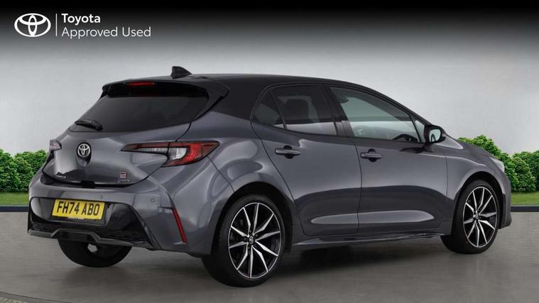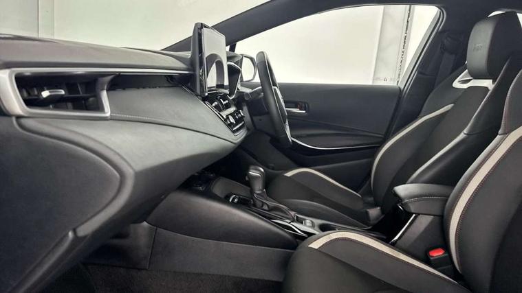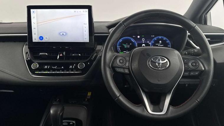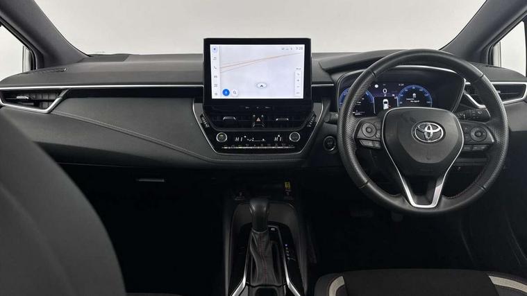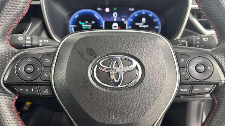 10.5" Multimedia display screen, Bluetooth telephone connectivity, Connected car functionality upgrade, tracker, remote status and e-care, Drive mode select (Eco, Normal), E-call, Electrically assisted power steering, EV drive indicator, Front and rear parking sensors with auto brake, Full Digital 12.3" TFT Digital Combimeter, Key reminder warning, Lane Departure Alert (LDA) switch on steering wheel, Memory on adjustable speed limiter, MyT connected services, Proactive driving assist (PDA), Reversing camera, Smart entry and push button start with GR Logo, Smartphone integration with Apple CarPlay and wired android auto, Tailgate, Toyota remote services, Toyota smart connect navigation, Wireless charger, Gasoline particulate filter, Vehicle Stability Control (VSC), 6 speakers, AM/FM radio, DAB Digital radio, Front USB-C in centre console, Front USB-C in dashboard, Smart voice assist/ Voice recognition, USB and Aux in connectors + 12V front outlet, Anti-jam protection on power windows, Auto up and down function on all power windows, Automatic folding mirrors, Automatic headlights with high beam assist, Black centre and side air vents, Black toyota logo in front, Body coloured bumpers, Body coloured door mirrors, Body coloured outside door handles, Dark chrome lower grille, Electrochromatic mirror, Follow me home headlights, GR Sport dark chrome front mesh grille and black rear grille, GR Sport exclusive under guard, GR sport scuff plates, LED daytime running lights, LED dual beam projector headlights, LED front fog lights, LED High mounted stop light, LED rear combi lights with LED lightguide, Manual headlight levelling system, New grille pattern, Noise reduction layer on windscreen, Piano black diffuser, Power adjustable heated door mirrors, Power front windows, Power rear windows, Privacy glass with UV filter, Rain sensing wipers, Rear side wing doors, Rear window defogger, Rear window wiper, Reverse tilting door mirrors, Rocker and door lower moulding, Roof spoiler, Satin chrome insert on front air vents, Satin chrome insert on front door assist grips, Satin silver front spoiler, Shark fin antenna, Tailgate release with push button, Time adjustment on intermittent wiper, Turning signal integrated indicators in door mirrors, Unique lower skirt, Unique side rocker with black insert, UV-filter on driver and passenger windows, 2 Shopping bag hooks in luggage compartment, 3 rear headrests, 3 seat bench in 2nd row, 3 spoke leather steering wheel with satin insert/red stitching + gear knob, 4 tie down hooks in luggage compartment, 60/40 split folding rear seat, Adaptive cruise control (ACC) switch on steering wheel, Adjustable speed limiter switch on steering wheel, Audio, multimedia and telephone switches on steering wheel, Black armrest on centre console box, Black gear shift console, Boot light, Centre room light, Driver and front passenger personal light, Driver and passenger assist grip, Driver and passenger seatback pockets, Driver and passenger sun visor with mirror and light, Dual zone automatic air conditioning with ECO mode switch, Fabric/synthetic leather upholstery, Front and rear cup and bottle holders, Front door pockets, Front head restraints, Front passenger seat, Front sliding synthetic leather armrest, GR Sports seats with partial leather bolsters, Heated seats, Illuminated entry system in room lamp, ISOFIX seat fixing (2 fixings on rear outer seats), Manual height adjustable for driver and front passenger seat, Manually tilt with sliding driver and front passenger seat, Nanoe-X air purifier, Parcel shelf, Pollen filter, Power window switches with satin chrome inserts, Rear armrest with 2 cupholders, Rear passenger coat hooks (2), Red stitching on gear shift, Remote air conditioning, Satin chrome inside door handles, Satin chrome surround on speedometer, Sliding armrest on centre console box, Slow opening glovebox with lights, Textile floor mats, Tilt/telescopic steering column, Voice recognition switch on steering wheel, Whiplash Injury Lessening (WIL) feature (active headrest) for seats, White ambient lighting on open tray and front cup holder, Toyota safety sense 3 pack - Corolla, 3x3 point rear seatbelts, Adjustable driver and front passenger seat belt extender to top anchor point, Anti lock braking system + Electronic brake force distribution, Brake assist function, Child locks on rear doors, Downhill Assist Control (DAC), Electronic parking brake, Emergency brake light signal (EBS), Front passenger airbag on/off switch, Front seatbelt reminder, HAC - Hill start assist control, Rear seat belt reminder, Seatbelt pretensioners and force limiters, Supplemental restraint system (SRS) 7 airbags - dual driver, dual side curtain, side impact and driver knee airbags, Traction control, Tyre pressure warning system, Acoustic vehicle alert system (AVAS), Alarm with motion sensor and immobilizer, Power passenger window lock, Remote central locking + deadlocks, GR Sport interior styling with accents and exterior styling, Satin chrome dash trim, Soft touch texture on upper dashboard, Stitching on lower dashboard, 18" Black machined face 10 spoke alloy wheels, Tyre repair kit, Unique wheel finish with red wheel cap,