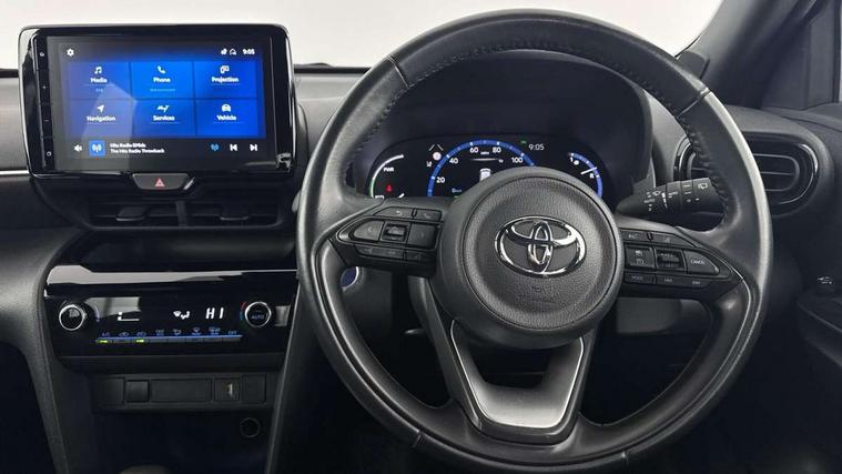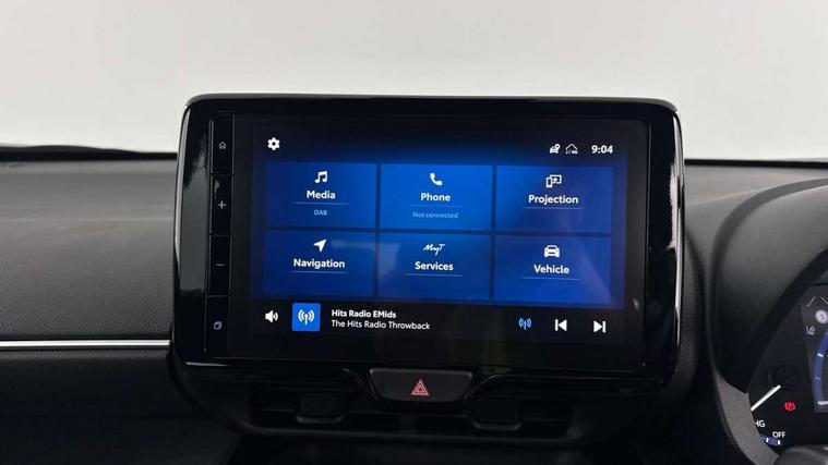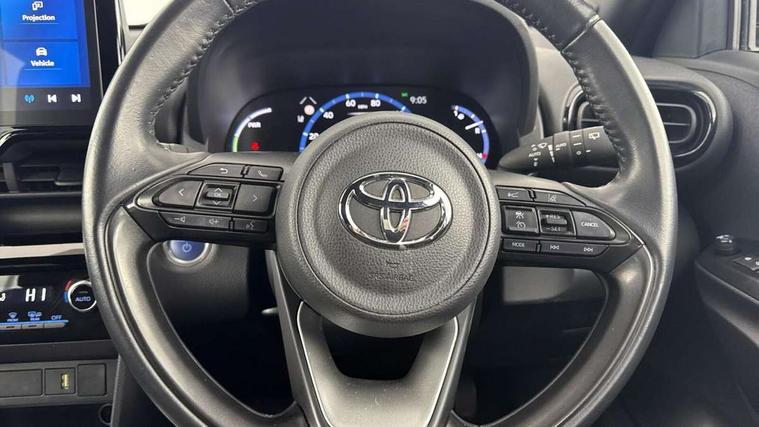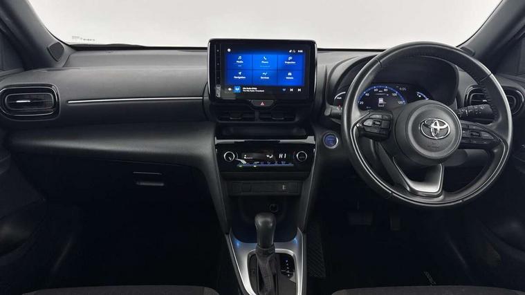 7" Multi information display screen, 8" Toyota touch 2 multimedia system with Smartphone integration with Apple CarPlay and Android auto, Adjustable speed limiter, Bluetooth connectivity, Driver attention alert system, eCall emergency system, Electric power steering, Full range intelligent adaptive cruise control, Hybrid system indicator, Key reminder warning, Lane trace assist, Multimedia, audio, telephone and voice recognition switches on steering wheel, My T Connected services, Pre-collision system enhanced with emergency steering assist, Reversing camera, Road sign assist - RSA, Steering assisted vehicle stability control, 6 speakers, DAB Digital radio, USB connection, 3rd brake light, Acoustic windscreen glass, Aluminium roof rails, Anti-jam protection on power windows, Auto high beam [AHB] with on/off switch, Automatic headlights, Black lower front grille, Black Shark-fin antenna, Black upper front grille, Black wheel arch mouldings, Body colour door handles, Body colour front bumper, Body colour rear bumper, Electric adjustable heated door mirrors, Follow me home headlights, Front and rear electric windows with auto up/down function, Front intermittent wipers, Headlight cut off reminder, Indicators integrated on door mirrors, Intermittent rear wiper, LED daytime running lights guide, LED front fog lights, LED front light guide, LED Indicators, LED projector headlights, LED rear light guide, Manual headlight levelling, Manually retractable door mirrors, Noise reduction layer on windscreen, Privacy glass, Rain sensor, Rear LED lights with sequential indicators, Rear side wing doors, Rear spoiler, Rear window defogger, 12v power outlet - front, 2x Rear coat hooks, 3 seat bench in 2nd row, 3 spoke leather steering wheel, 40:20:40 split folding rear bench seat, Adjustable speed limiter switch on steering wheel, Auto air conditioning, Black roof lining, Boot light, Central armrest, Centre console in light blue ambent lighting, Driver and front passenger personal lights, Fabric door trim, Fabric upholstery, Footwell in light blue ambient lighting, Front console box, Front cup holders, Front head restraints, Glovebox, Height adjustable driver's seat, Height adjustable front passenger seat, Hooks for luggage holding belts, ISOFIX child restraint system, Lane departure alert switch on steering control, Leather gearshift, Light blue ambient lighting on front doors, Manual telescopic and tilting steering wheel, Mirror on driver and passenger sun visor, Pollen air filter, Rear cup holders, Rear head restraints, Single front passenger seat, Soft tonneau cover, 3x3 point rear seat belts, ABS+EBD+Brake assist, Driver and passenger central airbags, Driver and passenger front airbags, Driver and passenger side airbags, Electronic parking brake, Emergency brake light system (EBS), Front seat belt reminder, Hill start assist control (HAC), Passenger airbag on/off switch, Pre-collision system with pedestrian and cyclist detection, Rear door child safety locks, Rear passenger side airbags, Rear seat belt reminder, Traction control, Tyre pressure warning system, Immobiliser, Intrusion alarm, Keyless smart entry with push button start, Power door locks, Power passenger window lock, Remote door lock, Tyre repair kit,