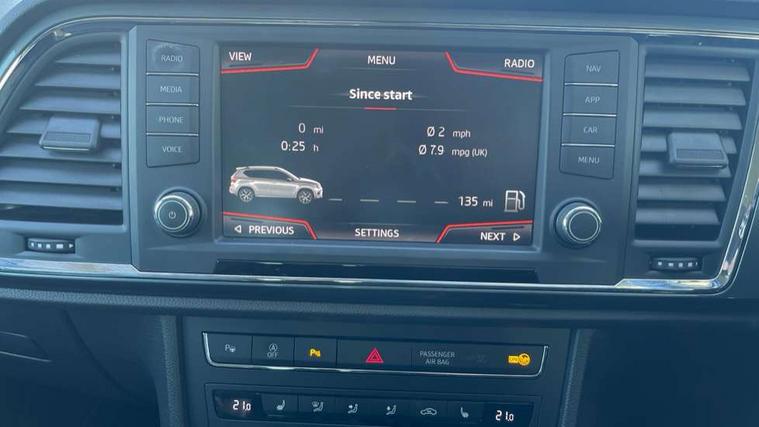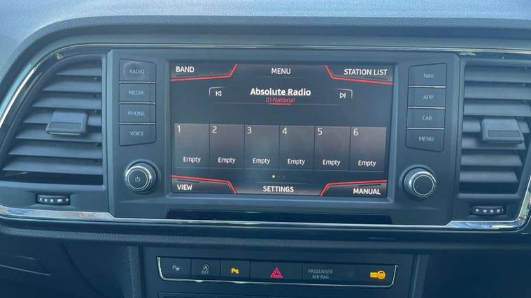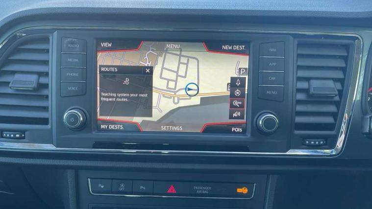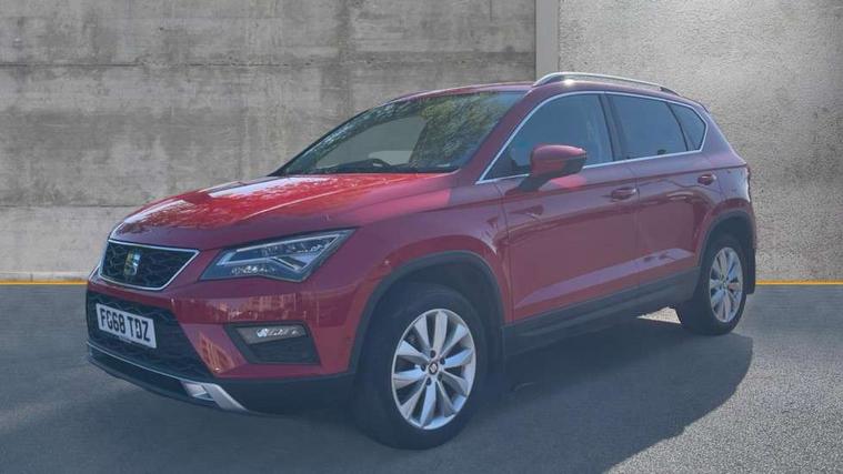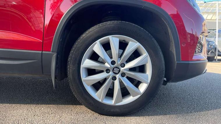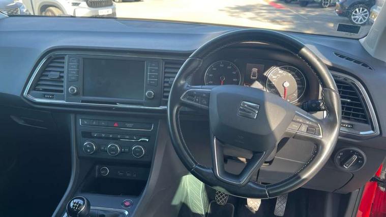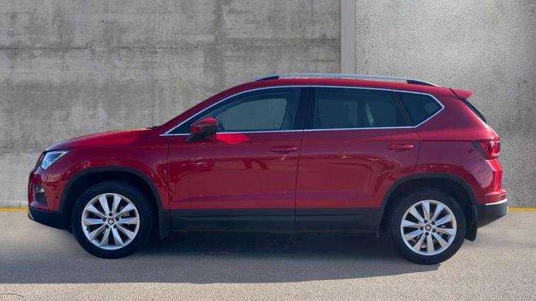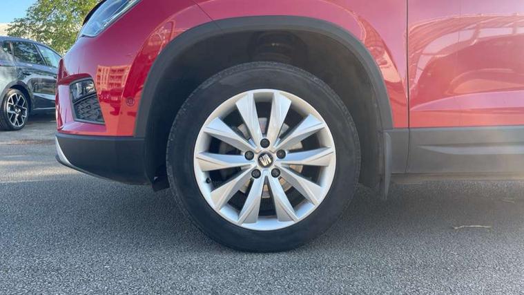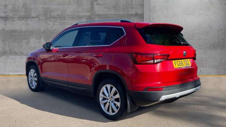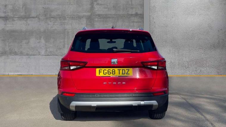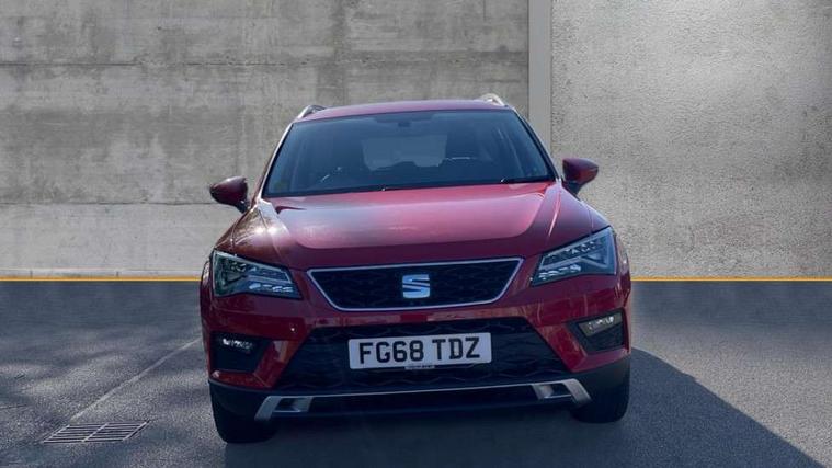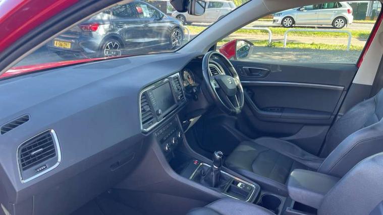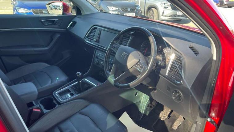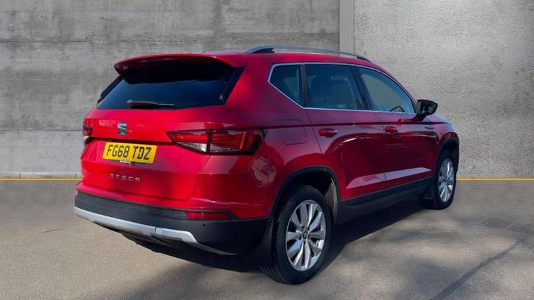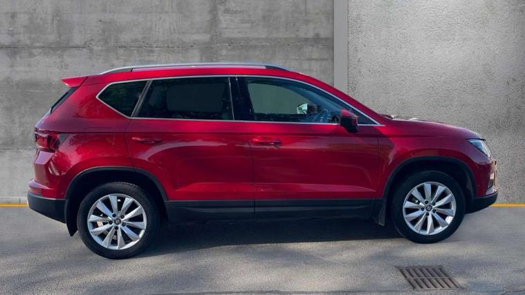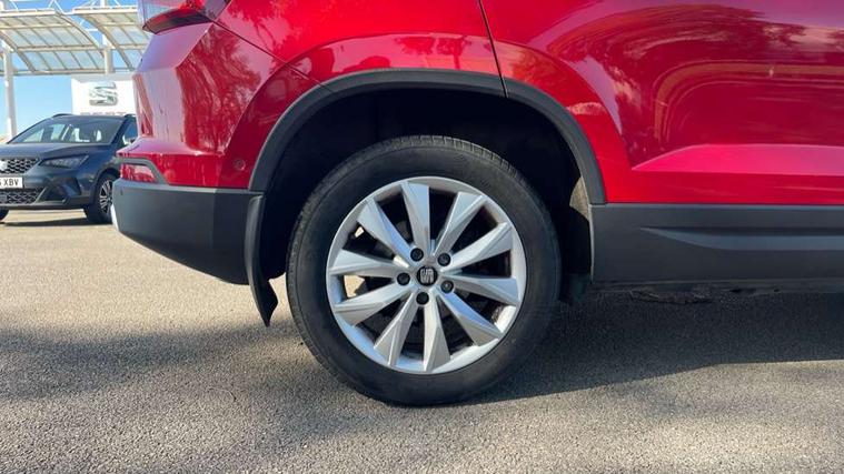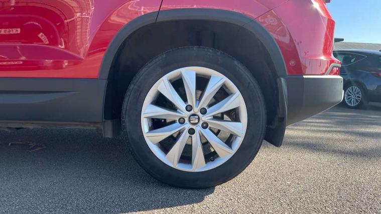 'Lights On' Reminder warning buzzer, 3.5" driver's display, 8.0" colour touchscreen with proximity sensor, Cruise control, Digital clock, Driver alert system, Electric speed sensitive power steering, Full Link Smartphone Integration with Mirror Link, Apple Car Play, Google Android Auto, Low fuel warning light, Multi function display, Outside temperature gauge, Park assist system with steering assist, Remote fuel flap release, RPM counter, Satellite navigation system, SEAT logo boot release, Self parking functionality (includes front and rear parking sensors), Trip computer, Wireless Smartphone charger, Comfort suspension, XDS electronic differential lock, Steering wheel mounted audio/phone controls, Auto dimming rear view mirror, Automatic headlights, Black wheel arch extensions, Body colour bumpers, Body colour door handles, Body colour door mirrors, Chrome headlight surround, Chrome roof rails, Chrome side window trim, Chromed centre radiator grille surround, Dark tinted rear windows, Electric folding door mirrors, Electrically adjustable and heated door mirrors, Front and rear electric windows, Hidden exhaust pipe, LED daytime running lights, LED front fog lights with static cornering light function, LED Headlights, LED tail lights, Matt black radiator grille, Rear fog lights, Rear spoiler, Rear wash/wipe, Welcome lighting, 12V power point front, 3 height adjustable rear headrests, 4 Lashing eyes in boot, 60/40 split folding rear seat, Active head restraints, Adjustable front armrest with storage compartment, Ambient lighting, Black leather upholstery, Driver sunvisor with covered mirror + card holder, Driver/passenger lumbar adjustment, Driver/passenger sunvisors with illuminated vanity mirrors, Dual zone climate control, Footwell illumination, Front courtesy lights, Front cupholders, Front reading lights, Front seat back storage pockets, Gear shift indicator, Height adjustable driver's seat, Height adjustable front headrests, Height adjustable passenger seat, Illuminated boot, Illuminated glovebox, Instrument lighting with brightness control, Isofix child seat preparation, Leather steering wheel and gear knob, Rear armrest, Rear central air outlet, Rear reading lights, Sports seats, Storage box under drivers seat, Convenience pack - Ateca, Navigation system pack - Ateca, Winter Pack - Ateca, 3x3 point rear seatbelts, ABS, Auto hold function, Automatic post collision braking, Driver/Front Passenger airbags, Drivers knee airbag, Electronic parking brake, Electronic stability control, ESP+EBA, Front and rear seatbelt reminder, Front assist including city emergency braking, Front passenger airbag deactivation, Front side airbags, Hill hold control, Predictive pedestrian protection, Tiredness recognition system, Traction control, Twin curtain airbags, Tyre pressure monitoring system, 2 folding remote keys with window open/close function, Immobiliser, Keyless entry and start, Locking wheel bolts, Remote central locking, Volumetric alarm with back up horn, Chrome effect dashboard facia, 17" Dynamic alloy wheels,