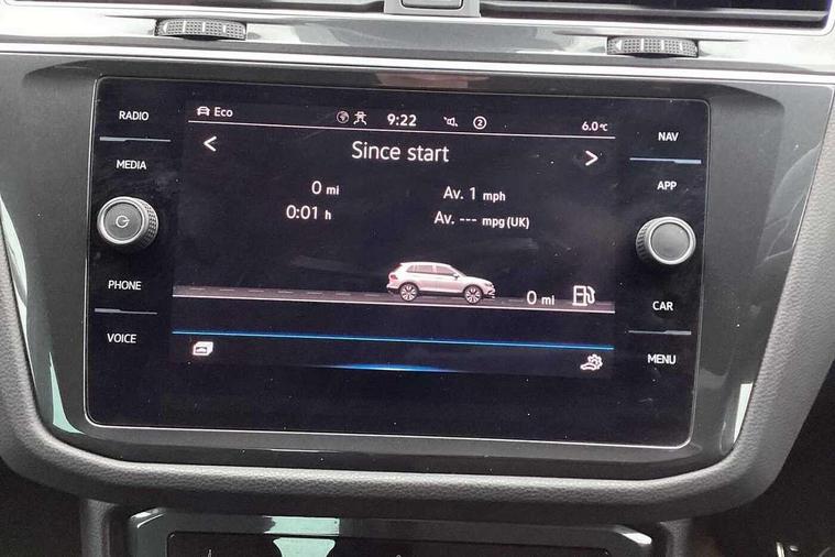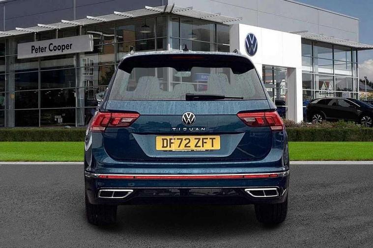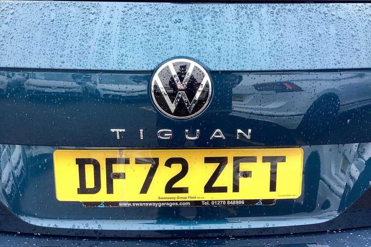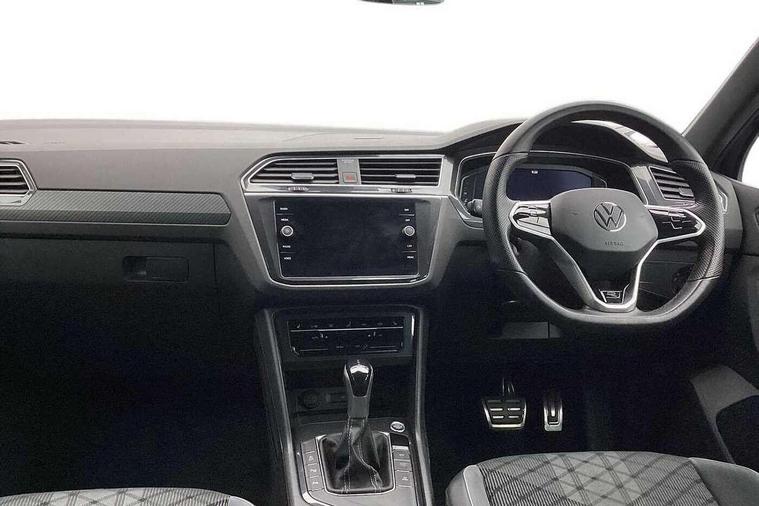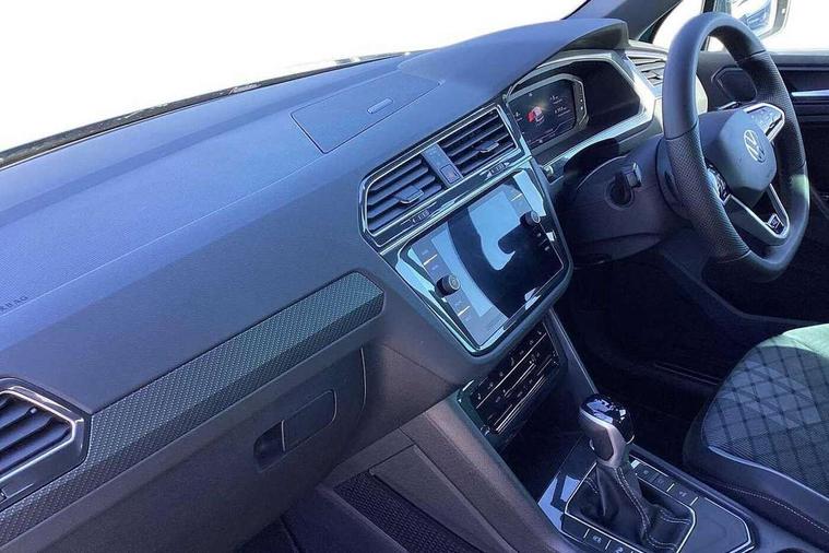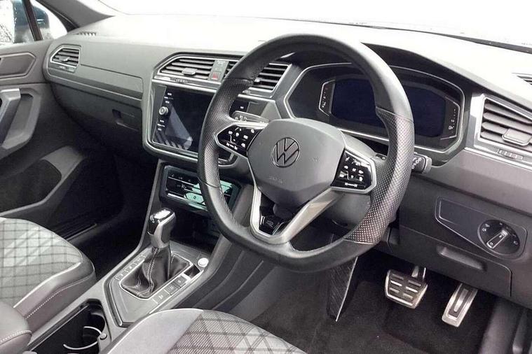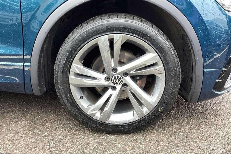 Adaptive cruise control ACC stop and go including speed limiter, App-Connect incl. App-Connect Wireless for Apple CarPlay and Android Auto, Bluetooth phone integration system, Comfort drive travel assist, Digital cockpit pro, Driver alert system, Driver profile selection, Dynamic road sign display, eCall emergency call system, Electromechanical speed sensitive power steering, Emergency assist, Front and rear parking distance sensors, Instrument cluster mph speedometer Great Britain, Lane keeping system Lane Assist, Lights on warning, Multifunction front facing camera, Outside temperature display, Premium multifunction display with multi colour display, Preparation for subsequent activation Navigation feature Discover Media includes Streaming and Internet, Remote control boot opening, Rev counter, Service interval indicator, Speed limit display, Start/stop system with regenerative braking, Tailgate/trunk lid unlocking from outside, Trip computer, Warning sound and light for doors and tailgate open, Battery regeneration during braking, Sports suspension, 8 Speakers, Digital radio reception DAB+, Diversity antenna for FM reception, Radio, Auto dimming interior rear view mirror, Automatic headlight control system, Body colored bumpers in R-Line style, Body colored exterior mirror housings, Body colour door handles, Chrome moldings on the side windows, Coming/leaving home lighting function, Dynamic headlight range control, Front and rear electric windows, Heated rear window, High level 3rd brake light, Laminated safety glass windshield, heat and sound insulating, LED headlamps with LED separate daytime running light and dynamic cornering light, LED rear combination lamps, LED rear number plate lights, License plate carrier in front and rear, Poor weather light and cornering light, Power adjustable, folding and heated door mirrors with surround lighting, front passenger exterior mirror lowering function, Privacy glass for rear side windows and rear window, R Line body kit, R Line side sills, Rain sensor, Rear exhaust tailpipe, Rear fog lamp, Rear side wing doors, Rear spoiler in R style, Rear windscreen washer and wiper with interval delay, Side and rear windows in heat insulating glass, Trailer Stability Programme, Unique R Line badging, Windscreen wipers/ intermittent wipe + 4 position delay, 12V outlet in center console rear and in luggage compartment, 12V outlet in front and tray, 2 LED front reading lights, 2 LED rear reading lights, 3 bench rear seats in 2nd row, 3 rear headrests, Air Care Climatronic 3 zone automatic climate control with enhanced air filter and controls in the rear, Art Velours greyson sports cloth upholstery, Backrest release for left front seat, Black headlining, Brushed stainless steel pedals and footrest, Carpet mats in front and rear with decorative stitching in Gray, Climate control unit rear with touch function, Door and side trim panel in foam film, insert in leatherette, Driver + front passenger lumbar support, Front footwell illumination, Front scuff plates in aluminum with R-Line logo, Front seats head restraints (x-adjustment), Height adjustable front seats, Height/reach adjust steering wheel, Isofix Preparation 2 Rear child seats, Leather gear knob, Rear bench seat asymetrically split folding, longitudinally movable and folding with load-through hatch and center armrest, Remote unlocking for rear seat backrest, Single front passenger seat, Sun visors with illuminated vanity mirrors, Top front comfort seats, Winter pack - Tiguan, 3 point seat belt for centre rear seats, 3 point seat belts with seat belt pretensioners for the outer rear seats, Curtain airbags for front and rear passengers, Driver/Front Passenger airbags, Drivers knee airbag, Electronic parking brake with auto hold, Electronic Stability Control with driver steering recommendation, ABS, ASR, EDL, EDTC and trailer stabilization, Front assist with autonomous emergency braking (for Adaptive Cruise Control ACC up to 130 mph), Front disc brakes, Front passenger airbag deactivation, Front side airbags, Height adjustable front 3 point seatbelts + pretensioners, Manual child proof rear door locks, Pedestrian monitoring system, Proactive passenger protection system in combination with front assist, Rear disc brakes, Two tone horn, Tyre pressure loss indicator, Warning sound and light for front seat belts if unfastened, Warning triangle, Anti theft alarm system with interior monitoring, backup horn and towing protection, Anti theft wheel bolts, Electronic engine immobiliser, Keyless locking and starting system keyless access with safelock, Chrome elements on the mirror switch power window switches and door pulls, Decorative inserts Carbon Gray for dashboard and front door trim panels, Interior door handle in matte chrome, 19" Valencia alloy wheels with AirStop tyres, Tool kit, Tyre mobility kit Includes 12V compressor and tyre sealant,