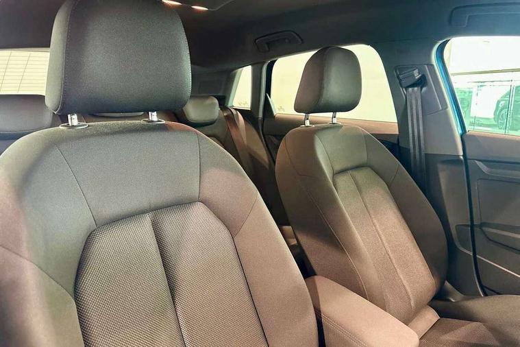 Black decorative window trim, Inlays with silk effect paint in platinum grey, 16" 5 double arm alloy wheels, Anti theft alarm, Anti-theft wheel bolts, Immobiliser, Manual child locks, Remote control central locking, 2xUSB-C connection with data and charging functions, 6 passive loudspeakers, DAB Digital radio, 3x3 point rear seat belts, Audi pre sense front, Driver and front passenger airbag with passenger airbag deactivation, Electronic Stabilisation Control (ESC) including ABS, ASR and EDL, First aid kit with warning triangle and 2 safety vests, Front side airbags with head airbags and interaction airbag, Hill hold assist, Pre-sense front with pedestrian and cyclist detection, Seatbelt monitoring, Tyre pressure loss indicator, 3rd brake light, Acoustic glass windscreen, Auto dimming frameless rear view mirror, Body colour exterior mirrors, Body colour front spoiler blade, Body colour roof spoiler, Electrically adjustable/heated/folding/dimming door mirrors with kerb view includes integrated LED indications + kerb view function for passenger side, Front electric windows, LED daytime running lights, LED headlights and halogen rear lights, Light and rain sensors, Radiator grille and frame in grained matt black and honeycomb look, Rear diffuser in grained matt black, Rear electric windows, Rear side air outlets in grained matt black, Rear side wing doors, Rear window, rear door windows and rear side windows in clear glass, Rear wiper, Side air inlets in grained matt black, 12V socket and storage compartment in front centre console, 3 seat bench in 2nd row, 3 spoke leather multifunction steering wheel with paddle shift, 60/40 split folding rear seat, Front and rear headrests, Front centre armrest, Front/rear floor mats, Height and reach adjustable steering wheel, Interior lighting - Front and rear roof module including reading lights, glove compartment light and right hand side, Luggage compartment floor covering, Manual air conditioning, Manual boot compartment lid, Manually adjustable front seats, Seat side bolsters, Single front passenger seat, Steel grey cloth headlining, Audi smartphone interface, Audi Virtual Cockpit - 10.25" digital and colour instrument cluster, Automatic start/stop system with recuperation, Bluetooth interface, Collision avoidance assistant, e-Call (emergency call), Electromechanical power speed sensitive steering, Lane departure warning system, MMI Navigation Plus with high resolution 10.1" colour touch screen display, Rear parking sensors, Service indicator, Trip computer, Voice control system with natural language interaction, Standard suspension,