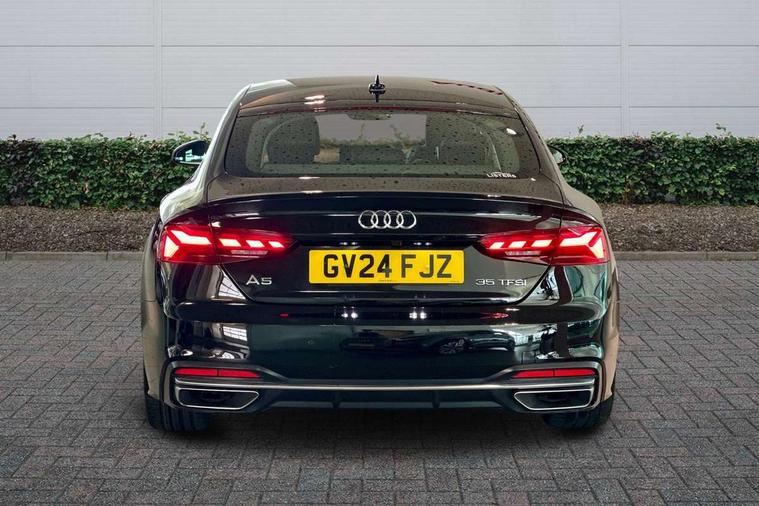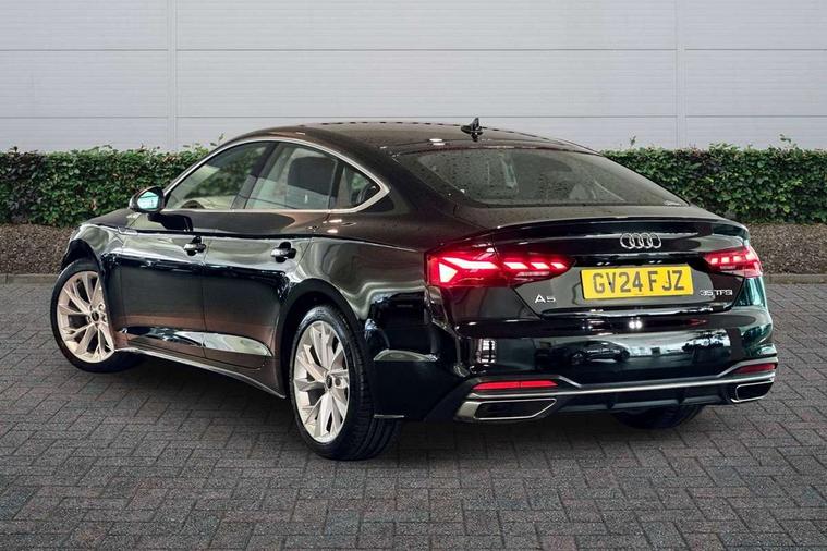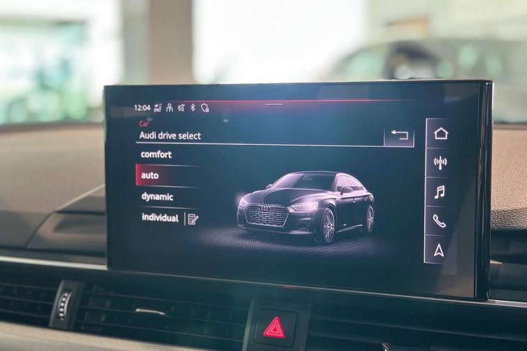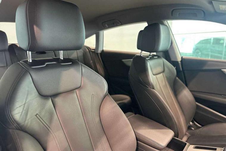 Audi connect safety and service (e-call), Audi drive select (Auto, Comfort, Dynamic and Individual), Audi smartphone interface, Audi virtual cockpit - 12.3" full colour digital instrument cluster, vehicle/engine speed, Radio/media information+Driver assistance systems, Automatic start-stop system with coasting functionality and efficiency programme, Bluetooth interface, Camera based traffic sign recognition, Electro-mechanical power steering, Email, calendar and text messages displayed via MMI, Front and rear parking sensors, Lane departure warning, MMI nav+ with MMI touch - 10.1" high resolution MMI display, touch sensitive, 3D map, route/country info, dynamic route guide, personal route assist, Power operated tailgate, Rear view camera, Service interval indicator, Voice control system, 54 litre fuel tank, Comfort dynamic suspension, 8 passive loudspeakers, CD player, DAB digital radio reception, Two additional USB ports for rear passenger in rear centre console, Two SDXC card slots, Auto dimming door mirrors, Auto dimming rear view mirror, Body colour bumpers, Body colour door handles, Body colour side sill trim, Body coloured door mirrors, Electric adjustable heated door mirrors, Electric folding door mirrors, Electric front windows, Front fog lights, Kerb-view function for passenger side, LED headlights and rear lights with LED daytime running lights, LED side indicator lights integrated into door mirrors, LED third brake light, Matt aluminium silver tailpipe trim, Radiator grille in matt anthracite black and air inlets with inserts in matt aluminium silver, Rain and light sensors, Rear diffuser in matt anthracite black with trim strip in matt aluminium silver, Rear side wing doors, Rear wiper, Sport front and rear bumpers with side skirts, Variable front intermittent wipers, Windscreen with acoustic glazing, 3 seat bench in 2nd row, 3 spoke high multi-function leather sport steering wheel with paddle shift and height and reach adjustable, 4 way electric lumbar support for driver and front passenger, 40/20/40 split folding 3 seater rear bench seat, Black carpets, Deluxe 3 zone electronic climate control, Front centre armrest, Front door sill trims with aluminium inlay, Front head restraints, Front/rear floor mats, Heated front seats, ISOFIX child seat mounting and top tether, Luggage compartment mat, Manual seat adjustment, Rear centre armrest, Rear headrests, Single front passenger seat, Sunvisors with vanity mirrors, Twin leather upholstery + front sports seats, LED interior light pack - A5/RS5, 3x3 point rear seatbelts, 6 airbags - Driver, front passenger, curtain and side airbags, Attention and drowsiness assist, Electromechanical parking brake, Electronic Stabilisation Control (ESC) including ABS, ASR and EDL, Front passenger airbag deactivation, Height adjustable front seatbelts, Hill hold assist, Manual child lock in rear doors, Multi collision brake assist, Pop-up bonnet for pedestrian protection, Pre sense city, Seatbelt monitoring, Tyre pressure warning, Variable restraint system, Warning triangle and first aid kit, Anti theft alarm system, Anti theft wheel bolts, Immobiliser, Keyless Go, Remote central locking, Aluminium ellipse silver inlays, Tool kit, Tyre repair kit,