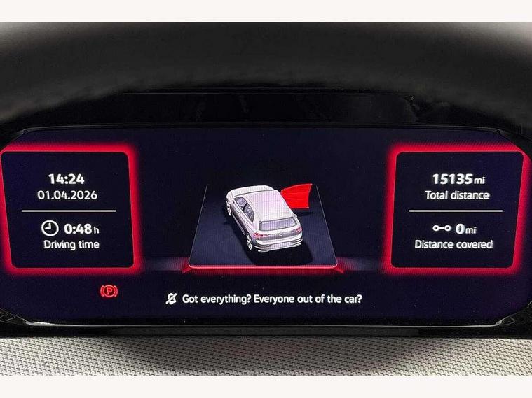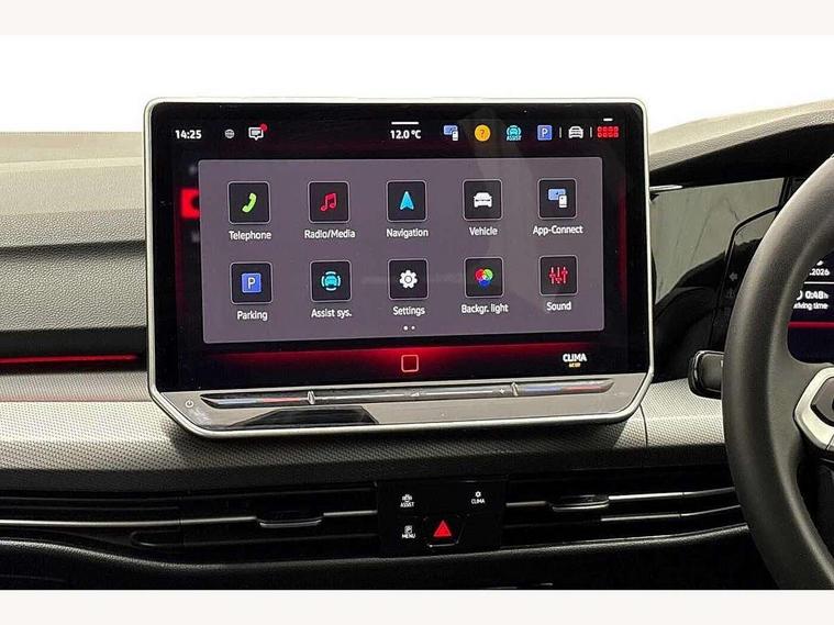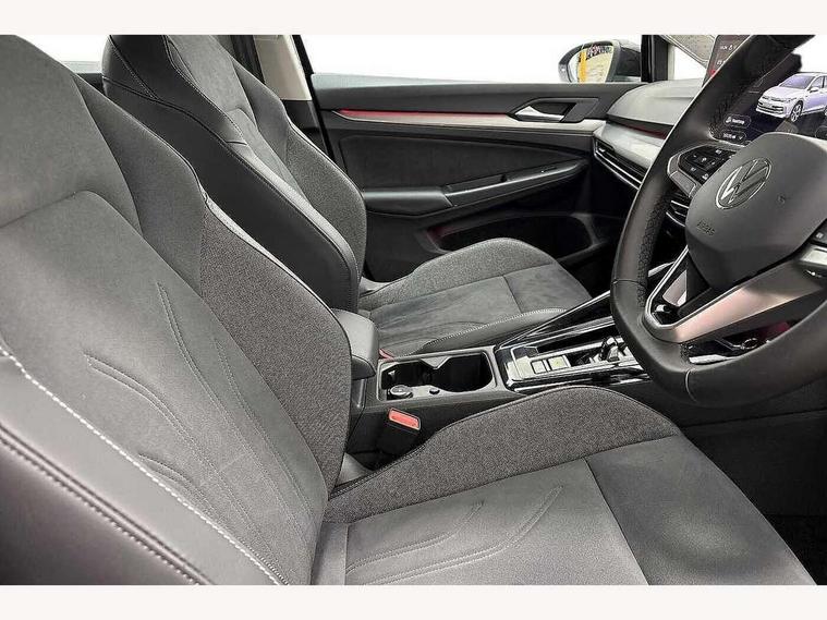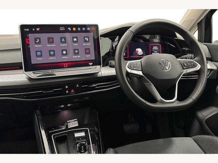 Activated carbon canister, Adaptive cruise control (ACC), Advanced driver attention and drowsiness monitor, Dynamic road sign display, E-Sim card for online connectivity, eCall emergency call system, Multi-color Digital cockpit pro, selection of different info profile possible, Multifunction front facing camera for distance control, Navigation system, Oncoming vehicle braking when turning including swerve support, Side assist blind spot lane change system, rear traffic alert and exit warning system, Speed limiter, Speedo, rev counter, electronic odometer, trip, service interval display, exterior temperature and fuel gauge, Traffic jam assist, Voice enhancer and voice control, Warning signal and warning light for front and rear seatbelts not fastened, We connect plus preparation, We connect preparation, Wireless app connect, Hybrid propulsion system, Petrol Particulate Filter, Start-stop system with battery regeneration (recuperation - energy recovery during braking), XDS electronic differential lock for improved traction and handling, 2 USB C ports in front, 2 USB charging sockets on the centre console in the rear charging capacity upto 45W, Digital radio reception (DAB), Diversity antenna for FM reception, Gaming platform via car app, Infotainment system with 12.9" display, Mobile phone interface with inductive charging feature, 3rd brake light, Automatic headlamp activation with Coming home and Leaving home feature, Body colour bumpers, Body colour door handles, Body colour door mirrors, Chrome trimmed front air intake surrounds, Chrome trims on the side window bottom, Exterior mirrors convex on the left and aspherical on the right, Front and rear electric windows, Heat insulating windshield made of laminated glass, LED separate daytime running light, Rear exhaust tailpipe, Rear fog light on one side and reversing lights on both sides, Rear side wing doors, Rear windscreen washer and wiper with interval delay, Remote electrically foldable door mirrors, puddle lights and reverse activated passenger's door mirror, Welcome light with surround lighting, 12V socket in front centre console, 12V socket in luggage compartment, 3 rear head restraints, 3 seat bench in 2nd row, Air care climatronic 3 Zone automatic climate control with rear air conditioning control panel, Ambient lighting with 30 colour including LED light unit in front footwell with selectable light colour, Art velours cloth upholstery, Chrome plated radiator grille inserts, air vent surrounds and light switch surrounds, Door insert, side trim panel and arm support in leatherette, Front + rear black carpet mats, Front centre armrest, Front head restraints, Front seat lumbar support adjuster, ISOFIX anchors for child seats on outer rear bench seats and on front passanger seat compatible for i-Size, Luggage compartment lighting, Manual height adjustable front passenger seat, Manually height adjustable driver seat, Plastic gear knob, Rear cupholder and loadthough, Single front passenger seat, Soul black instrument panel, Split folding backrest with centre armrest and unsplit rear seat bench, Sports comfort seats in front, Standard pedal cluster, Storm grey roof lining, Sun visors with illuminated vanity mirrors, Driver assistance pack - Golf Estate/Hatchback Auto, 3 point height adj front seatbelts + pretensioners, 3 rear three point seatbelts, ABS, Autonomous emergency braking front assist with pedestrian and cyclist monitoring, Child locks on rear doors, Driver and front passenger airbag with front passenger airbag deactivation, Electronic parking brake with auto hold, ESC (Electronic Stability Control), Extended pedestrian protection measures, Hill start assist, Rear disc brakes, Two tone horn, Tyre pressure loss indicator, Volkswagen roadside assistance, Anti theft wheel bolts, Preparation for alcohol interlock, New brushed dark metal decorative inserts for dashboard and front door panels,