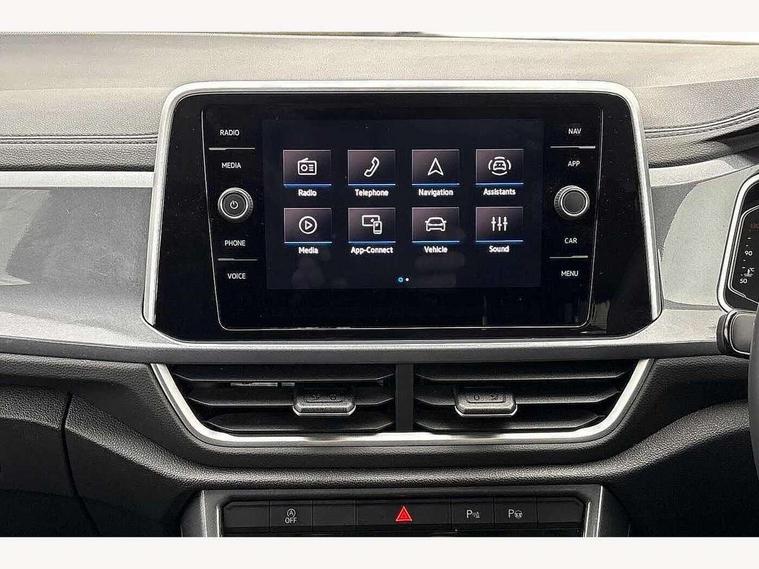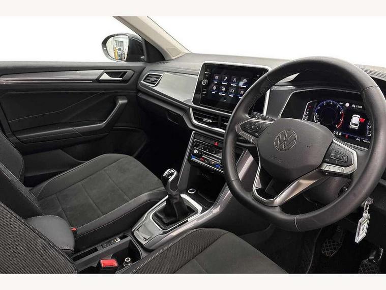 10.25" Digital cockpit pro, Advanced driver attention and drowsiness monitor, Emergency call service, Lane keeping system Lane Assist, Mobile phone interface, Modified key software - reduce switch off time for key status change to Long no motion, Online services, Park assist including front and rear parking sensors, Power assisted speed sensitive steering, Service interval indicator, Tailgate/trunk lid release from outside, Think blue trainer driver tips and journey analysis, Warning sound and light for front seatbelts unfastened, Wireless app connect, Battery regeneration during braking, Start/stop function with battery regeneration, DAB Digital radio, Diversity antenna for FM reception, Front and rear 6 speakers, Music playback - MP3, WMA and AAC files, Premium USB cable in choice of either Apple or Android smartphone compatibility, SD card slot, Simultaneous pairing of 2 compatible mobile devices, Title and cover art display, We Connect and We Connect Plus functionality, Auto dimming interior rear view mirror, Automatic hazard lights activation under emergency braking, Automatic headlight control with LED separate daytime running lights with coming/leaving home function, Body colour sports bumpers with silver metallic underbody fascia, Body coloured exterior mirror housings and door handles, Dynamic headlight range control with self adjusting whilst driving, Electrically adjustable and heated door mirrors, Extended roof spoiler, Exterior mirrors aspherical on driver side, convex on front passenger side, External USB type C socket and charging sockets, Front windscreen wiper with intermittent wipe and 4 position delay, Heated rear window, LED 3rd brake light, LED rear combination lamps, LED rear number plate lights, Light mode for poor weather, rain, fog or snow, Power windows with comfort operation and circuit breaker, Privacy glass for rear side windows and rear window, Rain sensor, Rear exhaust tailpipe, Rear fog light on one side and reversing lights on both sides, Rear side wing doors, Rear wash/wipe with intermittent wipe setting, Remote electrically foldable door mirrors, puddle lights and reverse activated passenger's door mirror, 12V power socket in centre console, 3 rear head restraints, 3 seat bench in 2nd row, 4 load lashing points in luggage compartment, Air care climatronic air conditoning system with active combination filter and 2-zone temperature control, Chrome plated radiator grille inserts, air vent surrounds and light switch surrounds, Door and side trim panel with leatherette insert, Drawer under drivers seat, Front + rear carpet mats, Front centre armrest, Front comfort sports seats, Front cupholders x 2, Front footwell illumination, Front seat back storage pockets, Glove compartment door with light, Instrument lighting, white adjustable panel illumination, Interior ambient lighting and surround lighting, Interior light delay, Isofix child seat preparation, Leather gearshift handle, LED interior light with switch off delay/dimmer and 2 front/rear LED reading lights, Load-through provision with cup holder when folded down ('Unsplit rear seat bench, split folding backrest, with centre armrest), Luggage compartment lighting, Non-folding front passenger seat backrest, Single front passenger seat, Storage compartment in left and right luggage area, Storage compartment in rear doors, Storage compartments in driver and front passenger doors, Sunvisors with illuminated vanity mirrors, Variable boot floor, height adjustable and removable, Driver assistance pack without proactive passenger protection - T-Roc, 3 point height adj front seatbelts + pretensioners, 3 point seatbelts in outer rear with ECE label, ABS, Child locks on rear doors, City emergency braking and pedestrian monitoring, Driver and front passenger airbag with front passenger airbag deactivation, Driver and front passenger safety-optimised head restraints, Drivers seatbelt reminder, Electronic parking brake, Electronic Stability Control (ESC) inc EDL (Electronic Differential Lock) and ASR (Traction Control), Front and rear passengers curtain airbag system including front side airbags, Predictive pedestrian protection, Rear disc brakes, Two tone horn, Tyre pressure loss indicator, Volkswagen roadside assistance, Deep iron grey decorative inserts in dashboard, centre console and front door trim panels, Trims for alloy wheels,