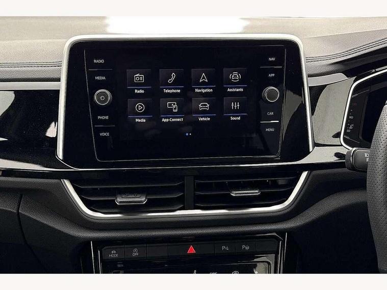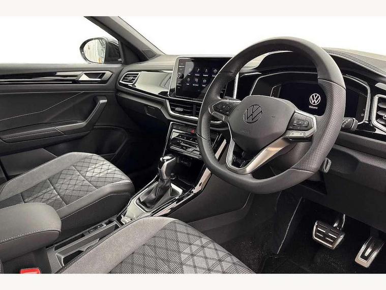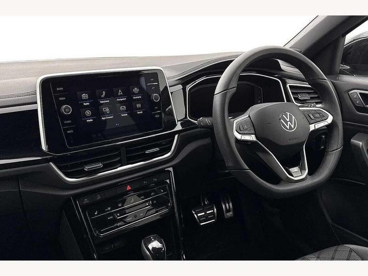 10.25" Digital cockpit pro, Advanced driver attention and drowsiness monitor, Dynamic road sign display, Emergency call service, Lane keeping system Lane Assist, Mobile phone interface, Modified key software - reduce switch off time for key status change to Long no motion, Online services, Park assist including front and rear parking sensors, Service interval indicator, Tailgate/trunk lid release from outside, Think blue trainer driver tips and journey analysis, Warning sound and light for front seatbelts unfastened, Wireless app connect, Battery regeneration during braking, Start/stop function with battery regeneration, DAB Digital radio, Diversity antenna for FM reception, Front and rear 6 speakers, Music playback - MP3, WMA and AAC files, Premium USB cable in choice of either Apple or Android smartphone compatibility, SD card slot, Simultaneous pairing of 2 compatible mobile devices, Title and cover art display, We Connect and We Connect Plus functionality, Auto dimming interior rear view mirror, Automatic hazard lights activation under emergency braking, Automatic headlight control with LED separate daytime running lights with coming/leaving home function, Body coloured exterior mirror housings and door handles, Electrically adjustable and heated door mirrors, Extended roof spoiler, Exterior mirrors aspherical on driver side, convex on front passenger side, External USB type C socket and charging sockets, Front windscreen wiper with intermittent wipe and 4 position delay, Heated rear window, LED 3rd brake light, LED rear combination lamps, LED rear number plate lights, Power windows with comfort operation and circuit breaker, Privacy glass for rear side windows and rear window, R-Line design body coloured bumpers, Rain sensor, Rear exhaust tailpipe, Rear fog light on one side and reversing lights on both sides, Rear side wing doors, Rear wash/wipe with intermittent wipe setting, Remote electrically foldable door mirrors, puddle lights and reverse activated passenger's door mirror, 12V power socket in centre console, 3 rear head restraints, 3 seat bench in 2nd row, 4 load lashing points in luggage compartment, Air care climatronic air conditoning system with active combination filter and 2-zone temperature control, Black roof lining, Chrome plated decorative trims, Chrome plated radiator grille inserts, air vent surrounds and light switch surrounds, Door and side trim panel with leatherette insert, Front + rear carpet mats, Front centre armrest, Front cupholders x 2, Front footwell illumination, Front reading light, Front scuff plates with R Line logo, Front seat back storage pockets, Glove compartment door with light, Instrument lighting, white adjustable panel illumination, Interior ambient lighting and surround lighting, Interior light delay, Isofix child seat preparation, Leather gearshift handle, Load-through provision with cup holder when folded down ('Unsplit rear seat bench, split folding backrest, with centre armrest), Luggage compartment lighting, Single front passenger seat, Stainless steel pedals, Storage compartment in left and right luggage area, Storage compartment in rear doors, Storage compartments in driver and front passenger doors, Sunvisors with illuminated vanity mirrors, Variable boot floor, height adjustable and removable, Driver assistance pack without proactive passenger protection - T-Roc, 3 point height adj front seatbelts + pretensioners, 3 point seatbelts in outer rear with ECE label, ABS, Child locks on rear doors, City emergency braking and pedestrian monitoring, Driver and front passenger airbag with front passenger airbag deactivation, Driver and front passenger safety-optimised head restraints, Drivers seatbelt reminder, Electronic parking brake, Electronic Stability Control (ESC) inc EDL (Electronic Differential Lock) and ASR (Traction Control), Front and rear passengers curtain airbag system including front side airbags, Hill start assist, Predictive pedestrian protection, Rear disc brakes, Two tone horn, Tyre pressure loss indicator, Volkswagen roadside assistance, Piano black decorative inserts in dashboard and front door trim panels, Trims for alloy wheels,