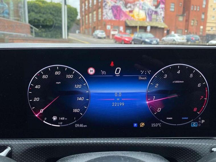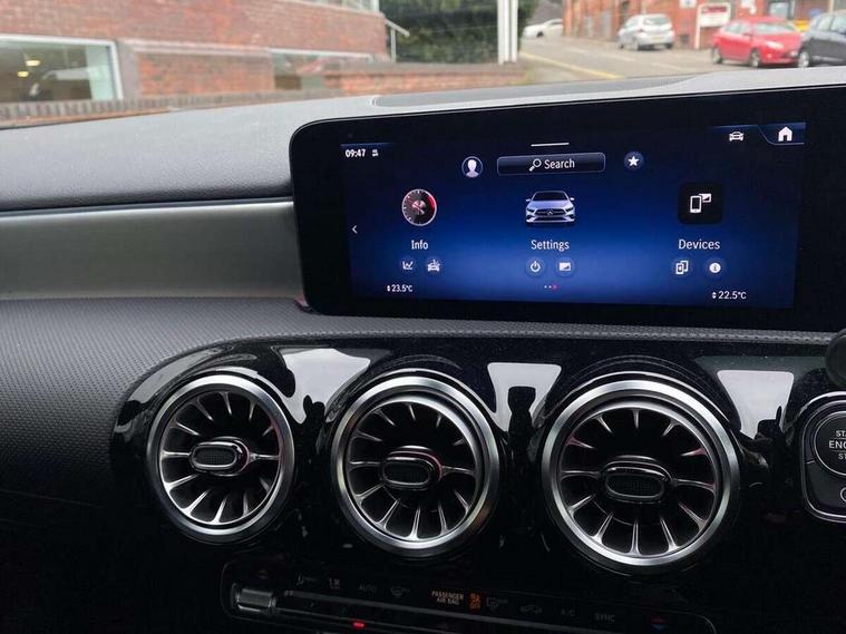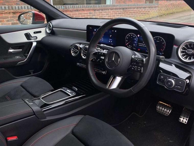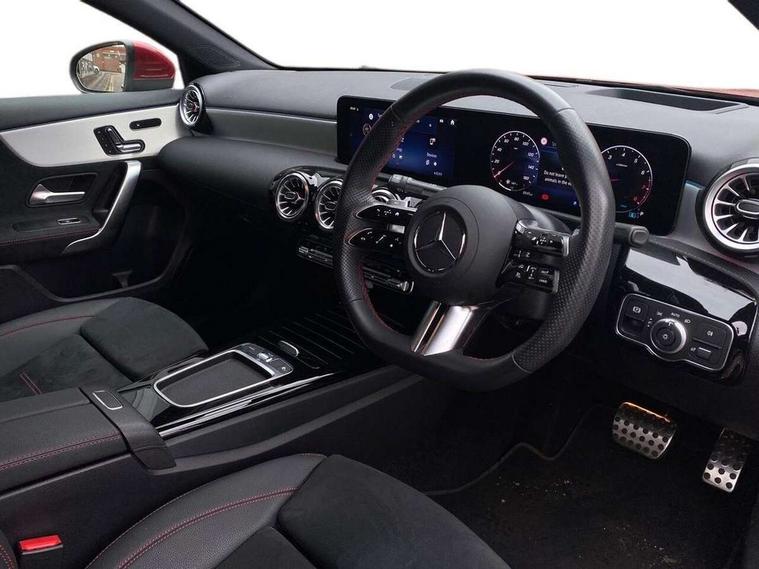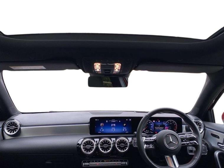 10.25 inch touchscreen central media display, 10.25" Digital instrument cluster display screen, Attention assist, Brake pad wear indicator warning light, Car wash mode, Direct steering, Direction indicators with lane change function, Dual bluetooth interfaces, DYNAMIC SELECT with a choice of driving modes (ECO, Comfort, Sport and Individual), ECO start/stop function, Engine start/stop button, Fluid level warning indicator for fuel, oil, coolant and washer fluid, Hard-disk navigation, Head up Display, Hey Mercedes Voice activation, Lamp failure indicator, MBUX augmented reality for navigation, MBUX Interior assistant, Mercedes me connect including emergency call system, accident recovery, breakdown and maintenance management, Mercedes me remote services, Outside temperature gauge, Owners manual in English, Pre-installation of private car share, Preinstallation for Mercedes Benz link, Remote boot closing, Service indicator (ASSYST), Smartphone integration with Apple CarPlay and Android auto, Speed sensitive power steering, Traffic sign assist, Trip computer in multifunction display with current consumption indicator, Wireless charging, Lowered comfort suspension, DAB Digital radio, MBUX multimedia system, Mercedes Benz advanced sound system (225 W) with 10 speakers, 1 central speaker, speakers on doors, a tweeter on door, one sub woofer + boost amplifier, 4 Electric Front and Rear windows, Adaptive brake lights, AMG body styling - AMG front apron with front splitter and AMG rear apron and visible exhaust tailpipe trim elements, Body colour bumpers, Body colour door handles with chrome inserts, Body colour side skirt, Body coloured door mirrors, Chrome beltline strips, Diamond radiator grille with pins in fine star pattern, Electric adjustable and heated door mirrors with integrated LED side indicators, Exhaust system with 2 visible tailpipe trim elements and rear apron, Headlamp assist automatic headlamp activation, Heat insulating dark tinted rear and rear side windows, Heated glass rear windscreen + timer control, LED daytime running lights, LED tail lamp, Multibeam LED headlamps with adaptive highbeam assist and cornering function, Panoramic sliding sunroof, Privacy glass, Radio aerial, Rain sensing windscreen wipers with two sensitivity settings, Rear boot, Rear fog lights, Rear side wing doors, Surround lighting with logo projection, Third brake light featuring LED technology, Window line trim strip in chrome, 3 seat bench in 2nd row, 3 Spoke flat bottom leather multi function steering wheel with perforated leather in grip area, 40:20:40 split folding rear seats, Air conditioning - Two zone thermotronic luxury automatic climate control with display, Automatic child seat recognition sensor, Black air vents with surround in silver chrome, Black roof lining, Brushed stainless steel sports pedals with rubber studs, Electrically adjustable front memory seats including lumbar support and backrest inclination, Floor mats with AMG lettering, Front centre armrest with stowage, Front seat backs luggage nets, Front sports seats with adjustable head restraints, Galvanished gear shift paddles on steering wheel, Heated front seats, Height/reach adjustable steering column, Illuminated Mercedes Benz lettering front door sills with changeable cover, Interior lighting - 64 colour Ambient lighting, Interior mirror with reading lamps in black and frameless, Rear armrest with 2 cupholders, Seat occupancy sensor for front passenger seat, Single front passenger seat, Stowage compartment in centre console with retractable cover, Sunvisors with illuminated vanity mirrors, Twin front cupholders, Keyless go comfort pack - A Class, Light and sight pack - A Class, Mirror package - A Class, Parking pack with 360 degree camera - A Class, Seat comfort pack - A Class, USB pack plus - A Class, 3 rear 3 point seatbelts, ABS with Brake Assist, Active bonnet, Adaptive brake assist with hold function and hill start assist, Bonnet with power domes, Childproof locks manually operated for rear doors and electrically operated for rear power windows, Crash responsive emergency lighting, Driver and passenger head and side airbags, Drivers knee airbag, Dual stage driver/passenger airbags, Electronic parking brake, ESP curve dynamic assist, ESP with ASR, Exit warning, Front and rear seatbelt reminder, ISOFIX and top tether child seat fixing points in two outer rear seats, Tyre pressure monitoring system, Warning triangle and first aid kit, Window airbags, Alarm system/interior protection/immobiliser, Guard 360 degree vehicle protection, Remote central locking and crash sensor with emergency opening function, Black seatbelts, Light longitudinal grain aluminium trim, 19" AMG multi-spoke light alloy wheels, aerodynamically optimised, painted in titanium grey with high sheen finish, Summer tyres, Tirefit sealant kit,
