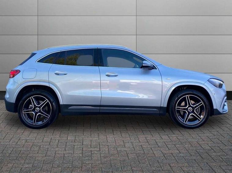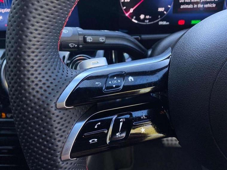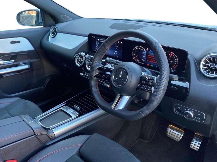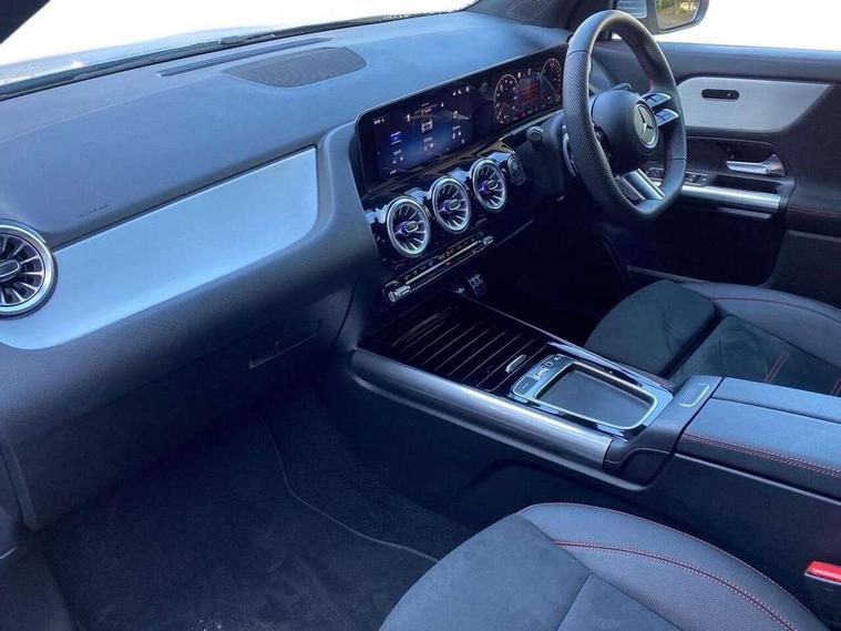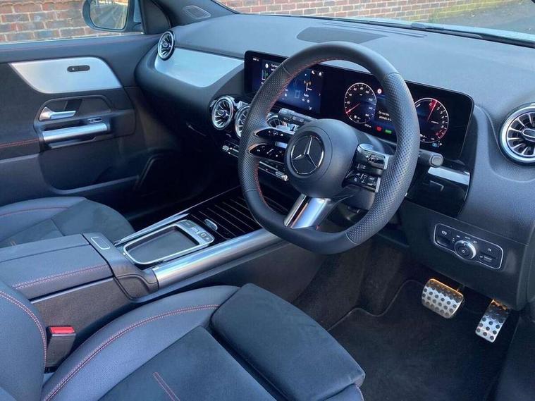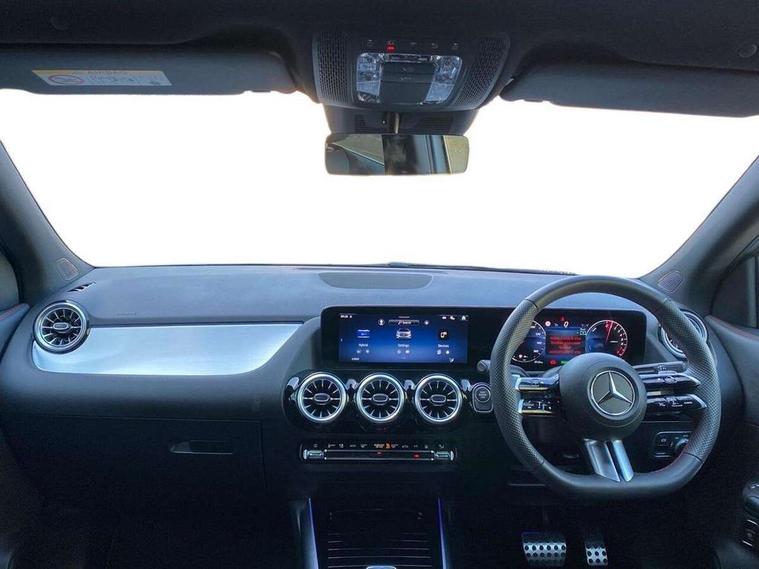 10.25 inch touchscreen central media display, 10.25" Digital instrument cluster display screen, Acoustic ambient protection, Attention assist, Blind spot assist, Direct steering, DYNAMIC SELECT with a choice of driving modes (ECO, Comfort, Sport and Individual), ECO start/stop function, Fluid level warning indicator for fuel, oil, coolant and washer fluid, Hard-disk navigation, Hey Mercedes Voice activation, Lamp failure indicator, Lane keeping assist (LKA), Mercedes me connect including emergency call system, accident recovery, breakdown and maintenance management, Mercedes me remote services, Multi function trip computer, Outside temperature gauge, Owners manual and service booklet in English, Pre-installation of private car share, Radio aerial integrated into front and rear windshields, Remote and charging services plus, Service indicator (ASSYST), Smartphone integration with Apple CarPlay and Android auto, Speed limit assist, Wireless charging, 4m charging cable for wall box/public charging stations(mode 3), Charging system - AC charging system rated at 11kW, Charging system - DC charging system rated at 22kW, Comfort suspension, Rear axle torsion beam, Bluetooth connectivity including audio streaming, DAB Digital radio, MBUX multimedia system, Mercedes Benz sound system (100 W) with 6 speakers, Adaptive brake lights, Adaptive highbeam assist, Aluminium roof rails, AMG front apron with front splitter in the colour of the vehicle with chrome trim element, AMG rear apron with visible tailpipe trim and chrome trim element, AMG specific/dual flow exhaust pipes in chrome (non-functional), Automatic headlamp activation, Beltline trim and window line trim strip in high gloss aluminium, Black grained side sill trim with chrome inlay, Car wash function, Dark privacy glass from B-pillar backwards, Electric front windows, Electric rear windows, Electrically adjustable and heated door mirrors with integrated LED indicators, Exhaust system with 2 Visible tailpipe trim elements and rear apron with trim in chrome, Heat insulating dark tinted glass, Heated glass rear windscreen + timer control, Interior mirror with black reading lamps and frameless, LED high performance headlamps with integrated LED daytime running lights, LED tail lights, LED third brake light, Rain sensor windscreen wipers, Rear fog lights, Rear side wing doors, Rear wiper, Wheel arch liners in the colour of the vehicle, 3 seat bench in 2nd row, 3 spoke flat bottom multifunction nappa leather steering wheel, 4 way lumbar support, 40:20:40 split folding rear seat backrests, Adjustable head restraints, Air conditioning - air vents with silver chrome surround, Air conditioning - One zone THERMATIC automatic climate control with automatically controlled air distribution, AMG floor mats, Artico man-made leather/Microcut microfibre upholstery with red contrast stitching, Auto Mercedes-Benz child seat recognition sensor, Black roof lining, Charging socket, Courtesy light in boot, Fluorescent jacket, Front centre armrest with stowage, Galvanished gear shift paddles on steering wheel in silver chrome, Heated front seats, Illuminated glovebox, Interior lighting - 64 colour Ambient lighting, Luggage net on driver/front passenger seat backrest, Manually height and reach adjustable steering column, Pre-entry climate control, Single front passenger seat, Sports pedals in brushed stainless steel with black rubber studs, Sports seats, Sports steering wheel, Stowage compartment in centre console, Stowage compartment with retractable cover, Sunvisors with illuminated vanity mirrors, Twin front cup holders, Two outer rear seat isofix and top tether child seat fixing points, Comfort seat pack - GLA Class, Interior lighting with light and sight pack - GLA, Keyless go comfort package - GLA, Mirror pack - GLA Class, Parking package with reversing camera - GLA, USB package plus - GLA, Winter package - GLA, 3 rear 3 point seatbelts, ABS with Brake Assist, Active bonnet pedestrain safety measure which detects an impact and raises bonnet by 65mm, Active brake assist includes forward collision warning system with autonomous braking, Adaptive brake assist with hold function and hill start assist, Bonnet with power domes, Brake pad wear warning indicator, Childproof locks manually operated for rear doors and electrically operated for rear power windows, Crash responsive emergency lighting, Driver and passenger head and side airbags, Drivers knee airbag, Dual stage driver/passenger airbags, Electronic parking brake, ESP curve dynamic assist, ESP with ASR, Front and rear seatbelt reminder, Front brake callipers with Mercedes Benz logo lettering on front, Front brake discs internally ventilated and perforated, Front passenger seat occupancy sensor, Radar-based recuperation, Sports braking system, Tyre pressure monitoring system, Warning triangle and first aid kit, Window airbags, Alarm system with immobiliser and interior protection -Thatcham category 1, Guard 360 degree vehicle protection, Remote central locking and crash sensor with emergency opening function, Black seatbelts, Light longitudinal grain aluminium trim, 19" AMG 5 twin spoke light alloy wheels aerodynamically optimised, painted in high-gloss black and with a high-sheen finish RTG, Summer tyres, Tirefit tyre sealant kit,