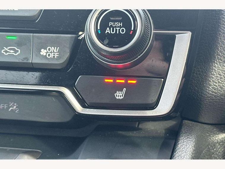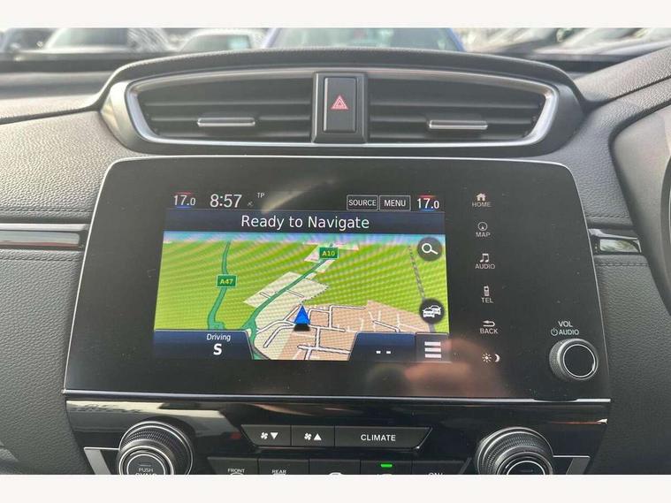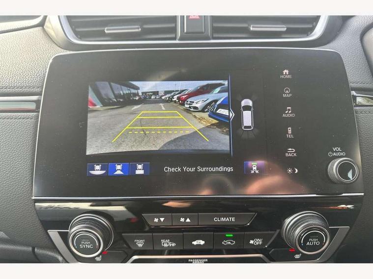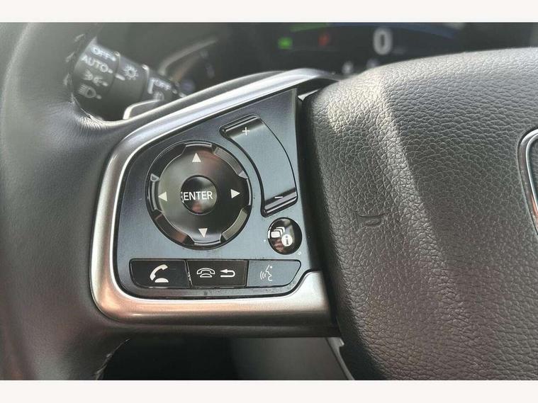 Adaptive cruise control, Agile handling assist, BLIS (Blind Spot Information System) with dual power heated blind spot mirrors, Bluetooth hands free telephone connection, E-call, Economy mode, Electric power steering, Emergency stop signalling system, Forward collision warning, Front parking sensors, Honda CONNECT with GARMIN Navigation + 7" touchscreen, DAB radio, Apple CarPlay, Android Auto, Aha app integration and internet browsing, Intelligent multi info display, Lane departure warning system, Lane keep assist system, Low speed following, Rear parking sensors, Rear view camera, Road departure mitigation, Speed limiter, Traffic sign recognition, Vehicle stability assist, 2 USB sockets in rear, 2x USB sockets in front, 9 speakers, DAB Digital radio, Dashboard centre speaker, Front tweeters, Steering wheel mounted controls, Subwoofer, Aspheric door mirrors, Auto dimming rear view mirror, Automatic headlights with dusk sensor, Body colour bumpers, Body colour door handles, Cornering light, Door mirrors tilt when reversing, Electric front windows/one touch facility, Electric rear windows + one touch facility, Electrically adjustable and heated door mirrors, Electrically retractable door mirrors, Front windscreen de-icer, High beam assist, LED daytime running lights, LED front fog lights, LED Headlights, LED rear lights, Rain sensor, Rear privacy glass, Rear side wing doors, Rear wiper, Roof rails, Shark fin roof aerial, Third brake light, Welcome home function, 3 seat bench in 2nd row, 60/40 split folding rear seat, Accessory sockets, Ambient interior lighting, Cargo hooks, Courtesy lights, Driver's electric adjustable lumbar support, Driver/passenger front seatback pockets, Driver/passenger sunvisors with illuminated vanity mirrors, Dual zone automatic climate control, Electric lumbar adjustment on passenger's seat, Front centre armrest, Front map lights, Front passenger seat height adjust, Heated front seats, Height adjustable driver's seat, Hybrid emblem, Illuminated glovebox, Instrument panel with garnish wood film, Isofix child seat preparation, Leather steering wheel, Leather upholstery, Paddle shift controls, Rear air vents, Rear centre armrest, Rear headrests, Rear reading lights, Rear seat conversation mirror, Silver interior door handles, Single front passenger seat, Sunglasses holder with mirror, Tilt/telescopic adjustable steering wheel, Tonneau cover, Trunk light, 5 x 3 point seatbelts, ABS/EBD, Anti-whiplash front headrests, Brake assist function, Collision mitigation braking system, Deflation detection system, Driver airbag, Electronic parking brake with auto hold, Front and rear curtain airbags, Front and rear seat belts with emergency locking retractor (ELR), Front side airbags, Hill start assist, Manual child lock in rear doors, Passenger airbag deactivate switch, Honda super locks, Immobiliser, Security alarm, Smart entry + Smart start, Ultrasonic security sensor, Tyre repair kit,
