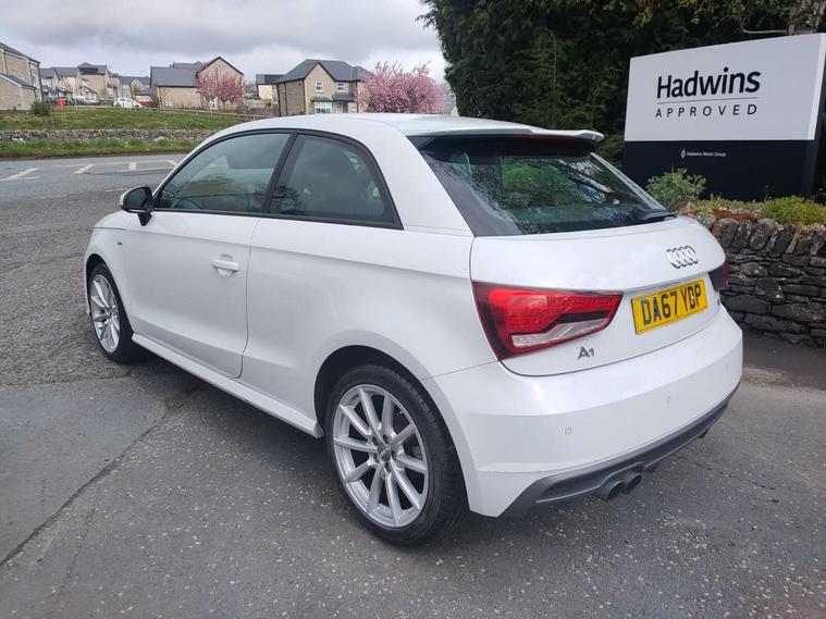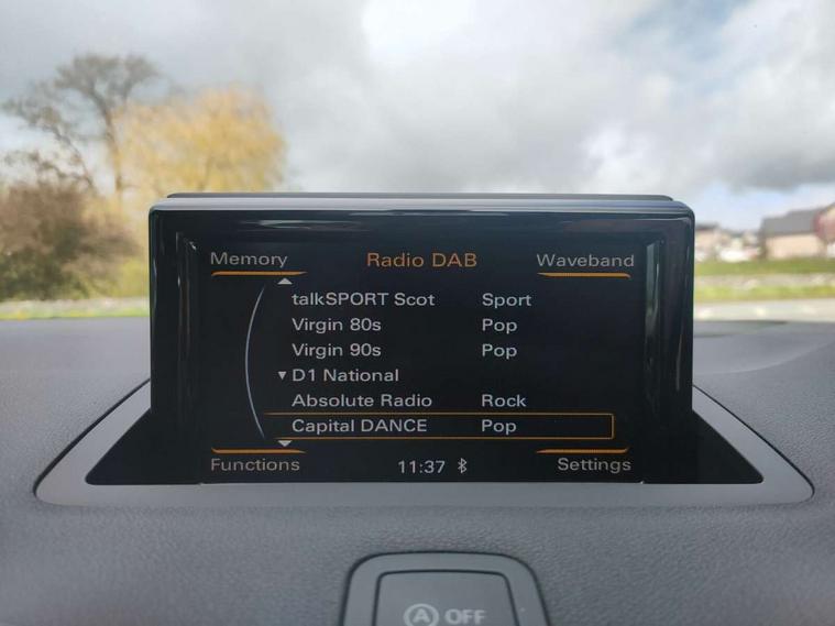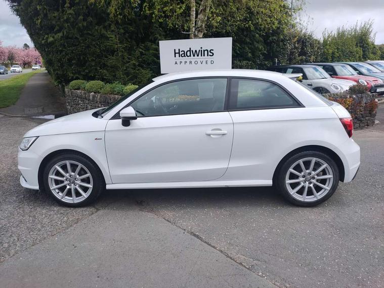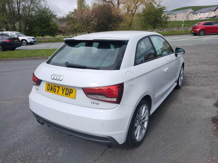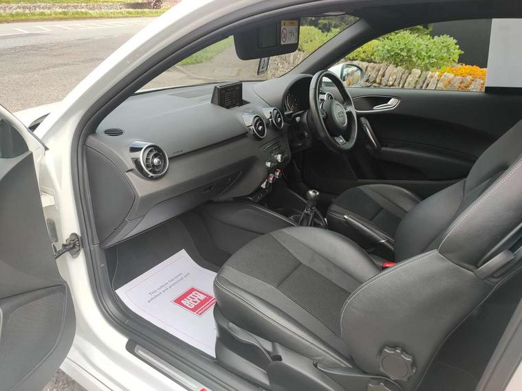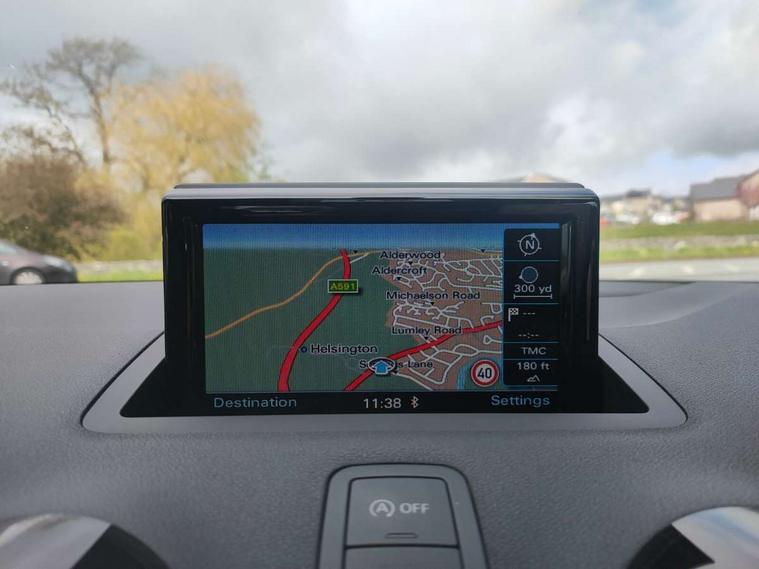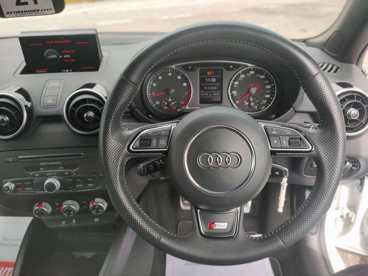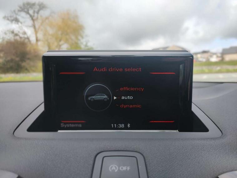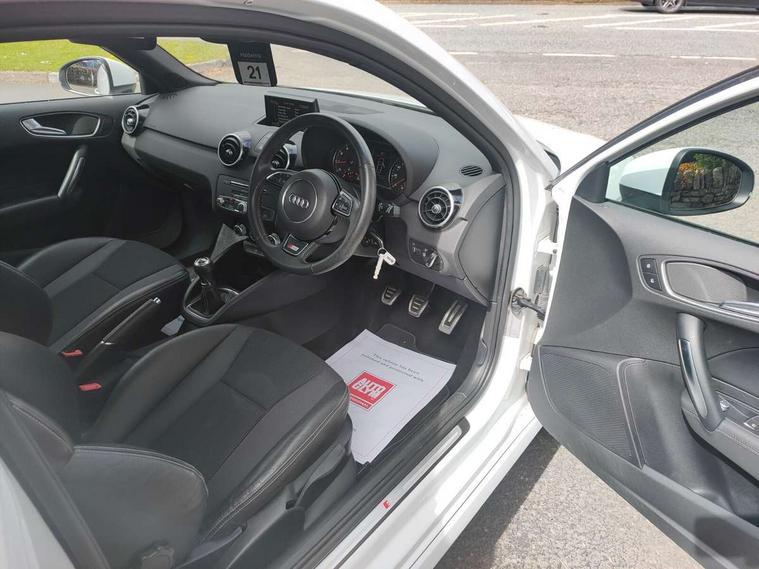 Audi drive select, Cruise control, Driver's information system, Electro-mechanical PAS, Low washer fluid indicator, Service interval indicator, Voice control system, Additional SD card reader, Audi music interface, Bluetooth audio streaming, DAB Digital radio, Adaptive brake lights, Body coloured bumpers, Body coloured door mirrors, Electric adjustable door mirrors, Electric front windows, Front fog lights, Heat insulating glass, Heated door mirrors, Heated rear windscreen, Rear diffuser, Rear wiper, Roof spoiler, S Line body styling, Xenon plus headlights including automatic headlights, LED daytime running lights, LED rear lights, dynamic range control and headlight washers, 12V Accessory socket in centre console, Adjustable rear head restraints, Black cloth headlining, Cupholders in centre console, Door sills trims with aluminium inlays, Front floor mats, Front head restraints, Front seats - 'Easy Entry', Height adjustable front seats, Illuminated glovebox, Isofix attachments on outer rear seats, Jack and tool kit, Leather handbrake, Lumbar adjustment for front seats, Rake/reach adjustable steering wheel, Split folding rear seats, Non smoking pack - A1, ABS/EBD, Brake assist function, Driver and passenger side airbags, Driver/Front Passenger airbags, EDL, ESP with ASR, First aid kit, Front and rear seatbelt reminder, Front passenger airbag deactivation, Head airbags, Height adjustable front seatbelts, Rear three point seatbelts x 2, Tyre pressure monitor, Warning triangle, Locking wheel bolts, Remote control central locking, Thatcham category 1 alarm + immobiliser, Tyre repair kit,