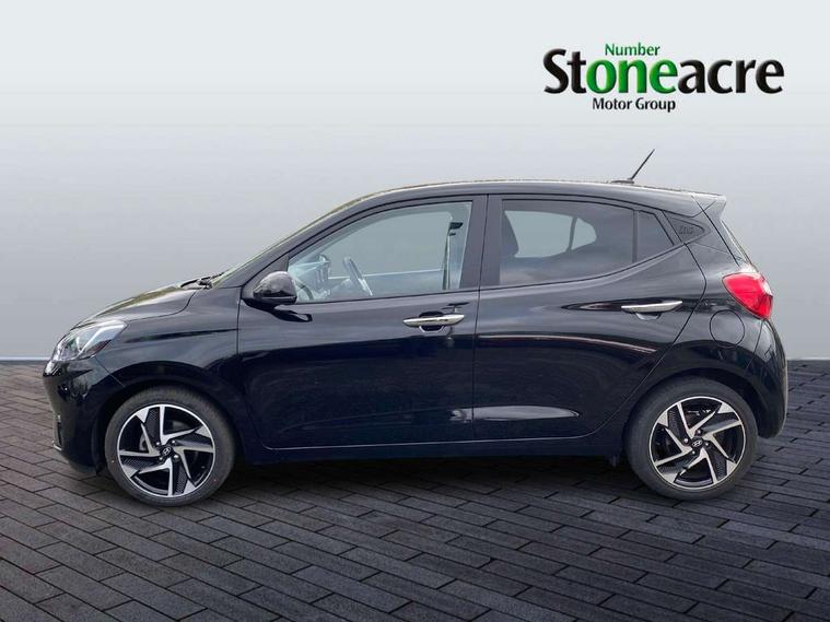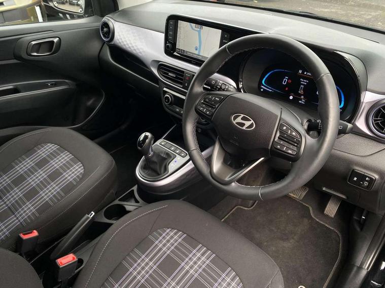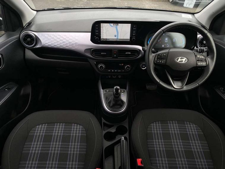 Apple car play/Android Auto, Bluelink mobile remote connectivity, Bluetooth connectivity with voice recognition, Cruise control, Driver attention alert system, eCall emergency call system, Forward Collision-Avoidance Assist (FCA) - Pedestrian/Cyclist, Front USB-C charging and USB-A data, Full-width 4.2" LCD instrument cluster, Intelligent speed limit assist, Lane departure warning system with lane keep assist - LKAS, Lane follow assist, PAS, Rear parking sensors, Rear view camera with guidelines, Roadside assistance, Start/Stop function, Tailgate, Trip computer, Wireless charging pad, 2 front/2 rear speakers, Rear USB-C device charger, Steering wheel audio, phone and cruise controls, 1 speed non intermittent rear windscreen wiper, Black finish on B pillars, Body colour door handles, Body coloured bumpers, Body coloured door mirrors, Electric folding door mirrors, Electric front windows, Electric rear windows, Electrically adjustable and heated door mirrors, Flat metal emblem, Front fog lights, Front grille in glossy black, Front intermittent wipers, Halogen bi-function headlights, Headlights inner with Black Blade design, Heated rear window, High beam assist, Indicator light on door mirrors, LED DRLs diamond mesh design, Privacy glass - Rear windows and tailgate, Rear roof spoiler with integrated LED brake light, Rear side wing doors, 12v power outlet - front, 3 seat bench in 2nd row, 60/40 split folding flat to floor rear seats, Air conditioning, Auto light control, Bottle holders in front/rear doors + front centre console, Cabin and luggage compartment interior lighting, Cloth upholstery, Driver + passenger vanity mirrors, Driver's seat height adjustment, Driver/passenger sunvisors with ticket holders, Floor mats, Front door pockets, Front Head Restraints - Vertical and Horizontal Adjustment, Front LED blue mood lighting, Glove compartment, Heated front seats, Heated steering wheel, Height adjustable steering column, Isofix child seat preparation, Leather multifunction steering wheel, Rear door pockets, Single front passenger seat, Vertical adjustment rear head restraints, 3x3 point rear seatbelts, Airbags - front, front side and curtain airbags, Anti-lock brake system (ABS), Autonomous emergency braking (AEB) with forward collision warning system, Brake assist function, Childproof rear door locks, Electronic stability control, Front and rear seatbelt reminder, Front seatbelt pretensioners, Hill start assist control (HAC), Passenger airbag deactivate switch, Traction control, Tyre pressure monitoring system, Immobiliser, Perimeter alarm, Rear occupant alert, Remote central locking, Second remote key, Smart key with motion sensor, Speed sensitive auto door locking, 16" alloy wheels, Tyre repair kit,