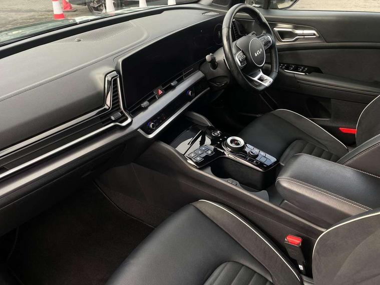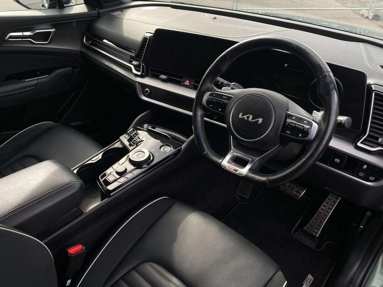 12.3" Display with navigation, 12.3" supervision colour cluster display, 360 degree around view monitor, Apple car play/Android Auto with voice control, Blind spot collision avoidance assist, Blind spot view monitor, Drive mode selector, E-call, Forward collision avoidance assist (FCA) - city/pedestrian/cyclist/junction covering, Front and rear parking sensors, Highway Driving Assist (HDA), Intelligent speed limit assist, Kia Connect (UVO), Lane Following Assist (LFA), Lane keep assist, Low washer fluid warning, Parking collision avoidance assist (PCA), Remote smart parking assist, Reversing camera system integrated into centre fascia screen, Smart cruise control with stop and go functionality, Smart power tailgate, Speed sensitive power steering, Trip computer, Windscreen washer level indicator, Wireless Smartphone charger, Intelligent Stop and Go, Terrain mode select (Mud, Snow, Sand), Bluetooth audio streaming, DAB Radio with MP3, Harman Kardon premium sound system, Rear USB port, Steering wheel mounted audio controls, USB C type charging ports on centre console, USB C type charging ports on side of front seats, USB port for connection of a media device, All round electric windows with drivers and front passenger auto up/down function, Automatic headlight control system, Automatic window defogger, Backlite glass heated with timer, Body colour and black bumper with silver accents, Body colour exterior door handles, Body colour radiator upper garnish and door garnish, Dual LED adaptive headlamps, Electric panoramic glass sunroof (Electric one touch with safety function), Electrically adjustable/heated/folding door mirrors with LED indicators, Front and rear chrome skid plates, Gloss black door mirrors, Gloss black radiator grille, Gloss black side sill and wheel arch body mouldings, Glossy black roof rack, High beam assist, Interior electrochromic mirror, LED daytime running lights, LED front fog lamps, LED High mounted stop light, LED rear combination lamp, Rain sensing wipers with aero blades, Rear fog lamp, Rear privacy glass, Rear side wing doors, Rear spoiler, Rear wiper, Satin finished beltline, Silver coloured inserts to bumpers, Tinted rear glass, Trailer stability assist, 10 way driver/8 way passenger electrically power adjustable seats, 12V power socket in front centre fascia and luggage compartment, 3 seat bench in 2nd row, 3 x passenger assist grips, 40/20/40 split folding rear seat, All-round height adjustable headrests, Ambient lighting, Black headlining, Centre console storage box, Cupholders in rear armrest, D-Shaped sports leather steering wheel and perforated inserts with GT-Line logo, Door courtesy lamps, Drink holder at centre armrest, Driver and front passenger side sunvisors with illuminated vanity mirrors, Driver seat memory function, Drivers seat power lumbar support, Front and rear door storage, Front seat and rear pockets, Front/rear centre armrests, Gear shift indicator, Glovebox illumination, Heated front and outer rear seats, Heated steering wheel, Interior door lock/unlock function, ISOFIX Child seat top tethers and anchor fixings outer rear seats, LED interior personal lamp, LED lighting in overhead console, Luggage area LED light, Luggage area load cover, Luggage net with hooks, Metal paint interior door handles, Paddle shift controls, Rear cabin light, Rear coat hooks, Single front passenger seat, Sports pedals, Suede leather upholstery, Three zone climate control, Tilt/telescopic adjustable steering wheel, Ventilated front seats, Ventilation ducts to rear compartment, Active front headrests, All round 3-point seatbelts, Anti-lock braking system (ABS), Dual front side airbags, Dual horn, Electronic parking brake, Electronic stability control with downhill brake control, Front passenger airbag cut-off switch, Front seatbelt pretensioners + load limiters, Height adjustable front seatbelts, Hill start assist control (HAC), Impact sensing auto door unlocking, Multi collision brake assist, Rear door child safety locks, Rear seat alert system, Traction control, Twin curtain airbags, Twin front airbags, Tyre pressure monitoring system, Advanced anti-theft system including immobiliser and alarm, Door deadlocks, Engine Start/Stop Button with Smart Entry System, Locking wheel nuts, Speed sensitive auto door locking, Visible vehicle identification number, Aluminium pattern finish centre fascia and door garnish, 18" GT-Line alloy wheels, Michelin tyres, Tyre mobility kit,