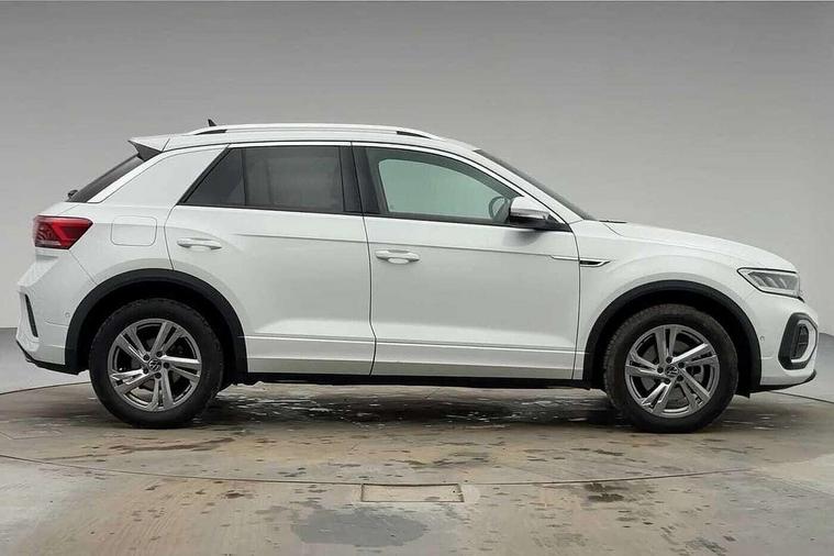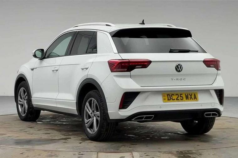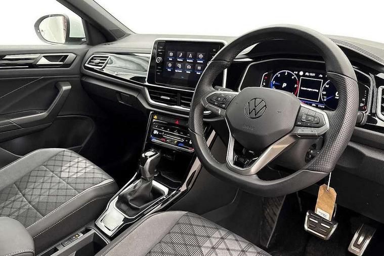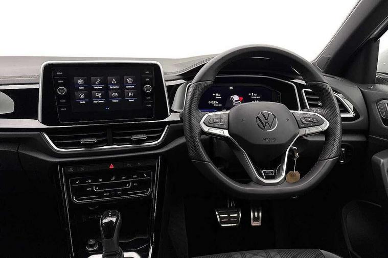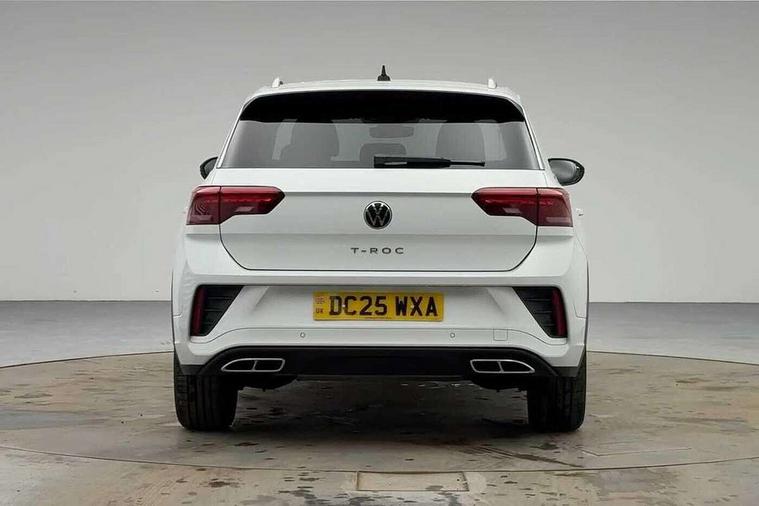 10.25" Digital cockpit pro, Advanced driver attention and drowsiness monitor, Dynamic road sign display, Emergency call service, Lane keeping system Lane Assist, Mobile phone interface, Modified key software - reduce switch off time for key status change to Long no motion, Online services, Park assist including front and rear parking sensors, Service interval indicator, Tailgate/trunk lid release from outside, Think blue trainer driver tips and journey analysis, Warning sound and light for front seatbelts unfastened, Wireless app connect, Battery regeneration during braking, Start/stop function with battery regeneration, DAB Digital radio, Diversity antenna for FM reception, Front and rear 6 speakers, Music playback - MP3, WMA and AAC files, Premium USB cable in choice of either Apple or Android smartphone compatibility, SD card slot, Simultaneous pairing of 2 compatible mobile devices, Title and cover art display, We Connect and We Connect Plus functionality, Auto dimming interior rear view mirror, Automatic hazard lights activation under emergency braking, Automatic headlight control with LED separate daytime running lights with coming/leaving home function, Body coloured exterior mirror housings and door handles, Electrically adjustable and heated door mirrors, Extended roof spoiler, Exterior mirrors aspherical on driver side, convex on front passenger side, External USB type C socket and charging sockets, Front windscreen wiper with intermittent wipe and 4 position delay, Heated rear window, LED 3rd brake light, LED rear combination lamps, LED rear number plate lights, Power windows with comfort operation and circuit breaker, Privacy glass for rear side windows and rear window, R-Line design body coloured bumpers, Rain sensor, Rear exhaust tailpipe, Rear fog light on one side and reversing lights on both sides, Rear side wing doors, Rear wash/wipe with intermittent wipe setting, Remote electrically foldable door mirrors, puddle lights and reverse activated passenger's door mirror, 12V power socket in centre console, 3 rear head restraints, 3 seat bench in 2nd row, 4 load lashing points in luggage compartment, Air care climatronic air conditoning system with active combination filter and 2-zone temperature control, Black roof lining, Chrome plated decorative trims, Chrome plated radiator grille inserts, air vent surrounds and light switch surrounds, Door and side trim panel with leatherette insert, Front + rear carpet mats, Front centre armrest, Front cupholders x 2, Front footwell illumination, Front reading light, Front scuff plates with R Line logo, Front seat back storage pockets, Glove compartment door with light, Instrument lighting, white adjustable panel illumination, Interior ambient lighting and surround lighting, Interior light delay, Isofix child seat preparation, Leather gearshift handle, Load-through provision with cup holder when folded down ('Unsplit rear seat bench, split folding backrest, with centre armrest), Luggage compartment lighting, Single front passenger seat, Stainless steel pedals, Storage compartment in left and right luggage area, Storage compartment in rear doors, Storage compartments in driver and front passenger doors, Sunvisors with illuminated vanity mirrors, Variable boot floor, height adjustable and removable, Driver assistance pack without proactive passenger protection - T-Roc, 3 point height adj front seatbelts + pretensioners, 3 point seatbelts in outer rear with ECE label, ABS, Child locks on rear doors, City emergency braking and pedestrian monitoring, Driver and front passenger airbag with front passenger airbag deactivation, Driver and front passenger safety-optimised head restraints, Drivers seatbelt reminder, Electronic parking brake, Electronic Stability Control (ESC) inc EDL (Electronic Differential Lock) and ASR (Traction Control), Front and rear passengers curtain airbag system including front side airbags, Hill start assist, Predictive pedestrian protection, Rear disc brakes, Two tone horn, Tyre pressure loss indicator, Volkswagen roadside assistance, Piano black decorative inserts in dashboard and front door trim panels, Trims for alloy wheels,