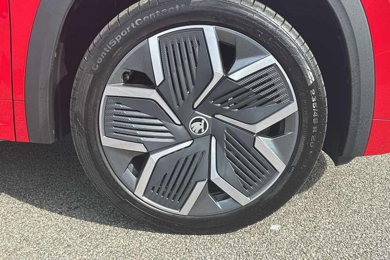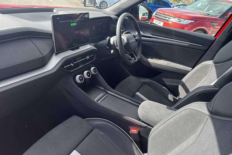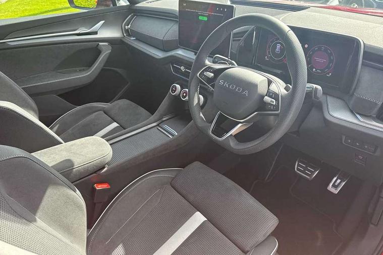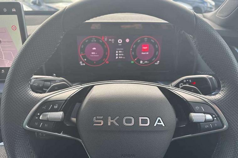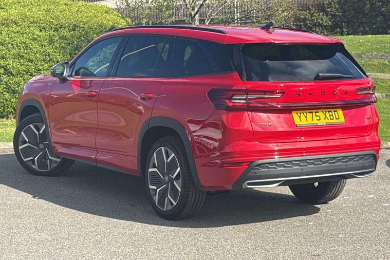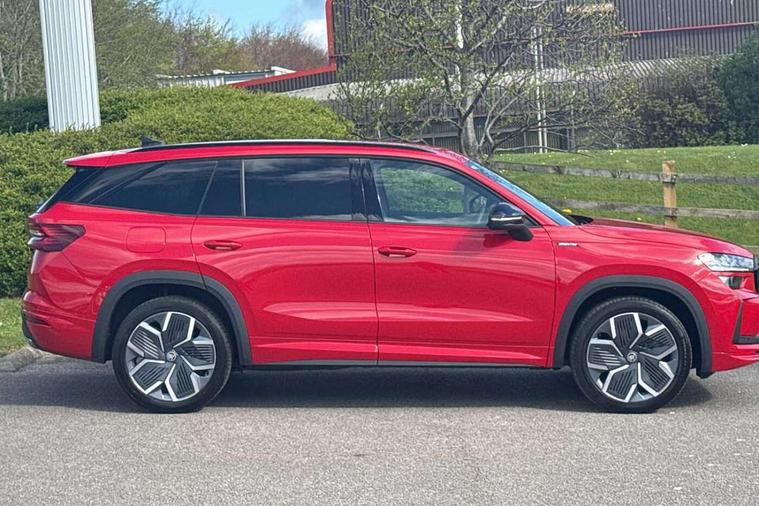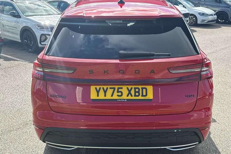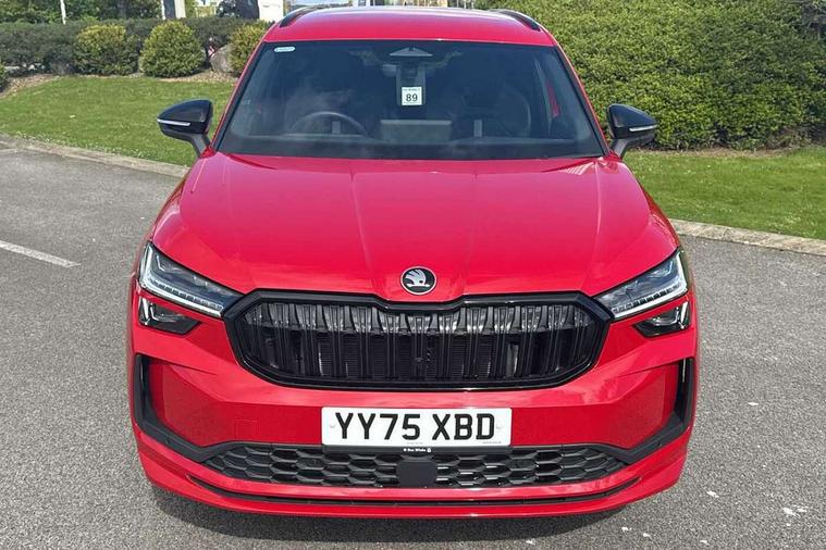 13" satellite navigation touchscreen display, Blind spot detection with door exit warning, Bluetooth system, ChatGPT functionality, Driver alert - Fatigue and drowsiness monitor, Dry display cleaner, Emergency call, Front and rear parking sensors, Front cross traffic assist, Lane assist, Off road modes, PAS, Rear traffic assist, Tailgate unlocking from outside, Traffic sign recognition, USB C Port x 2 in front centre console, Virtual Cockpit - 10.25" digital display, Voice control system, Wireless charging for two smartphones (15W) with cooling function, Wireless SmartLink for Apple CarPlay and Android Auto, Stop/start function, 2x USB-C in the rear, DAB Digital radio, Aero front windscreen wipers with intermittent function, Auto dimming rear view mirror, AWL (all weather lighting) and all weather light with cornering function, Black diffuser and decorative tailpipe with a unique dark chrome finish, Black roof rails, Black sports styling including front grille and window surrounds, Black wheel arch surrounds, Body colour door handles, Cornering light and poor weather light, Electric folding /adjustable/separted heated/folding door mirrors, auto dimming with boarding sports and memory function, Electric front and rear windows, Exterior black decorative trims, Front and rear sports bumpers including lower rear chrome strip, Front grille with horizontal light strip, Gloss black door mirrors, Gloss black window frame and D pillar, Heat insulating glass in windshield, Heated rear window, Ice scraper in fuel tank cap, LED daytime running lights, LED matrix headlights with AFS and LED fog lights, LED rear light with welcome effect and dynamic turn signals, LED third brake light in rear spoiler, Light assistant with automatic headlight control and coming home feature, Logo projection in door mirrors, Multiple matrix beam, Privacy glass, Rear roof spoiler, Rear side wing doors, Rear window wiper, Red decorative strip between rear LED lights, Safety reflectors on front and rear doors, Sportline badge on front fenders, Tailgate lettering in Black, Unique dark chrome design logo on alloy wheels, Window control switches with black trim, Windscreen wipers with rain sensor, Without engine designation, 1.5l bottle holder points in all door, 1x centre rear reading light, 2 seat bench in 3rd row, 3 configurable smart dials with 32mm coloured display, 3 seat bench in 2nd row, 3 spoke multi-function heated leather sports steering wheel with paddle shift, 4 foldable roof handles with rear coat hooks, Aluminium pedals, Ambient interior lighting - Dashboard, front-door stowage compartments, front and rear door panels and footwell lighting, Automatic gear selector on steering column, Chrome interior door handles, Driver/front passenger reading lights, Fabric headlining, Fixed bench 40:60:40 split folding backrests, Front and rear floor mats, Front centre armrest with jumbo box storage compartment, cup holder and 12V socket, Front sport seats, Height adjustable front headrests, Interior black decorative trims, Isofix child seat fittings in outer middle row rear seats and front passenger with top tether, Manually adjustable steering column, Pollen filter, Rear centre armrest with cupholders, Rear seat boot backrest release, Single front passenger seat, Skoda lettering on steering wheel, Storage pocket including mobile phone pockets on the backs of the front seats, Sunvisors with illuminated vanity mirrors, Three rear height adjustable headrests, Ticket holder on A Pillar, Tri zone climate control, Umbrella in door panel x1 made from sustainable materials, Upper and lower glovebox with card holder and coin compartment, USB C port by rear view mirror for charging only (15W), Acoustic package - Kodiaq, Performance package - Kodiaq, Sportline design selection pack - Kodiaq, Auto door release and activation of warning lights in the event of an accident, Driver and front passenger airbag with knee airbag and front passenger airbag deactivation, Electric child locks, Electronic parking brake, ESC (incl. ABS+EMD+MSR+ASR+EDL+HBA+DSR+RBS+ESBS+MCB+TSA+XDS), Front assist with braking reaction to vehicles, pedestrians and cyclists, Front disc brakes, Fuel cut off safety device, Height adjustable front 3 point seatbelts + pretensioners, Hill hold assist, Junction assist with automatic emergency braking, Rear disc brakes, Safety vest holder in door, Seat belt reminder for all seats, Three point rear seat belts, Two tone horn, Tyre pressure monitor, Alarm with interior monitoring and tilt sensor with safe function, Anti-theft wheel bolts, Immobiliser, Remote central locking with 2 keys, 20" Rila anthacite polished alloy wheel with black matte aero covers,