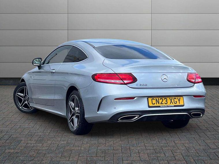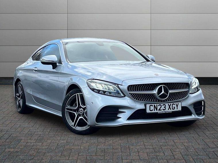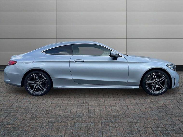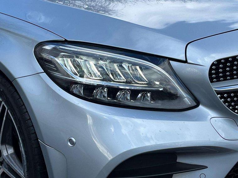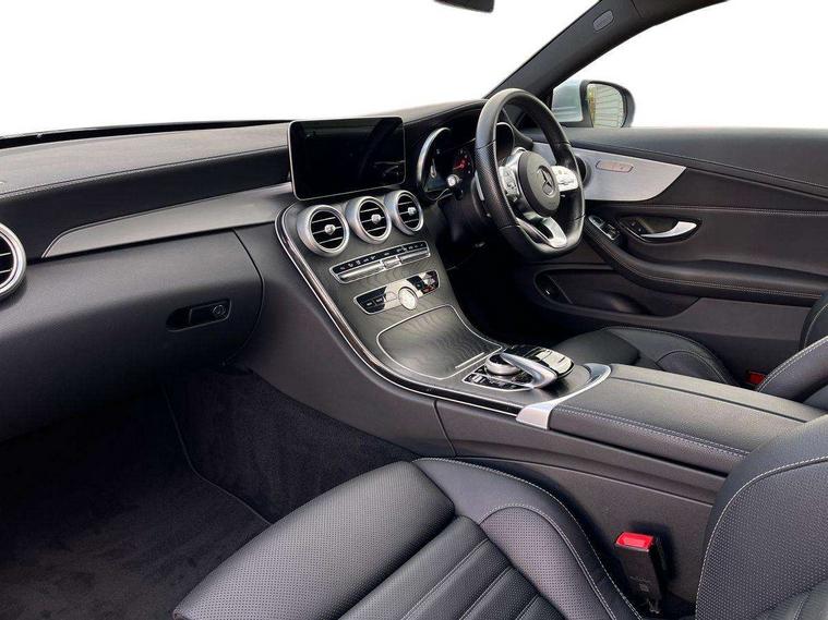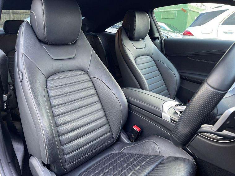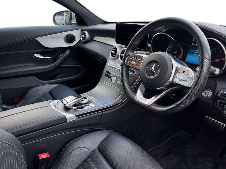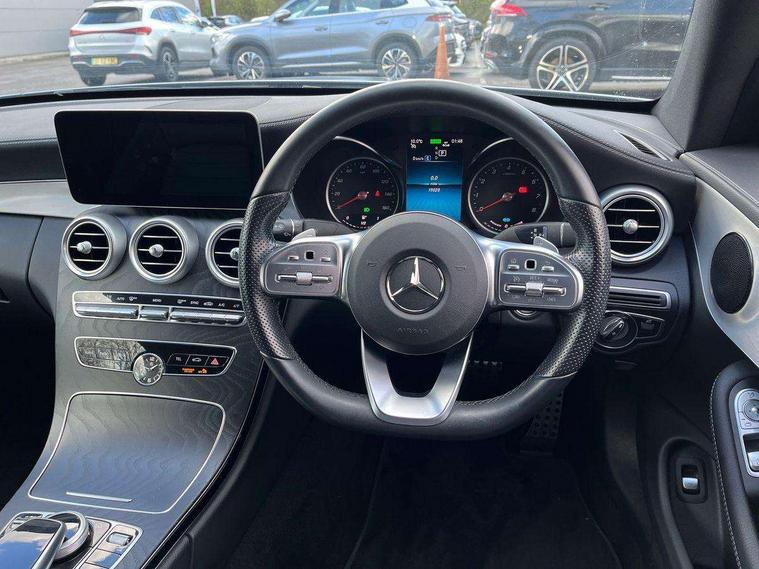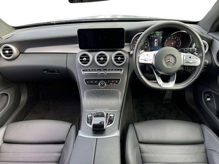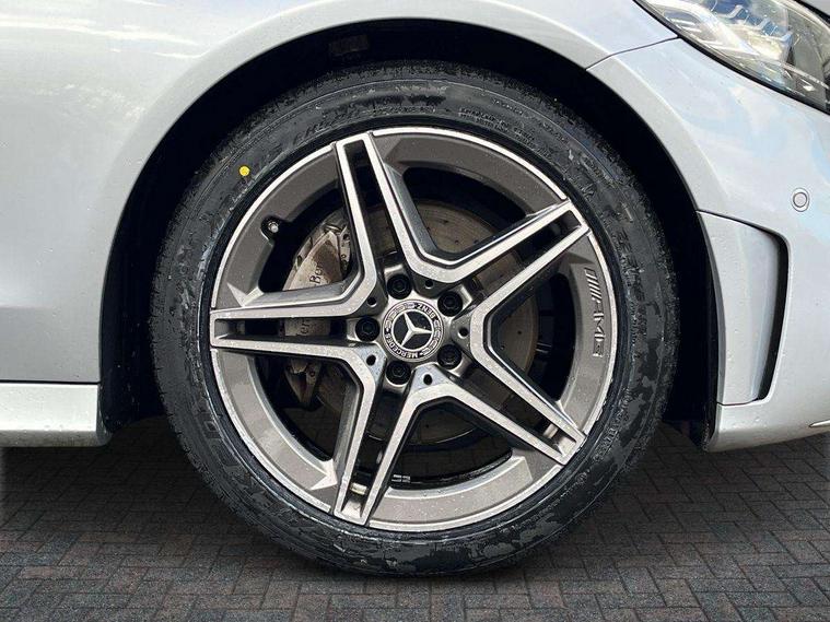 Active park assist with parktronic system, Attention assist, Bluetooth interface for hands free telephone, Collision prevention assist plus, Cruise control with speedtronic variable speed limiter, DYNAMIC SELECT with a choice of driving modes (ECO, Comfort, Sport, Sport+ and Individual), ECO start/stop function, High resolution 10.25" multimedia colour display, Instrument cluster two tube design round dials and 5.5-inch TFT multi-function display, Mercedes me connect including emergency call system, accident recovery, breakdown and maintenance management, Multi function trip computer, Outside temperature display, Pre-wiring for SD navigation system, Remote boot release, Reversing camera, SD card based satellite navigation system, Service indicator (ASSYST), Sports direct steer speed sensitive steering, Status display for rear seat belts in instrument cluster, 66l fuel tank with increased capacity, 9G Tronic plus 9 speed automatic, Agility control sports suspension lowered by 15 mm, Petrol Particulate Filter, Sport exhaust system, Audio 20 with integrated media interface and bluetooth handsfree function, DAB digital radio tuner, Frontbass loudspeakers, SD card slot, Two USB ports and one SD Card slot in centre console, Adaptive brake lights, AMG bodystyling front and rear aprons, side skirts, Automatic headlights, Body coloured bumpers, Chrome pins diamond radiator grille with integrated stars, Door sill panels with Mercedes Benz lettering, Electric windows with one touch opening/closing and obstruction sensors, Exterior mirrors heated and electronically adjustable, Full LED tail lamps, Green tinted glass, LED High Performance headlamps including integral LED daytime running lamps, LED Indicators, LED third brake light, Privacy glass rear side windows B pillars and rear windscreen, Radio aerial integrated into rear window, Rain sensor windscreen wipers, Rear boot, Side windows surround in polished aluminium, Visible twin pipe exhaust trim integrated into rear bumper, 2 cupholders in front centre console, 2 rear head restraints, 2 seat bench in 2nd row, 3-spoke leather multi function AMG steering wheel with flattened bottom section and chrome inserts with perforated leather in grip area, 40:20:40 split folding rear seats, AMG sports seats, Auto Mercedes-Benz child seat recognition sensor, Black floor mats with AMG lettering, Electrical height and back adjustment front seat, Front centre armrest with storage compartment, Front head restraints, Front LED reading lights, Heated front seats, Height/reach adjustable steering column, Illuminated glove compartment stowage, Leather upholstery, Single front passenger seat, Sports pedals with stainless steel surfaces and rubber studs, Sports seats with integrated head restraints, Steering wheel gearshift paddles, Steering wheel touch control buttons for audio and onboard settings, Sunvisors with illuminated vanity mirrors, THERMATIC 2 zone automatic climate control, Interior lighting package - C Class, Mirror package - C Class, Seat comfort pack - C Class, Stowage space pack - C Class, 2 rear seatbelts, 3 point automatic seatbelts, Active bonnet, Adaptive brake system with hold function and brake drying function, Anti-lock braking system (ABS), Automatic seatbelt pretensioner for driver and front passenger, Black seat belts, Brake calipers with Mercedes-Benz lettering + perforated brake discs, Dual stage airbags - driver and front passenger, front sidebags, driver kneebag, pelvis bag and windowbags for driver, front and rear passengers, Electronic parking brake, Electronic Stability Programme (ESP), ISOFIX child seat attachment points with top tether in rear, Tyre pressure monitoring system, Warning triangle and first aid kit, Anti-theft alarm system/interior protection with tow-away protection and interior monitoring systems, Central locking with interior switch, automatic locking and crash sensor with emergency opening function, Chrome surround in electric key, Immobiliser, KEYLESS-GO starting function, Artico man-made leather dashboard with contrast stitching, Black ash wood with brushed aluminium trim, 18" 5 spoke aero alloy wheels painted in silver, TIREFIT with tyre inflation compressor,