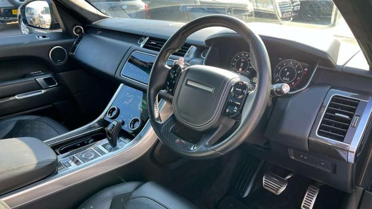 All Terrain Info Centre, Bluetooth connectivity, Clear exit monitor, Driver condition monitor, Incontrol apps in vehicle touchscreen, Incontrol pro services and wifi hotspot, InControl secure Tracker, Interactive Driver display instrument cluster, Mist sensor, Navigation pro system with 10" touch screen, app interface and media storage, Powered gesture tailgate/boot lid, Push button start, Rear traffic monitor, Remote premium - Upgraded Incontrol remote app including remote climate control (engine dependent), remote lock + Unlock and remote beep + flash, Touch pro duo system, Traffic sign recognition with adaptive speed limiter, Trip computer, Adaptive dynamics, All terrain progress control, Configurable dynamics, Electronic active differential with brake torque vectoring, Gradient release control (GRC), SVR sports suspension with dynamic response (active roll control), Terrain Response 2 with dynamic program, Twin speed transfer box, Bluetooth audio streaming, DAB Radio (Digital Audio Broadcasting), Incontrol protect - SOS emergency call with automatic collision detection, optimised assistance call and Incontrol remote app essential, USB/aux input socket, Acoustic laminated front windows, Active exhaust control, Adaptive brake lights, Auto dimming interior rear view mirror, Automatic headlights, Body coloured side sills and bumpers corners, Electric windows with one touch open/close and anti trap, Electrical towing preparation, Follow me home lighting, Front and rear recovery eyes, Headlight power wash, Heated rear window, Heated windscreen includes heated washer jets, Illuminated metal treadplates with brand name script, Laminated front and toughened rear side glass, LED rear lamps, Power fold, auto-dimming, heated door mirrors with memory and approach lights, Quad tailpipes, Rear fog lights, Rear wash/wipe, Remote window closing, Side repeater indicators in mirror, SVR badge, Switchable sports exhaust, Trailer stability assist, Unique light weight exhaust system, 16 way driver/passenger electrically adjustable SVR performance seats with memory, 2 way rear head restraints, 4 way lumbar support with memory function, 60/40 split folding rear seat, Aluminium gear shift paddles, Automatic air recirculation system, Bright metal foot pedals, Centre console with armrest, Climate control memory, Configurable Ambient interior lighting, Customer configurable single point entry, Driver's footrest, Extended leather upgrade includes door top rolls and leather instrument panel mid section, Front and rear cupholders, Front and rear premium carpet mats, Front door storage space, Front map lights, Front seat back map pockets, Front stowage pocket, Front/rear passenger grab handles, Heated steering wheel, Integrated front head restraints, Isofix child seat preparation, Loadspace light, Loadspace mounting provisions, Lockable glovebox, Multifunction steering wheel, Pollen filter, Reach/rake electric adjustable steering column + entry/exit tilt away, Rear centre armrest, Rear ISOFIX, Roller blind loadspace cover, Sports pedals, SVR leather steering wheel, SVR Performance seats, Three 12V accessory power outlets, 3 point seatbelts on all seats, Anti-lock braking system (ABS), Brake pre-fill technology, Cornering brake control (CBC), Curtain airbags, Customer configurable autolock, DSC - Dynamic Stability Control, Dual stage driver/passenger airbags, EBD - Electronic brakeforce distribution, Electronic parking brake, Electronic traction control, Emergency braking includes city, urban AEB and pedestrian, Front seatbelt pretensioners, Gradient acceleration control, Height adjustable front seatbelts, High speed emergency braking, Hill descent control, Hill launch assist, Low traction launch, Passenger seat occupant detector with front airbags, Power operated child locks, Roll stability control, Seatbelt warning, TPMS (Tyre pressure monitoring system), Immobiliser, Intrusion sensor, Keyless entry, Locking wheel nuts, Perimetric and volumetric anti theft alarm, Remote locking, Tracker system,
