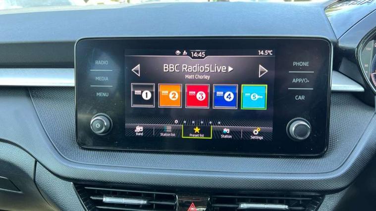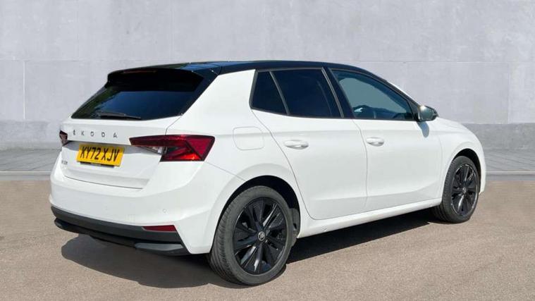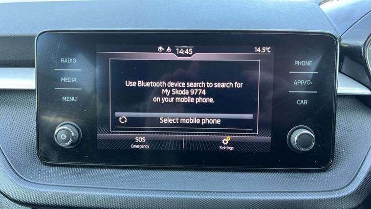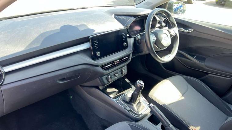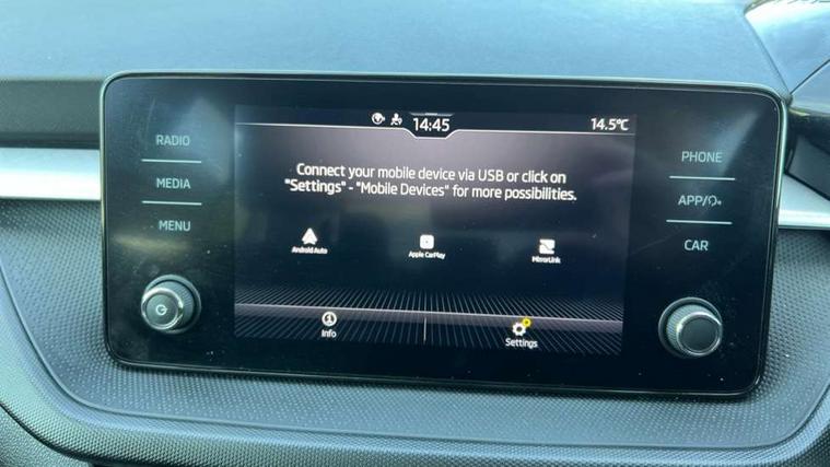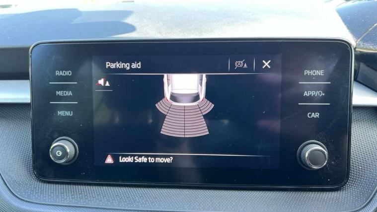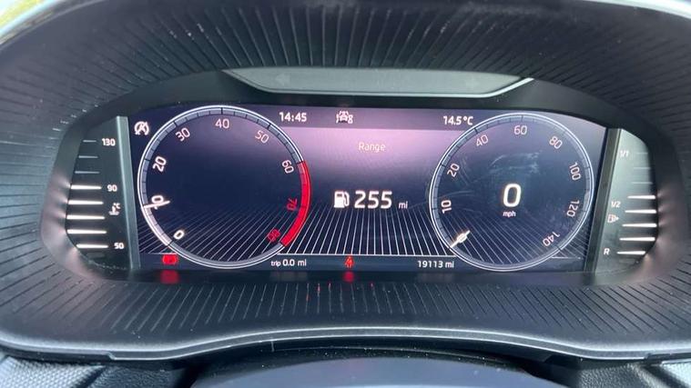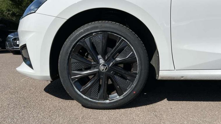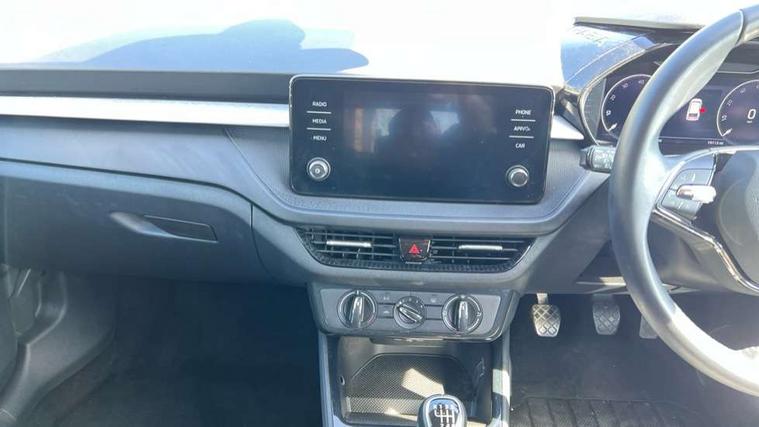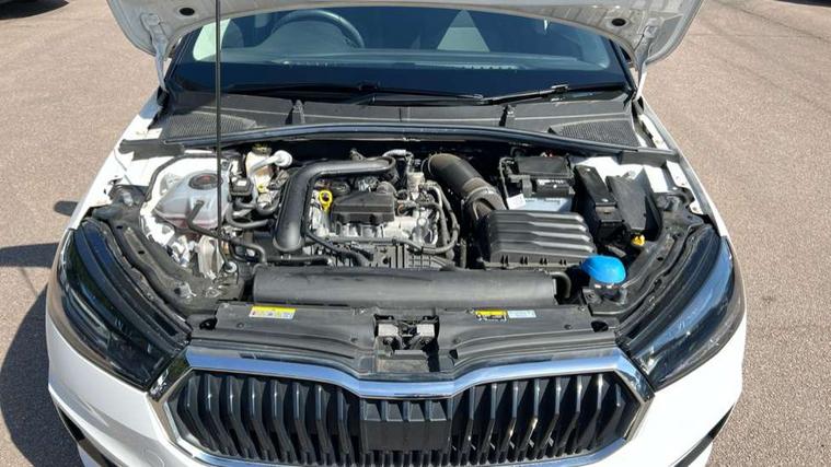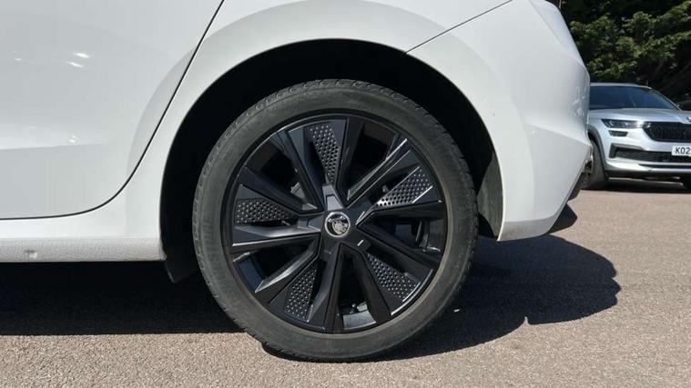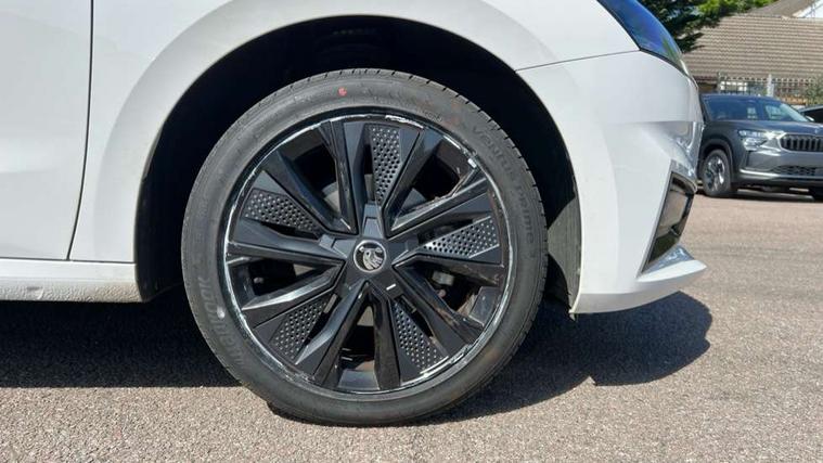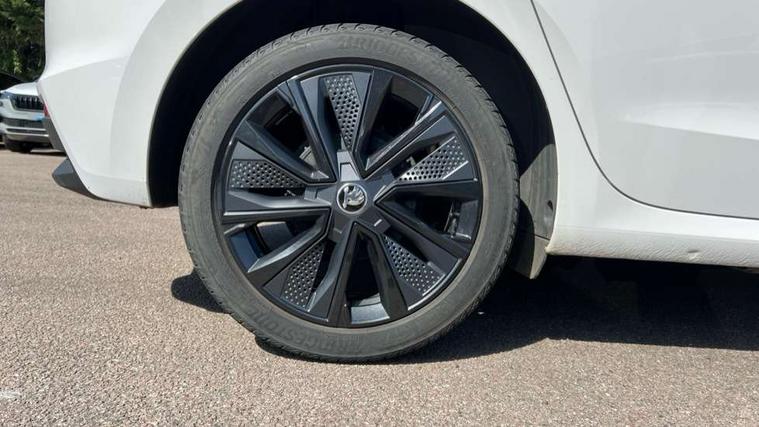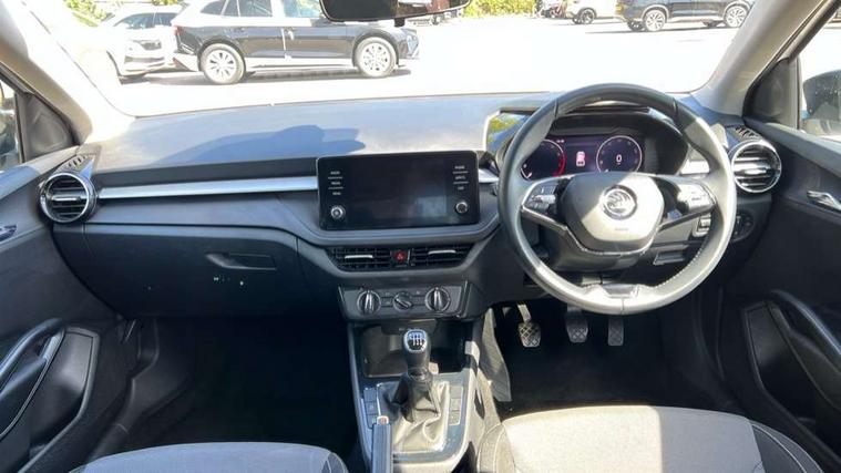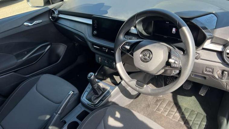 Bluetooth connection, Driver alert system - DAS, Electromechanical power steering, Exterior temperature gauge, Lane assist including road edge detection, Service interval indicator, Virtual cockpit with 10.25" colour display, 2x USB-C in the front (for data transmission and charging), 6 Speakers (4 in front and 2 in rear), Auxiliary socket for external MP3 player, Bolero radio with 8" colour display, DAB digital radio reception, Basic rear lights, Body coloured bumpers, Dimming rear view mirror with black frame, Door mirror integrated indicators, Electrically adjustable and heated door mirrors, Electrically adjustable front windows with function auto up/down, Front window wiper intermittent control, Headlight range control - Automatic, Ice scraper in fuel cap, LED daytime running lights with coming and leaving home feature, Mechanical adjustable rear windows, Privacy glass, Rear LED fog light, Rear side wing doors, Rear window wiper with washing nozzles, Roof mounted spoiler, SKODA tailgate lettering in chrome, Third brake light, 3 rear headrests, Backrest split and folding, Central console with fixed cup holder and storage box, Chrome handbrake release button, Fabric upholstery, Gearshift knob/handle in leather, Grain satin black interior door handles, Hand brake lever handle in leather, Height adjustable front headrests, Height adjustable steering wheel, ISOFIX and TopTether anchorage points to the outer rear seats, ISOFIX and TopTether on the front passenger seat, Luggage compartment lighting, Pollen filter, Rear seat bench unsplit, Single front passenger seat, Storm grey headlining, Sun visors with mirror and airbag label on passenger side, Ticket holder, Umbrella in drivers door, 3-point height adjustable front seats belts with pretensioner and force limiter, Automatic warning lights in case of crash, Driver and passengers airbag with switch off function, e-Call+, ESC including ABS, MSR, ASR, EDS, HBA and XDS, Front and rear seat belt warning, FRONT ASSIST (AEB City and AEB Inter Urban), Front side airbags, Head airbags, One tone horn, Pedestrian protection, Three rear 3-points safety seat belts with pretensioner and force limiter including stop function for outer rear seat belts, Tyre pressure monitoring system, Anti-theft alarm system including immobiliser, interior monitoring, backup horn, and towing protection, Anodized cross line upper decorative trim, Colour Edition air vents, Grain satin black central console cover, Grain satin black lower decorative trim, Satin black door and side trim panel in front, Anti-theft wheel bolts protection, Super-low rolling resistance tyres,