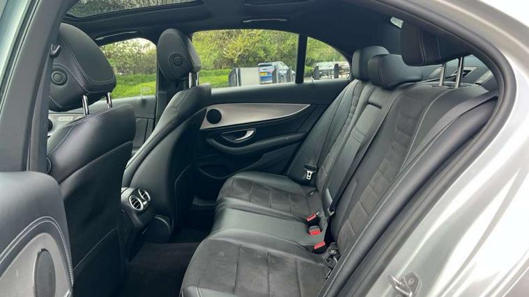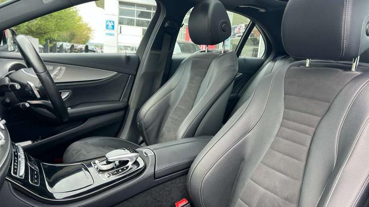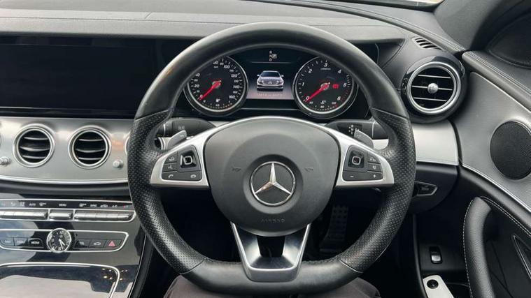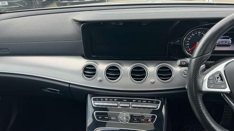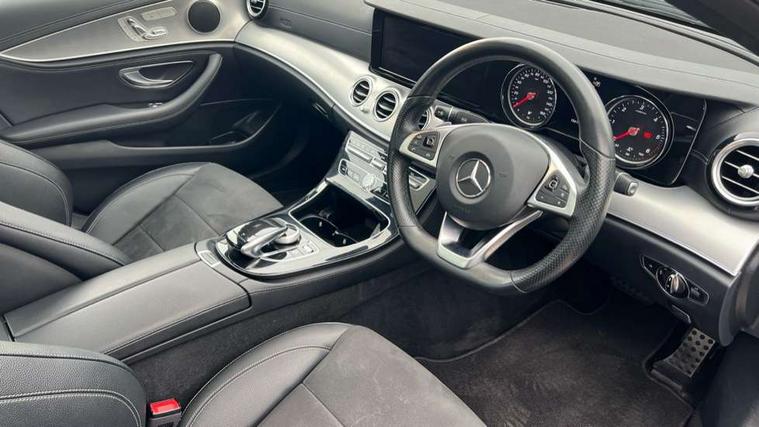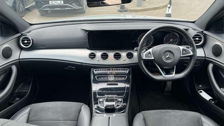 Active park assist with parktronic system, Analogue clock, Attention assist, Bluetooth interface for hands free telephone, Boot release from drivers seat, Brake wear warning light, DYNAMIC SELECT with a choice of driving modes (ECO, Comfort, Sport, Sport+ and Individual), External temperature gauge, Instrument cluster, Mercedes connect me, Multi function trip computer, Park assist pilot with front and rear park assist, Remote boot release, Service indicator (ASSYST), Speed sensitive power steering, Touchpad with control wheel, 66 litre fuel tank, Diesel particulate filter, DAB Digital radio, Media interface, Steering wheel mounted audio controls, USB/aux input socket, Adaptive brake lights, Aerial integrated in rear window, AMG bodystyling, AMG front, rear apron and side skirts, Body colour bumpers, Body colour door handles, Body colour door mirrors, Electric front sliding and fixed rear panoramic glass sunroof, Electric front/rear windows with one touch/auto up/down, Electrically adjustable and heated door mirrors, LED daytime running lights, LED Headlights, LED tail lights, Polished aluminium upper window surround, Polished aluminium waistline, Privacy glass (to rear of B post), Radiator grille with integral star and 2 louvres in matt iridium silver with chrome trim, Rain sensor windscreen wipers, Roof rails, Twin exhaust pipes, 3 spoke AMG steering wheel in Nappa leather, Adjustable front head restraints, Adjustable rear head restraints, Ambient lighting, AMG floormats, Artico man-made leather upper dash trim, Auto Mercedes-Benz child seat recognition sensor, Bag hook in luggage compartment, Black roof lining, Chrome door pins, Cupholders in centre console, Front and rear door pockets, Front centre armrest with storage compartment, Front door sills with Mercedes Benz lettering, Front seat back map pockets, Heated front seats, Height/reach adjust steering wheel, Interior rear light/integral reading lights, Isofix rear child seat fastenings, Lockable/illuminated air conditioned glovebox, Multi function steering wheel, Sports pedals with stainless steel surfaces and rubber studs, Steering wheel gearshift paddles, Storage compartment with 12V socket in centre console, Storage net in luggage compartment, Sunglasses holder, Sunvisors with illuminated vanity mirrors, Interior lighting pack - E Class, Keyless Go comfort pack - E Class, Memory pack - E Class, Mirror pack - E Class, 3x3 point rear seatbelts, ABS, Active bonnet, Active brake assist, Adaptive brake system, Black seat belts, Childproof rear door locks, Crash sensor, Driver and passenger side/thorax airbags, Driver/front passenger airbag, Drivers knee airbag, Electronic parking brake, ESP with ASR, Front brake callipers with Mercedes Benz lettering, Hill hold assist, Hill start assist, Pre-Safe anticipatory safety system, Seat occupancy sensor, Seatbelt warning, Tyre pressure monitoring system, Warning triangle and first aid kit, Window airbags, Alarm system/interior protection/immobiliser, Automatic door locking, Chrome surround in electric key, Remote central locking, Contrast stitching, Open pore black ash wood centre console, Run flat tyres,