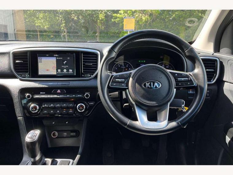 3.5" supervision cluster display, 7" touchscreen satellite navigation with European mapping and traffic messaging channel, Android auto with voice control, Apple car play with voice control, Bluetooth connectivity with voice control, Cruise control + speed limiter, Driver attention warning, Emergency stop signalling system, Kia connected services featuring TomTom live, Lane keep assist, Rear parking sensor, Reversing camera, Speed limit information, Speed sensitive power steering, Trip computer, Windscreen washer level indicator, Intelligent Stop and Go, 6 speaker audio system, Bluetooth audio streaming, DAB Radio with MP3, Rear USB port, Steering wheel mounted audio controls, USB/iPod/auxiliary input connections, All round electric windows with drivers auto up/down function, Auto dimming rear view mirror, Automatic defog system, Automatic headlights, Automatic lighting control, Bi-Function halogen headlights, Black side sill and wheel arch body mouldings, Body colour door handles with chrome inserts, Body colour door mirrors, Chrome front bumper insert, Chrome grille surround, Chrome window surround, Electrically adjustable/heated/folding door mirrors with LED indicators, Headlamp levelling, High beam assist, High gloss black diamond mesh radiator grille, LED daytime running lights, Privacy glass (rear side windows and rear screen), Projection front fog lights, Rain sensing front wipers, Rear spoiler, Rear wiper, Roof rails, Shark fin antenna, Speed sensitive front wipers, Tinted glass, Trailer stability assist, Welcome and follow-me home light functionality, Wide view drivers door mirror, 12V power in front and rear centre console, 3 x passenger assist grips, 60/40 split folding rear seat, Air filter, All-round height adjustable headrests, Centre cabin light, Centre console storage box, Door armrest in leather, Driver and front passenger side sunvisors with illuminated vanity mirrors, Driver's seat manual height adjust, Drivers seat power lumbar support, Dual zone automatic air conditioning, Front and rear door storage, Front cabin LED map light with sunglasses case, Front door courtesy reflectors, Front seat and rear pockets, Front/rear centre armrests, Gear shift indicator, Glovebox illumination, Heated front and outer rear seats, Ignition key lock illumination, Interior door lock/unlock function, ISOFIX Child seat top tethers and anchor fixings, Leather steering wheel, Leather trimmed gearshift, Light grey headlining, Luggage area light, Luggage area load cover, Luggage net with hooks, Premium cloth upholstery, Rear centre armrest with cupholder, Rear coat hooks, Satin chrome interior door handles, Tilt/telescopic adjustable steering wheel, Ventilation ducts to rear compartment, Active front headrests, All round 3-point seatbelts, Anti-lock braking system with electronic brakeforce distribution, Dual front side airbags, Electronic stability control with downhill brake control, ESP + traction control, Front passenger airbag cut-off switch, Front seatbelt pretensioners + load limiters, Height adjustable front seatbelts, Hill start assist control (HAC), Impact sensing auto door unlocking, Rear door child safety locks, Twin curtain airbags with roll over sensor, Twin front airbags, Tyre pressure monitoring system, Advanced anti-theft system including immobiliser and alarm, Door deadlocks, Locking wheel nuts, Remote central door locking with fold away key, Speed sensitive auto door locking, Visible vehicle identification number, Metallic finish centre fascia, 17" Alloy wheels, Tyre mobility kit,