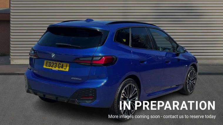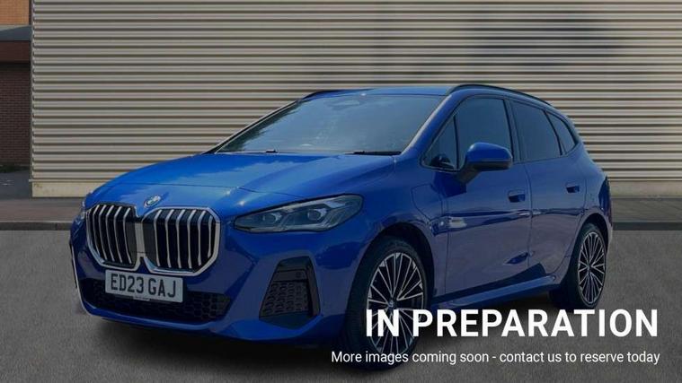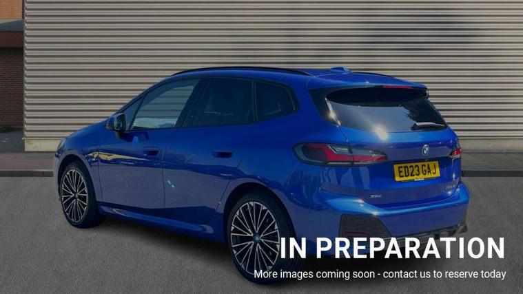 Active Guard incl speed limiting and lane departure functions with auto steering, and front collision warning with brake intervention, Automatic powered tailgate, Automatic start/stop function, BMW Iconic sounds electric, BMW Online services, BMW Teleservices, Brake pad wear indicator in front and rear, Condition based service, Drive off assistant, Flat air vents on instrument panel in high gloss black, adjustable slats with elements in pearl chrome, iDrive controller, Instrument cluster with speedometer with miles per hour read out, tachometer and fuel gauge, Language version English, On board computer - average speed+fuel consumption, service interval, clock/date, odometer/trip meter, outside temperature display and ice warning, Parking assistant with active park distance control, reversing assistant, lateral parking aid and rear view camera, Servotronic variable electric power steering (EPS), Smartphone integration, 45 Litre fuel tank, Drive performance control with ECO PRO comfort + sport mode, eDrive exterior sound, Flexible Fast Charger (Mode 2), Gear selector switch with toggle operation, M Adaptive suspension, Mode 3 charging cable, Petrol Particulate Filter, Steptronic transmission with double clutch and gear shift paddles, 2x USB Type C ports in front centre console for charging and data transfer, 2x USB Type C ports in rear centre console for charging, DAB Digital radio, Welcome sound upon opening of the front driver or passenger door, Air inlet middle part on front apron in lines specific design with trim strip in satinised aluminium, Automatic headlights, Black rear bumper trim strip, BMW emblem, engine compartment lid and tailgate, Body colour roof mouldings, Body coloured door mirror caps, Contoured rear roof spoiler in vehicle colour with side aeroblades in black high-gloss, Driver side exterior mirror lighting with BMW logo projection, Dynamic brake lights, Electric adjustable heated door mirrors, Electric windows - front and rear, with open/close fingertip control, anti-trap facility and comfort closing, Folding door handles integrated flush with surface, Front and rear windscreen wipers with heated front washer nozzles, Front bumper cover with independent design in body colour with inserts in black high gloss, Front bumper design elements in satinised aluminium, Front door exit lights, Front door sill finishers aluminium inserts with M inscription, Front entry sills with aluminium inserts + BMW inscription, Front oramental grille with radiator grille bars in satinised aluminium, Heated rear window, Hidden exhaust pipe, High gloss shadow line, High gloss shadowline roof rails, Key with M identification, LED Daytime running lights and parking lights with turn indicators, LED number plate light, LED third brake light in rear spoiler, M identification on sides, Manual headlight range control, Model inscription on right tailgate, Rain sensor, Rear bumper cover with independent design in body colour with inserts in black high gloss, Rear side wing doors, Shark fin antenna, Side sill covers with independent design in Body colour, Trailer stabilisation logic, Trims on front and rear bumper covers colour-coordinated with side window graphic, Visible VIN plate, Welcome lighting, Window washer nozzle for rear view camera, 12V socket in right side trim panel, 2 bag hooks in luggage compartment, 2 front reading lights, 2 open cup holders in front centre console, 2x 12V power socket in luggage compartment and front centre console, 3 seat bench in 2nd row, 40:20:40 split folding rear seat backrests, Ambient lighting front and rear, Automatic two zone climate control air conditioning, Bottle trays in all doors, Child seat ISOFIX attachment for two outer rear seats and front passenger seat with anchorage points, Driver and front passenger sports seats, Four grab handles integrated in roof lining, Front and rear door pockets, Front and rear footwell lighting, Front and rear side armrest integrated into door trim, Front centre console storage compartment, Front head restraints, Glovebox with light, Heated front seats, Height adjustable 3 rear head restraints, Interior door handle recess light on all doors, Luggage compartment lighting, M Anthracite headlining, M specific floor mats, M sport leather steering wheel, Map pockets, Mechanical rear seats with fore/aft adjustment, Multi-function controls for steering wheel, One piece parcel shelf opens together with tailgate and removable, Rear cloth hooks, Single front passenger seat, Stainless steel pedals, Steering wheel column manual adjustment, Storage compartment lighting in centre console and storage tray in centre stack, Storage compartment net in left side trim panel, Storage compartment with folding cover under centre console armrest cushion, Sunvisors with illuminated vanity mirrors, Three spoke sport leather steering wheel, Connected pack professional - 2 Series Active Tourer, Technology pack - 2 Series Active Tourer - MY22, 3 point seatbelts on all seats, front pyrotechnic belt tensioners, stopper and belt force limiters, rear coded belt buckles, Acoustic protection for pedestrians, Airbag - Front driver and passenger, front and rear head, front side, curtain head protection, manual deactivation of front passenger airbag possible, Anti lock braking system (ABS) with brake assist, Automatic hold function, BMW emergency call, Brake drying, Braking readiness, Child proof locking system in rear door, Cornering brake control, Crash Sensor - activates hazard/interior lighting + unlocks doors, DSC - Dynamic Stability Control, Dynamic brake control, Dynamic Traction Control - DTC, Electromechanical parking brake, Energy recovery system, Front disc brakes, Integrated braking system, PC iBrake PostCrash approach control warning with light braking function, Rear disc brakes, Tyre pressure monitoring system, Warning triangle and first aid kit, Anti theft alarm system, Closing system with central locking, Engine immobiliser, Locking wheel bolts