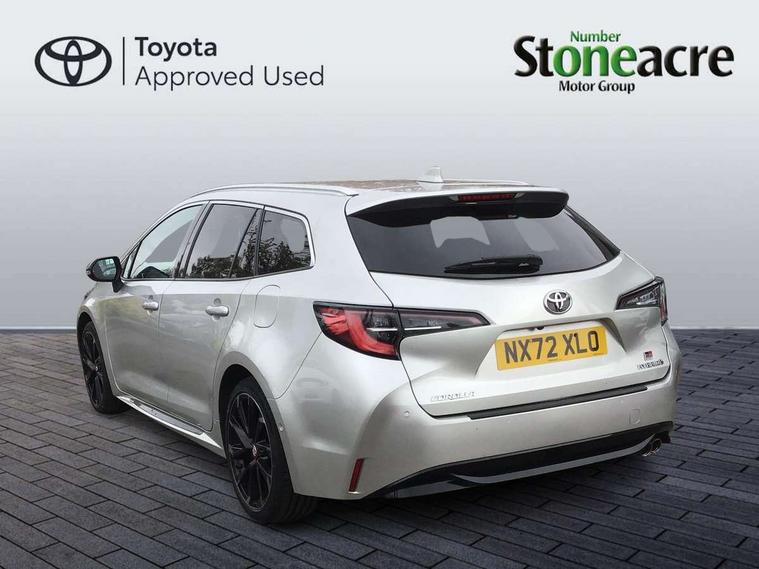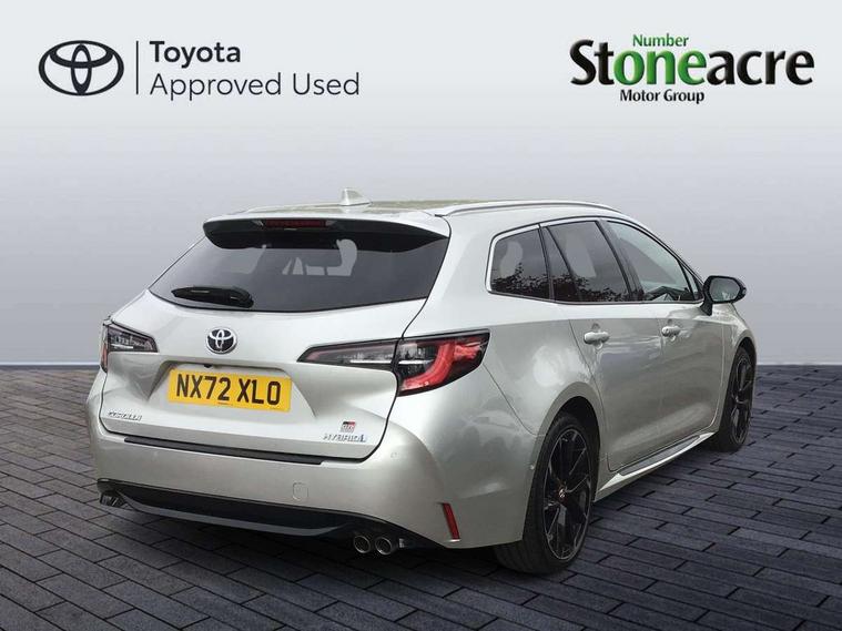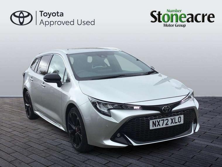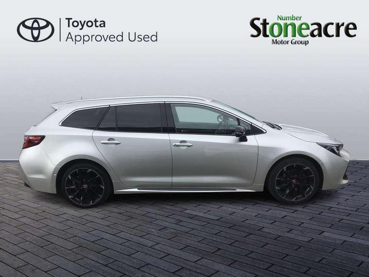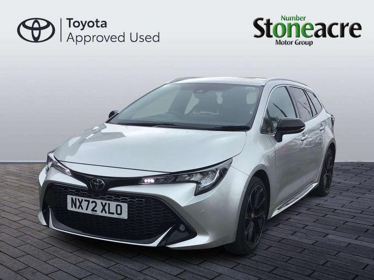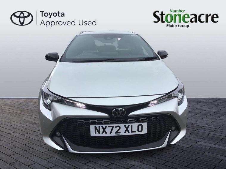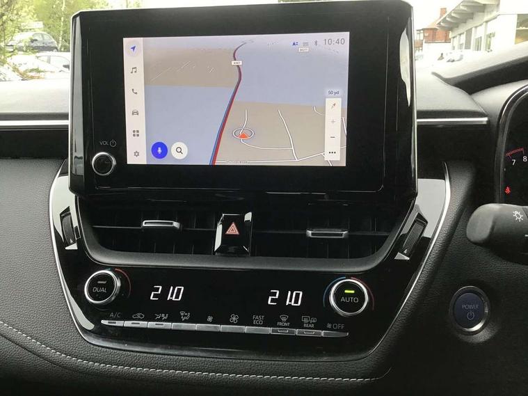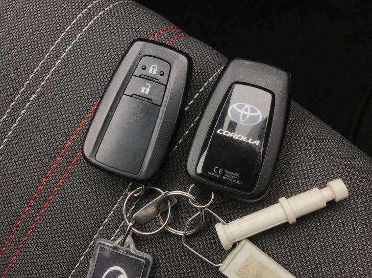 Satin chrome dash trim, Soft touch texture on uppder dashboard, Stitching on lower dashboard, Stitching on upper dashboard, Parking pack - Corolla, Toyota safety sense 2 pack - Corolla, Tyre repair kit, Unique wheel finish with red wheel cap, Acoustic vehicle alert system (AVAS), Alarm with motion sensor and immobilizer, Remote central locking + deadlocks, Smart entry, 6 speakers, 8" Touchscreen with MM19 Multimedia system and voice recognition, AM/FM radio, DAB Digital radio, Toyota touch 2 with go navigation system, USB and Aux in connectors + 12V front outlet, USB charging port in centre storage box, 3x3 point rear seatbelts, Adjustable driver and front passenger seat belt extender to top anchor point, Anti lock braking system + Electronic brake force distribution, Brake assist function, Child locks on rear doors, Downhill Assist Control (DAC), Electronic parking brake, Emergency brake light signal (EBS), Front passenger airbag on/off switch, Front seatbelt reminder, HAC-Hill-start Assist Control, Rear seat belt reminder, Seatbelt pretensioners and force limiters, Supplemental restraint system (SRS) 7 airbags - dual driver, dual side curtain, side impact and driver knee airbags, Traction control, Tyre pressure warning system, Anti-jam protection on power windows, Auto dimming inside rear view mirror, Auto up and down function on all power windows, Automatic folding mirrors, Automatic headlights with high beam assist, Black toyota logo in front, Body colour rear spoiler, Body coloured bumpers, Body coloured door mirrors, Body coloured outside door handles, Dark chrome aluminium roof rails, Follow me home headlights, GR sport scuff plates, LED daytime running lights, LED front fog lights, LED Headlights, LED High mounted stop light, LED rear combi lights with LED lightguide, Noise reduction layer on front windows, Piano black surround on lower front grille with dark chrome mesh effect, Power adjustable heated door mirrors, Power front windows, Power rear windows, Privacy glass, Rain sensing wipers, Rear side wing doors, Rear window defogger, Rear window wiper, Reverse tilting door mirrors, Shark fin antenna, Time adjustment on intermittent wiper, Turning signal integrated indicators in door mirrors, Unique lower skirt, Unique side rocker with black insert, UV-filter on driver and passenger windows, 12v power outlet - luggage side, 3 rear headrests, 3 seat bench in 2nd row, 3 spoke leather steering wheel + gear knob, 60/40 split folding rear seat, Adjustable speed limiter switch on steering wheel, Alcantara/partial leather upholstery, Audio, multimedia and telephone switches on steering wheel, Boot light, Boot underfloor storage, Clean air filter, Driver and front passenger personal light, Driver and passenger assist grip, Driver and passenger seatback pockets, Driver and passenger sun visor with mirror and light, Dual sided deck board in boot, Dual zone automatic air conditioning with ECO mode switch, Fabric armrests, Front and rear cup and bottle holders, Front and rear door pockets, Front head restraints, Front passenger seat, Heated driver and front passenger seats, Illuminated entry system in room lamp, ISOFIX seat fixing (2 fixings on rear outer seats), Leather gear shift with satin chrome on gear shift console, Luggage utility boot rails, Manual height adjustable for driver and front passenger seat, Paddle shifts, Pollen filter, Power adjustable lumbar support on driver seat, Power window switches with satin chrome inserts, Rear armrest with 2 cupholders, Rear passenger air vents, Rear passenger coat hooks (2), Rear passenger personal lights, Retractable tonneau cover with luggage partition net, Satin chrome inside door handles, Shopping bag hooks in luggage compartment, Sliding armrest on centre console box, Slow opening glovebox with lights, Sports seats, Tilt/telescopic steering column, Tonneau cover with under floor storage, Voice recognition switch on steering wheel, Whiplash Injury Lessening (WIL) feature (active headrest) for seats, 7" Multi information display screen, Bluetooth telephone connectivity, Connected car functionality upgrade, tracker, remote status and e-care, Dynamic radar cruise control (with RSA) including switch on steering wheel, E-call, Electrically assisted power steering, EV drive indicator, Head up Display, Intelligent park assist, Lane Departure Alert (LDA) switch on steering wheel, Memory on adjustable speed limiter, Push button start, Reversing camera, Smartphone integration with Apple CarPlay and Android auto, Gasoline particulate filter, Vehicle Stability Control (VSC),