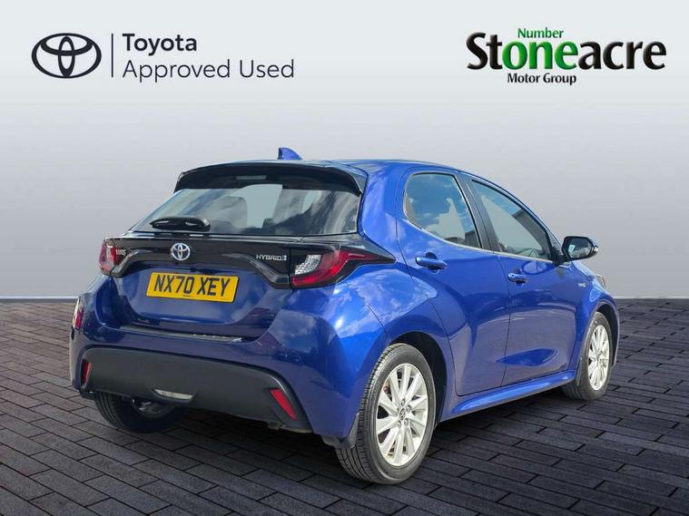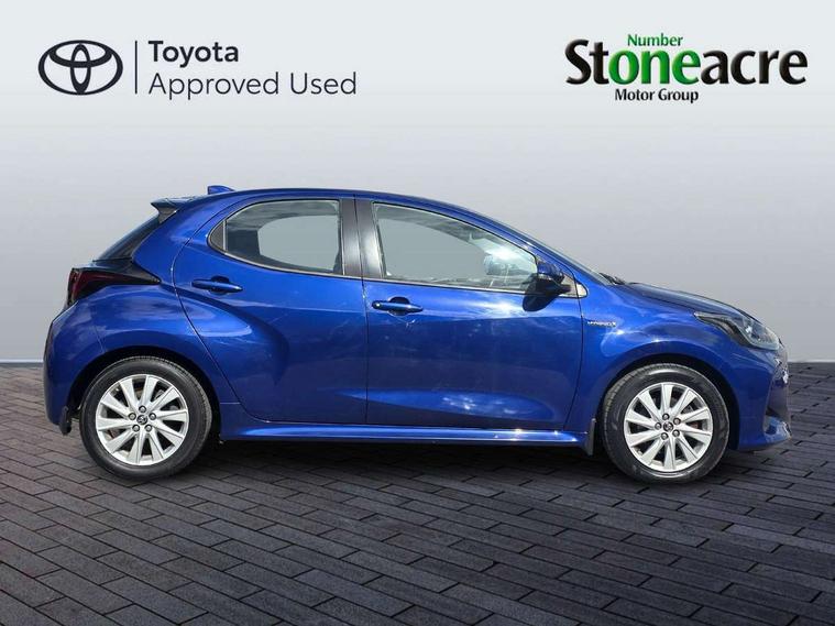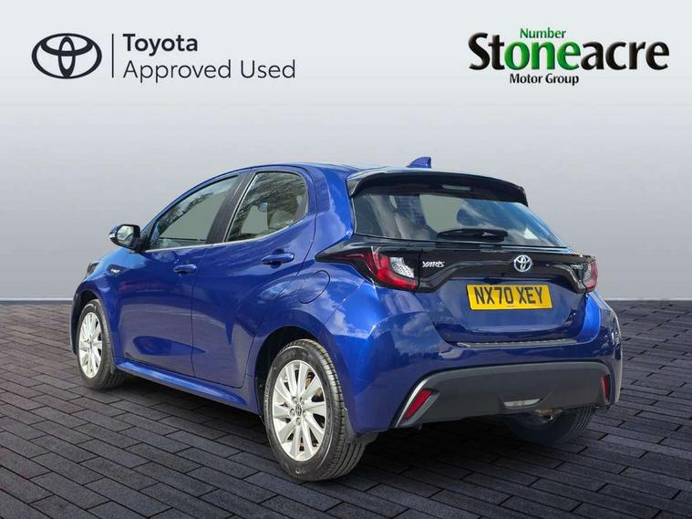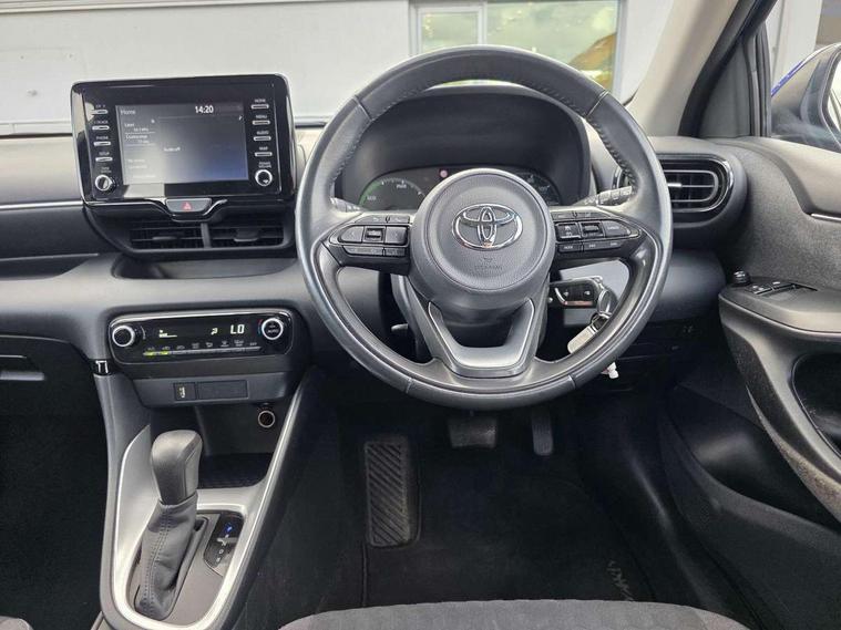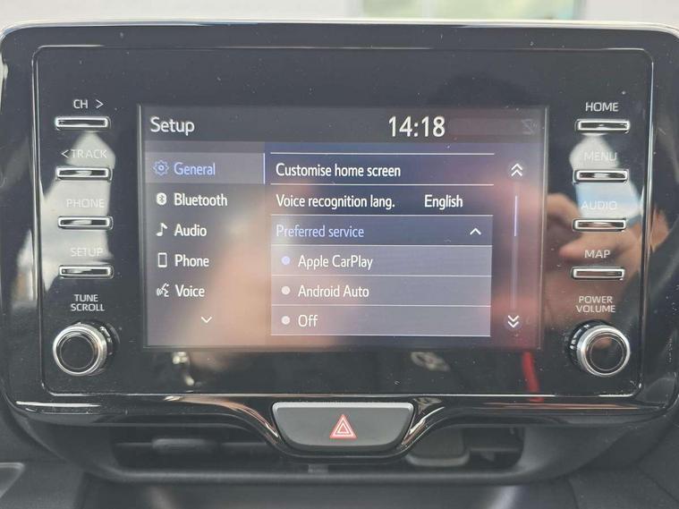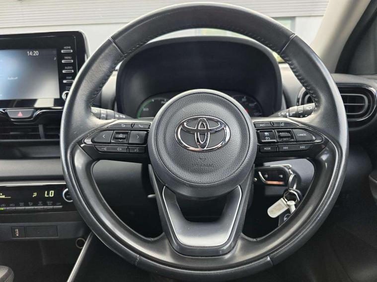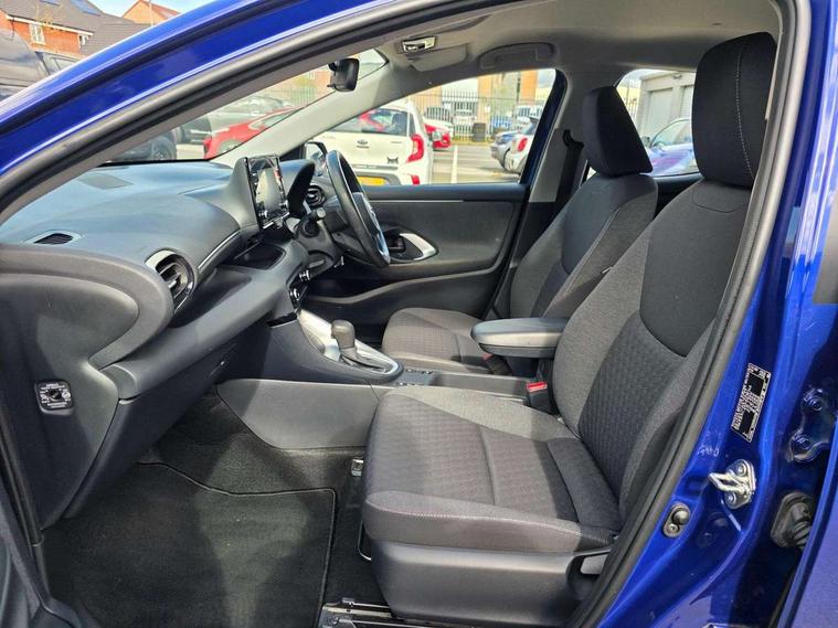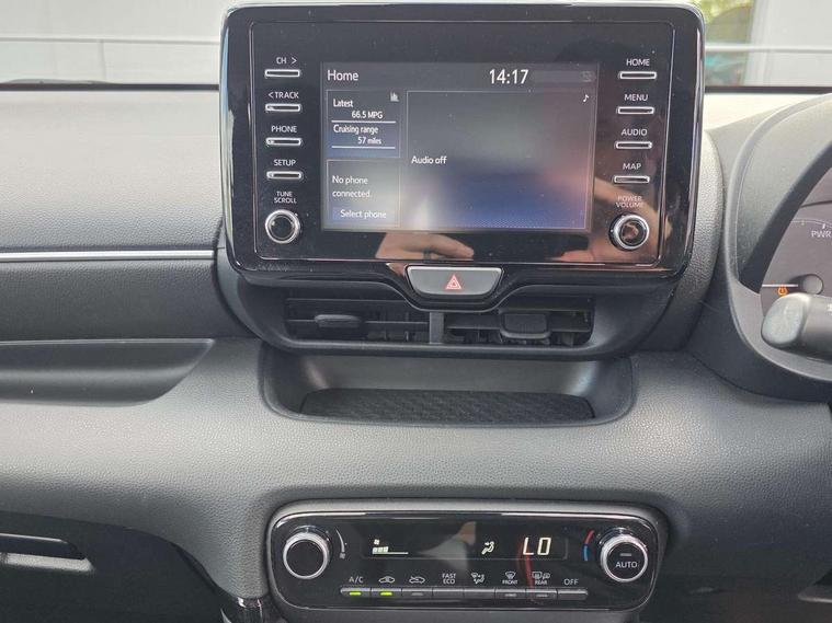 4.2" coloured LED TFT multi information display with analogue speedometer, Adaptive cruise control, Adjustable speed limit with speed warning, Bluetooth connectivity, E-call, Electric power steering, Hybrid energy display, Multi information display switches on steering wheel, Reversing camera, Smartphone integration with Apple CarPlay and Android auto, Vehicle Stability Control (VSC), 4 speakers, 7" Multimedia display touch screen, Toyota Touch 2 with DAB, USB connection, Acoustic windscreen glass, Auto windscreen wipers, Automatic headlights, Body coloured door mirrors, Electric adjustable heated door mirrors, Follow me home headlights, Front auto power windows with anti jam protection, Halogen projector headlights, LED daytime running lights, LED High mounted stop lamp, Rear spoiler, Shark fin antenna, Turning signal integrated indicators in door mirrors, 3 adjustable rear headrests, 3 spoke leather steering wheel, 60/40 split folding rear seat, Active headrests, Adjustable boot height, Auto air conditioning, Coat hooks in rear grab handles, Cup holders (2 front & door), Data Communication Module (DCM) connected services, Fabric upholstery, Front armrest, Glovebox, Height adjustable driver's seat, Isofix seat fixing, Leather gearshift, Pollen filter, Shopping bag hooks, Tilt/telescopic steering column, 3 point seatbelts on all rear seats, ABS+EBD+Brake assist, Electronic parking brake, Emergency brake light system (EBS), Front passenger airbag on/off switch, Front seatbelt reminder, Hill start assist control (HAC), Rear child proof door locks, Rear seat belt reminder, Supplemental Restraint System (SRS) 8 airbags: Driver & passenger's airbags, dual side curtain airbags, side impact airbags, front centre airbag, Toyota Safety Sense 2, Precollison + Night time Pedestrian & Cyclist Detection, Lane Trace Assist, Auto High Beam, Intelligent ACC & Road Sign Assist, Tyre pressure warning system, Alarm/immobiliser, Remote powered central double locking doors, Soft touch instrument panel, 16" Silver alloy wheels, Space saver spare wheel,