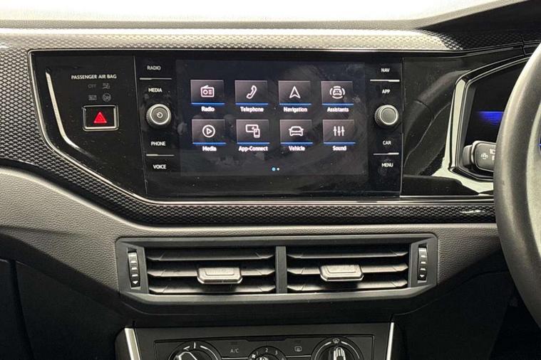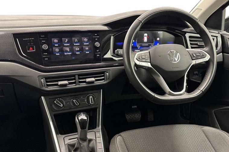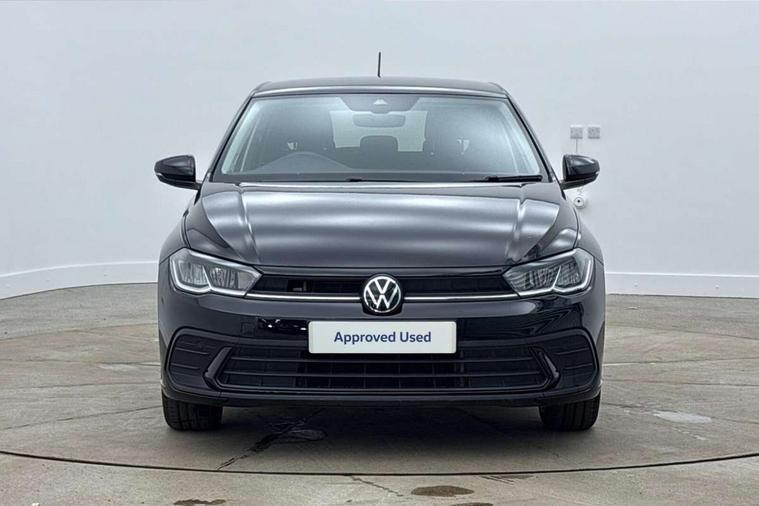 Advanced driver attention and drowsiness monitor, Bluetooth mobile phone interface, Dynamic road sign display, Emergency call service, Multifunction front facing camera for distance control, Park distance control, Power assisted speed sensitive steering, Predictive adaptive cruise control without follow-to-stop and speed limiter, Preparation for navigation system with media and internet package, Preparation for We connect and We connect plus, Rear view camera, Speedo and rev counter, electronic odometer, trip, service interval display and exterior temperature gauge, Standard rear axle, Travel Assist - Lane keeping system and traffic jam assist, Travel assist including emergency assist, Trip computer, Warning signal and warning light for front and rear seatbelts not fastened, Washer fluid level indicator, Wireless app connect, Front wheel drive, Rear shock absorpion, Start-stop system with battery regeneration (recuperation - energy recovery during braking), DAB Digital radio, Diversity antenna for FM reception, Front and rear 6 speakers, Automatic dimming interior rear view mirror, Automatic headlight control with LED separate daytime running lights with coming/leaving home function, Body colour bumpers with chrome inserts, Body colour door handles, Body colour door mirrors, Electric front windows, Engine badge deletion, Headlight range adjustment, Heat insulating and laminated safety glass windshield, LED Headlights, LED rear combination lamps, Power folding adjustable/heated exterior mirrors and front passenger exterior mirror lowering function, Rain sensor, Rear electric windows, Rear fog light, Rear side wing doors, Rear tinted glass from B-pillar backwards approx 65% tinted, Rear windscreen washer and wiper with interval delay, Third brake light, 12V power socket in centre console, 2 front and 2 rear reading lights with switch off delay and dimmer, 2 USB-C ports in the front, 2 USB-C charging sockets on the center console in the rear, 3 rear head restraints, 60/40 split folding rear seat and rear seat bench not split, Ceramique roof lining, Chrome plated radiator grille inserts, air vent surrounds and light switch surrounds, Door and side trim panel, Driver and front passenger seat height adjustment, Driver/passenger sunvisors with illuminated vanity mirrors, Front centre armrest, Front seat backrest storage pockets, Front standard seats, Handbrake lever handle in leather, Hartley/Thomas cloth upholstery, Headliner in recycled material, Isofix child seat preparation easy-fit (for two outer rear seats, and front passenger seat) compatible with I-size, Leather trimmed gear knob, Luggage compartment cover, Luggage compartment lighting, Removable luggage compartment floor, Single front passenger seat, Standard climatic zones, Standard pedal cluster, Three spoke leather wrapped multifunction steering wheel with shifting paddles, Light and vision pack - Polo, 3 point height adj front seatbelts + pretensioners, 3 point seat belt for centre rear seat, 3 point seatbelts, outer rear with ECE lable, ABS, Driver and front passenger airbag with front passenger airbag deactivation, Drivers and front passengers safety optimised head restraints, ESC (Electronic stability control) + EDL (Electronic Differntial lock) and ASR (Traction control), Extended and predictive pedestrian/ cyclist protection, Front assist with autonomous emergency braking (for Adaptive Cruise Control ACC up to 130 mph), Front curtain and side airbags with center airbag, Front disc brakes, Hill hold control, Manual child lock in rear doors, Rear drum brakes, Single tone horn, Tyre pressure loss indicator, Alarm with interior protection, Anti-theft alarm system with interior monitoring, backup horn, and towing protection, Anti-theft wheel bolts, Electronic engine immobiliser, Lava stone black gloss/matt decorative inserts in dash and front door panels, 16" Torsby alloy wheels, Low rolling resistance tyres,