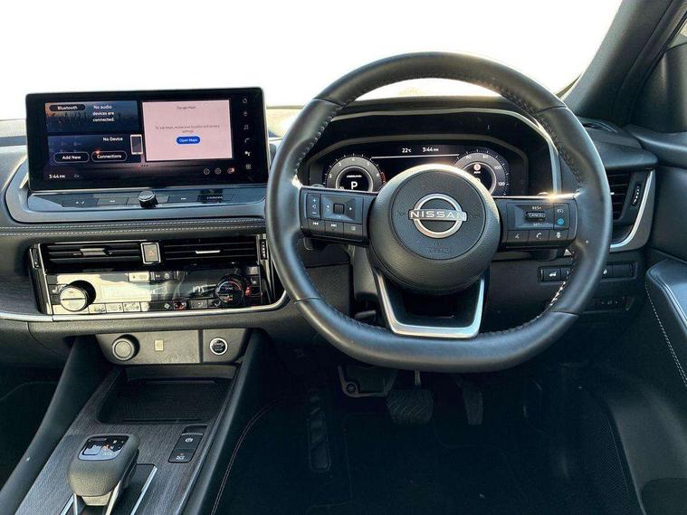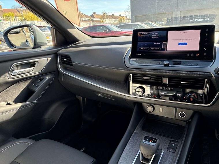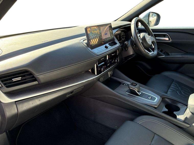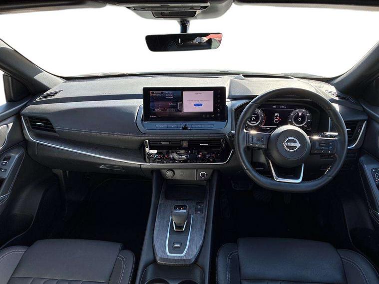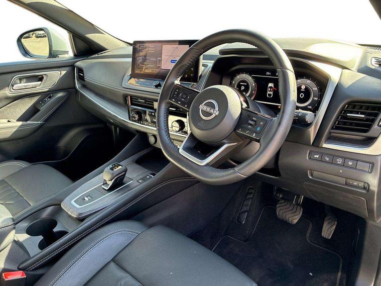360 degree Intelligent around view monitor with moving object detection, Advanced windscreen head up display, Blind spot intervention, Blind spot warning, Drive assist custom mode, Drive modes (sport, normal, eco), Driver drowsiness and attention warning, Electric speed sensitive power steering, Emergency and breakdown call, Emergency lane keep assist, Emergency Stop Signal (ESS), Engine start/stop button, Event data recorder, Front and rear parking sensors, Full Digital 12.3" TFT Digital Combimeter, Google virtual personal assistance, Hands free power tailgate, Idle stop/start system, In-car WIFI hotspot, Intelligent Cruise control (ICC), Intelligent forward collision warning, Intelligent speed assist, Lane departure warning system, Nissan connect 12.3 inch touchscreen infotainment system, Nissan connect navigation with google maps, Nissan connect services 2.0 (Google Automotive System), Outside temperature sensor, Rear cross traffic alert, Reversing detection, Traffic jam pilot, Wireless Apple CarPlay/Android Auto, Wireless charging pad, Limited slip differential, 2 front USB-C ports, 2 rear USB-C ports, 6 speakers, AM/FM audio system with DAB, Bluetooth audio streaming, Auto dimming frameless rear view mirror, Auto rear wiper when reversing, Body colour mirror caps, Body coloured door handles, Bodyside mouldings, Chrome side window finisher, Electric auto folding door mirrors, Electrically adjustable and heated door mirrors with LED turn indicator, Follow me home headlights, High beam assist, Intelligent auto headlights, LED 3rd brake light, LED daytime running lights, LED headlights with adaptive driving beam, LED rear lights, LED sequential turn lights, One touch front and rear electric windows with remote opening and closing, One touch passenger window, Partially body coloured bumpers, Rear privacy glass, Rear roof spoiler, Rear side wing doors, Rear styling plate, Reverse tilting door mirrors, Shark fin antenna, Silver roof rails, Splash free rain sensing wipers, Super RED rear LED lights, Super UV and infrared cut glass, Thermaclear heated windscreen, 3 bench rear seats in 2nd row, 3 rear headrests, 60/40 split folding rear seat bench, Chrome interior door handles, Dark headlining, Driver seat back pocket, Dual zone automatic climate control with pollen filter, Fixed Glass roof with electric sunshade, Front door with bottle holders, Heated front seats, Heated steering wheel, Height adjustable front headrests, Luggage board system, Luggage space lighting, Multifunction steering wheel, Passenger seat back pocket, Quilted/PVC upholstery, Rear door bottle holders, RGB ambient light (Full area coverage), Single front passenger seat, Smooth leather steering wheel, Steering wheel gearshift paddles, Tilt/telescopic adjustable steering wheel, Two rear isofix child seat anchorage points with top tether, 3x3 point rear seatbelt pretensioners + load limiters, Autonomous emergency braking, Child locks on rear doors, Curtain and front side, far side airbags, Driver and passenger airbags, Driver, passenger and 2nd row rear seat belt reminder, Electric handbrake with auto hold function, Front seatbelt pretensioners + load limiters, Height adjustable front seatbelts, Hill start assist, intelligent front emergency braking, Rear automatic braking, Tyre pressure monitoring system, Vehicle dynamic control, Engine immobiliser, Intelligent key with walk away lock and approach unlock functions, Remote central door locking with deadlocking, Thatcham alarm, 19" Diamond cut alloy wheels, Tyre puncture repair kit,