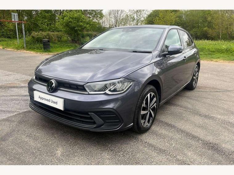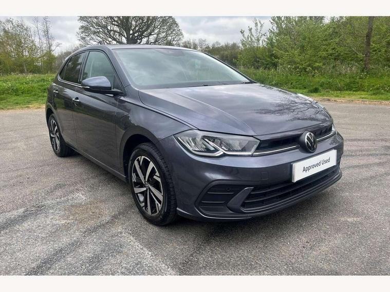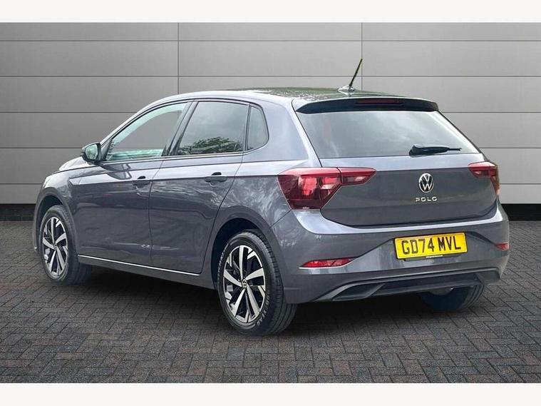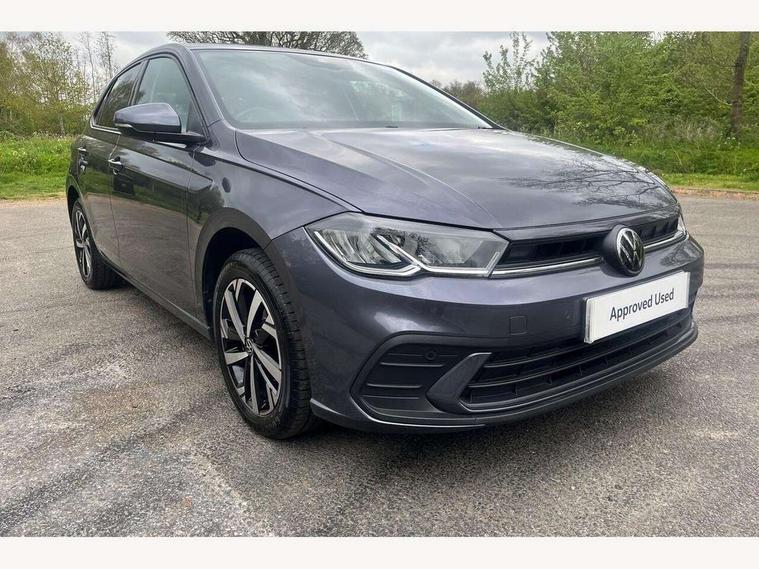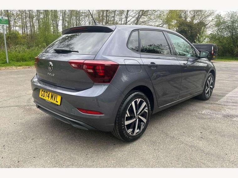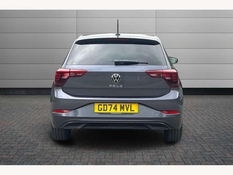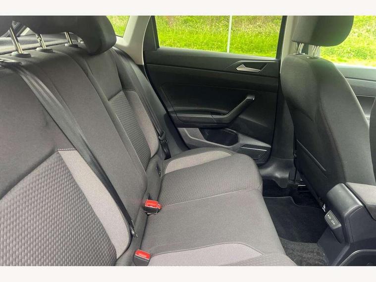 Adaptive cruise control without follow-to-stop and speed limiter, Advanced driver attention and drowsiness monitor, Bluetooth mobile phone interface, Dynamic road sign display, Emergency call service, Multifunction front facing camera for distance control, Park distance control, Power assisted speed sensitive steering, Preparation for navigation system with media and internet package, Preparation for We connect and We connect plus, Rear view camera, Speedo and rev counter, electronic odometer, trip, service interval display and exterior temperature gauge, Standard rear axle, Travel Assist - Lane keeping system and traffic jam assist, Travel assist including emergency assist, Trip computer, Warning signal and warning light for front and rear seatbelts not fastened, Washer fluid level indicator, Wireless app connect, Front wheel drive, Rear shock absorpion, Start-stop system with battery regeneration (recuperation - energy recovery during braking), DAB Digital radio, Diversity antenna for FM reception, Front and rear 6 speakers, Automatic dimming interior rear view mirror, Automatic headlight control with LED separate daytime running lights with coming/leaving home function, Body colour bumpers with chrome inserts, Body colour door handles, Body colour door mirrors, Electric front windows, Engine badge deletion, Headlight range adjustment, Heat insulating and laminated safety glass windshield, LED Headlights, LED rear combination lamps, Power folding adjustable/heated exterior mirrors and front passenger exterior mirror lowering function, Rain sensor, Rear electric windows, Rear fog light, Rear side wing doors, Rear tinted glass from B-pillar backwards approx 65% tinted, Rear windscreen washer and wiper with interval delay, Third brake light, 12V power socket in centre console, 2 front and 2 rear reading lights with switch off delay and dimmer, 2 USB-C ports in the front, 2 USB-C charging sockets on the center console in the rear, 3 rear head restraints, 60/40 split folding rear seat and rear seat bench not split, Ceramique roof lining, Chrome plated radiator grille inserts, air vent surrounds and light switch surrounds, Door and side trim panel, Driver and front passenger seat height adjustment, Driver/passenger sunvisors with illuminated vanity mirrors, Front centre armrest, Front seat backrest storage pockets, Front standard seats, Handbrake lever handle in leather, Hartley/Thomas cloth upholstery, Headliner in recycled material, Isofix child seat preparation easy-fit (for two outer rear seats, and front passenger seat) compatible with I-size, Leather trimmed gear knob, Luggage compartment cover, Luggage compartment lighting, Removable luggage compartment floor, Single front passenger seat, Standard climatic zones, Standard pedal cluster, Three spoke leather wrapped multifunction steering wheel, Light and vision pack - Polo, 3 point height adj front seatbelts + pretensioners, 3 point seat belt for centre rear seat, 3 point seatbelts, outer rear with ECE lable, ABS, Driver and front passenger airbag with front passenger airbag deactivation, Drivers and front passengers safety optimised head restraints, ESC (Electronic stability control) + EDL (Electronic Differntial lock) and ASR (Traction control), Extended and predictive pedestrian/ cyclist protection, Front assist with autonomous emergency braking (for Adaptive Cruise Control ACC up to 130 mph), Front curtain and side airbags with center airbag, Front disc brakes, Hill hold control, Manual child lock in rear doors, Rear drum brakes, Single tone horn, Tyre pressure loss indicator, Alarm with interior protection, Anti-theft alarm system with interior monitoring, backup horn, and towing protection, Anti-theft wheel bolts, Electronic engine immobiliser, Lava stone black gloss/matt decorative inserts in dash and front door panels, 16" Torsby alloy wheels, Low rolling resistance tyres,