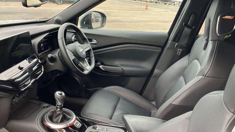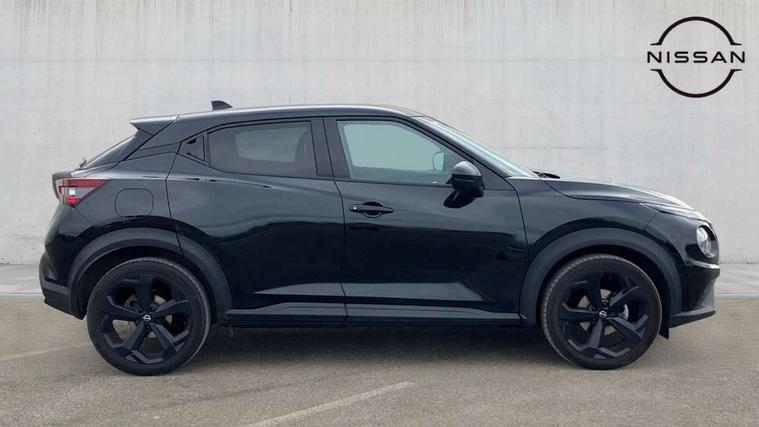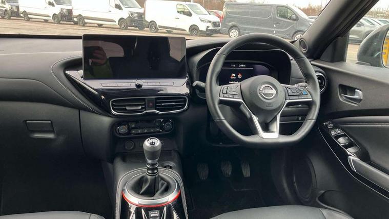12.3" full colour TFT screen combimeter, Drive modes select (Eco, normal and sport), Emergency and breakdown call, Front parking sensor, Idle start/stop system, Intelligent driver alert system, Intelligent lane intervention, Lane departure warning system, Nissan connect 12.3" touch screen entertainment system, Nissan connect nav with TomTom traffic, Nissan connect services, Outside temperature sensor, Power Steering, Rear parking sensor, Stop/start button, Traffic sign recognition, Trip computer, Voice recognition, WiFi connectivity, Wireless Apple CarPlay and Google Android auto, Wireless Smartphone charger, 10 Bose speakers 8 speakers and 2 headrest speakers for driver/passenger seats, 2 X Rear console USB port, Bluetooth system, USB, Aux-in and 12V socket, Bose personal plus audio system, DAB Digital radio, Auto dimming frameless rear view mirror, Automatic hazard signal with emergency stop signal, Body colour door handles, Electrically adjustable door mirrors with integrated indicators, Follow me home headlights, Front and rear electric window with one touch driver window, High beam assist, LED 3rd brake light, LED daytime running lights, LED front fog lights, LED headlamps, LED rear fog lamp, LED rear lamps, One touch passenger window, Rear privacy glass, Rear side wing doors, Rear wiper, Roof spoiler, Shark fin roof antenna in solid Black, Solid black door mirrors, Three blink turn signal, 3 height adjustable rear headrests, 3 seat bench in 2nd row, 60/40 split folding rear seat, Card holder on driver sunvisor, Door ambient lighting, Driver seat back pocket, Driver side rear coat hanger, Driver/passenger sunvisors and vanity mirrors, Front and rear cabin lights, Front armrest, Front door pockets with bottle holders, Front head restraints, Front/rear passenger grab handles, Gear console ambient circle lighting, Height adjustable driver's seat, Internal chrome door handles, Luggage board, Luggage space lighting, Monoform sporty seats, Multifunction steering wheel, Passenger seat back pocket, Rear door bottle holders, Single front passenger seat, Smooth synthetic leather steering wheel, Synthetic leather kneepad, Synthetic leather shift knob, Synthetic leather upholstery, Telescopic steering wheel adjustment, Two cupholders in front centre console, Two rear isofix child seat anchorage points with top tether, Welcome light and console tray ambient lighting, Advanced safety shield pack - Juke Manual, Comfort pack - Juke, Heat pack with height adjustable passenger seats - Juke, ABS with EBD and brake assist, Active ride control, Active Trace Control, Driver and passenger airbags, Driver and passenger side airbags, Electric handbrake with auto hold function, Electronic Stability Programme (ESP), Front and rear curtain airbags, Height adjustable seatbelts, Hill start assist, Intelligent emergency braking with pedestrian and cyclist recognition, Rear door child safety locks, Seatbelt reminder for driver/front passenger and rear seats, Three 3 point rear seatbelts, Traction control, Tyre pressure monitoring system, VDC Dynamic Vehicle Control, Alarm, Immobiliser, Intelligent key and start push button with walk away lock and approach unlock functions, Remote central locking, 19" Alloy wheels, Tyre puncture repair kit,