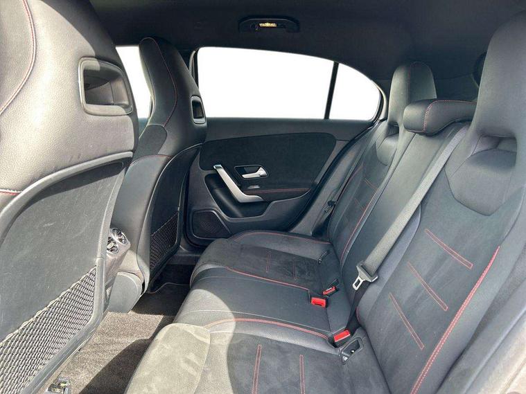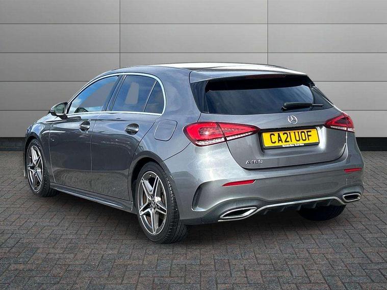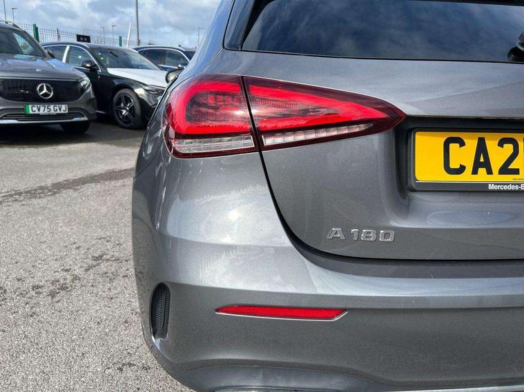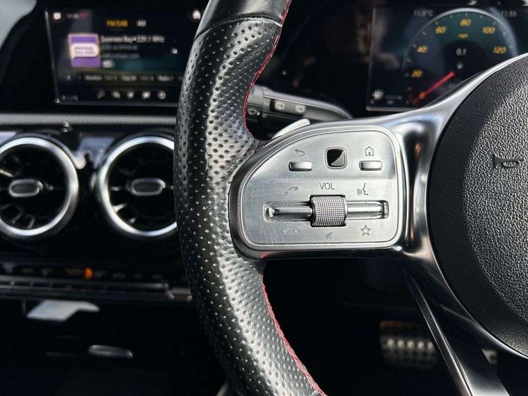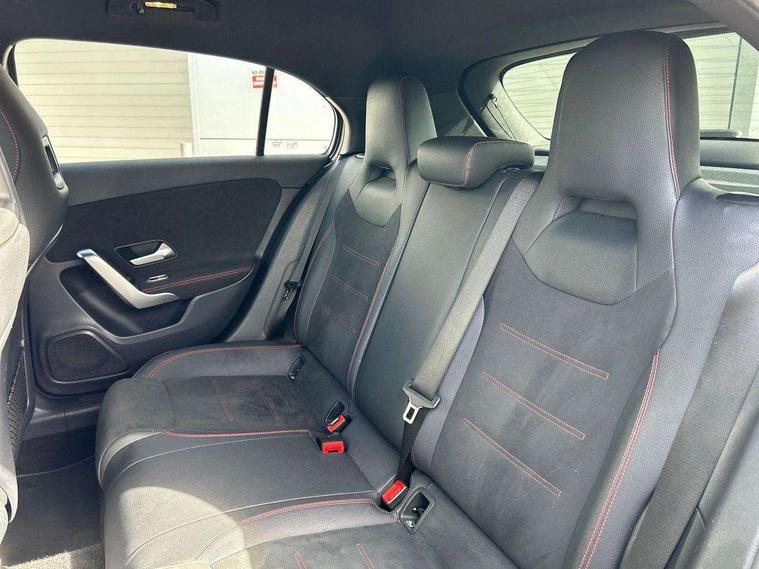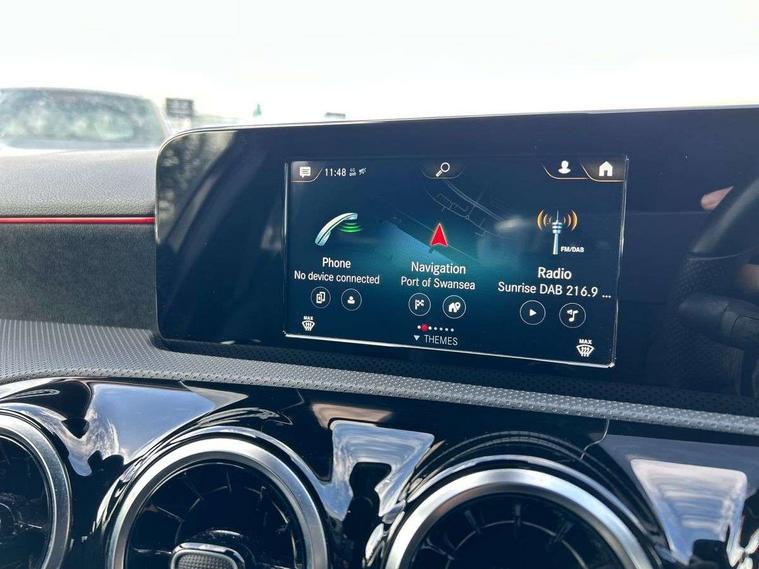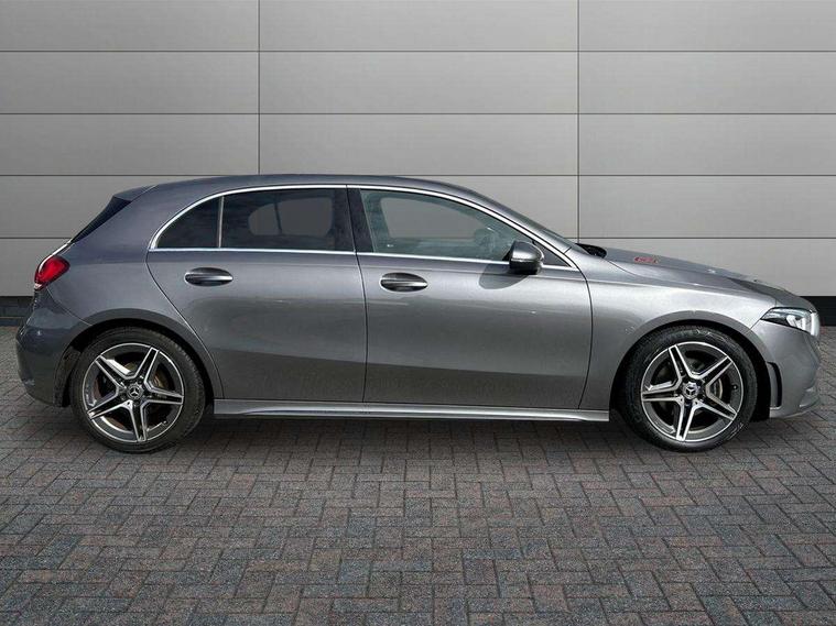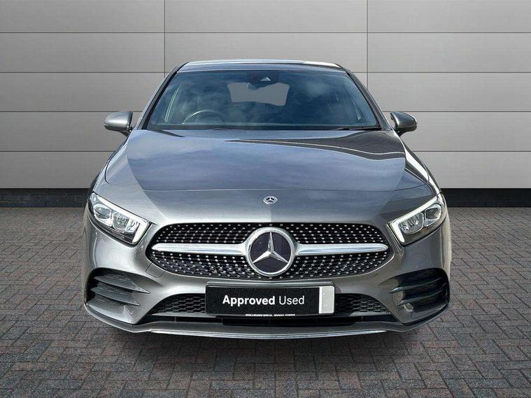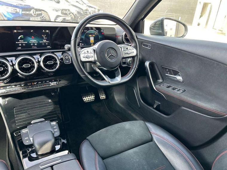 180 degree rear view camera with parking guidelines, 7" colour screen in instrument panel, 7" touchscreen media display, Attention assist, Brake pad wear indicator warning light, Car wash mode, Cruise control + speed limiter, Direct steering, Dual bluetooth interfaces, DYNAMIC SELECT with a choice of driving modes (ECO, Comfort, Sport and Individual), ECO start/stop function, Fluid level warning indicator for fuel, oil, coolant and washer fluid, Hard-disk navigation, Hey Mercedes Voice activation, Lamp failure indicator, Mercedes me connect including emergency call system, accident recovery, breakdown management and maintenance, Mercedes me remote services, Outside temperature gauge, Owners manual in English, Pre-installation for car sharing, Preinstallation for Mercedes Benz link, Service indicator (ASSYST), Speed sensitive power steering, Trip computer, Lowered comfort suspension, Rear axle torsion beam, 2 USB ports (type C) in rear stowage compartment and one in front of center console, 6 speakers, DAB Digital radio, MBUX multimedia system with DAB digital radio and touchpad including satellite navigation, Mercedes-Benz sound system - 100W, 4 Electric Front and Rear windows, Adaptive brake lights, AMG bodystyling - Front apron with splitter in chrome, rear apron with chrome trim and chrome visible trim elements in tailpipe, Black weather strip, Body colour bumpers, Body colour door handles, Body colour side skirt, Body coloured door mirrors, Chrome beltline trim, Diamond radiator grille with chrome pins and silver louvre + chrome insert, Electric adjustable and heated door mirrors with integrated LED side indicators, Exhaust system - Twin visible tailpipes in polished stainless steel, Headlamp assist automatic headlamp activation, Heated glass rear windscreen + timer control, LED high performance headlamps with integrated LED daytime running lights, LED tail lamp, LED third brake light, Privacy glass, Radio aerial, Rain sensing windscreen wipers with two sensitivity settings, Rear fog lights, Rear wiper, Window line trim strip in chrome, 3 Spoke flat bottom leather multi function steering wheel with perforated leather in grip area, 40:20:40 split folding rear seats, Artico man-made leather/Microfibre Dinamica upholstery with red contrast stitching, Auto Mercedes-Benz child seat recognition sensor, Black air vents with surround in silver chrome, Black roof lining, Brushed stainless steel sports pedals with rubber studs, Controller on centre console with chrome surround, Floor mats with stitched edging and AMG lettering, Front centre armrest with storage compartment, Front door sills with Mercedes Benz lettering, Front seat backs luggage nets, Front seat cushion length adjustment, Galvanished gear shift paddles on steering wheel, Heated front seats, Height/reach adjustable steering column, Interior mirror with reading lamps in black and frameless, ISOFIX and top tether child seat fixing points in two outer rear seats, Manual height adjustable front seats, Rear head restraints, Seat occupancy sensor for front passenger seat, Sports seats with integrated headrests, Stowage compartment in centre console with retractable cover, Sunvisors with illuminated vanity mirrors, Touchpad on center console, Twin front cupholders, Two zone thermotronic luxury automatic climate control, Light and sight pack - A Class, Seat comfort pack - A Class, 3 rear 3 point seatbelts, ABS with Brake Assist, Active bonnet, Active brake assist includes forward collision warning system with autonomous braking, Adaptive brake assist with hold function and hill start assist, Black seatbelts, Childproof locks manually operated for rear doors and electrically operated for rear power windows, Crash responsive emergency lighting, Driver and passenger head and side airbags, Drivers knee airbag, Dual stage driver/passenger airbags, Electronic parking brake, ESP curve dynamic assist, ESP with ASR, Front and rear seatbelt reminder, Front brake callipers with Mercedes Benz lettering, Tyre pressure monitoring system, Warning triangle and first aid kit, Window airbags, Alarm system/interior protection/immobiliser, Keyless Go, Remote central locking and crash sensor with emergency opening function, Urban guard vehicle protection system with immobiliser and interior protection, Dinamica microfibre trim in black, 18" AMG 5 twin spoke light alloy wheels in titanium grey with highsheen finish, Summer tyres, Tirefit sealant kit,
