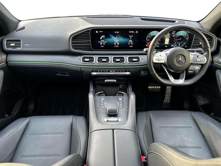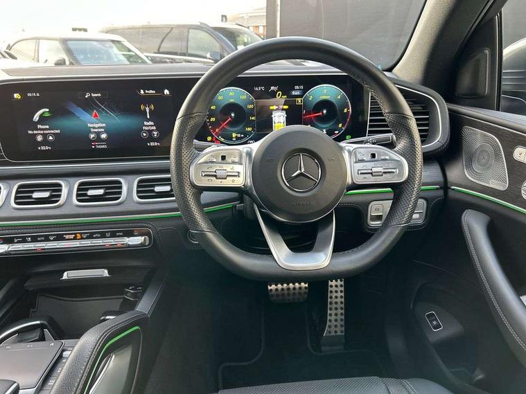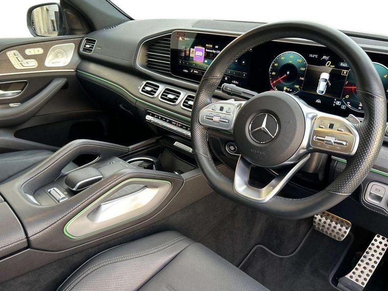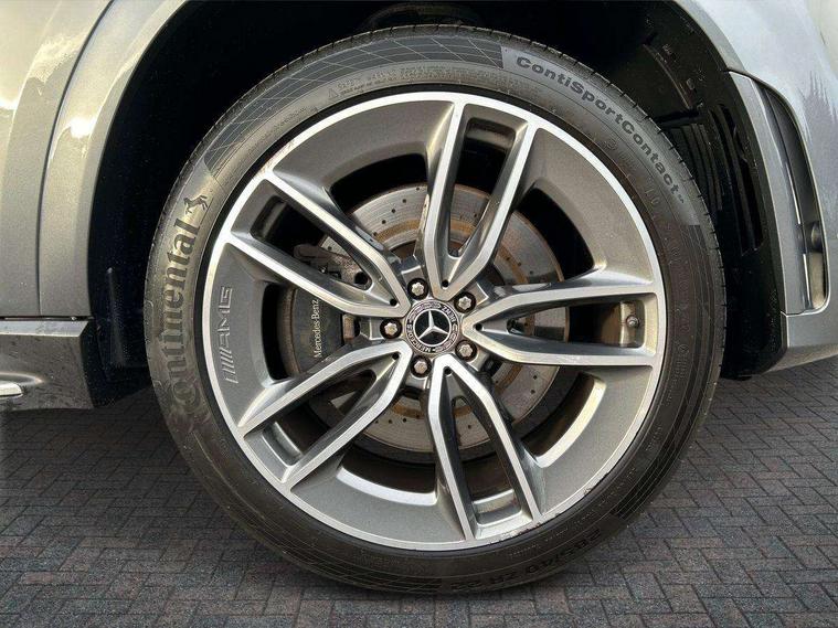 Attention assist, Cockpit display 12.3" widescreen digital instrument cluster, Crosswind Assist, Cruise control, Direct steer speed sensitive steering, DYNAMIC SELECT with a choice of driving modes (ECO, Comfort, Sport and Individual), Easy-pack tailgate - Powered opening/closing automatically, ECO start/stop function, Head up Display, Lane keeping assistant (LKA), Mercedes me connect including emergency call system, accident recovery, breakdown and maintenance management, Outside temperature display, rear seatbelt status indicator, Parking pilot with 360 degree camera, Reversing camera, Service indicator (ASSYST), Smartphone integration with Apple CarPlay and Android auto, Sports direct steer system with speed sensitive power assistance, Traffic Sign Assist, Traffic sign recognition including wrong way warning function and display of posted speed limits in the instrument cluster, 4MATIC permanent four wheel drive, 85 litre fuel tank, 9G TRONIC automatic transmission with steering column gear selector, DIRECT SELECT steering wheel gearshift paddles, Airmatic air suspension with adaptive damping system, Diesel particulate filter (DPF), Bluetooth interface for hands free and audio streaming, Burmester surround sound system, DAB Digital radio, Hard disk navigation with MBUX multimedia system, 3rd brake light, Adaptive brake lights, Adaptive high beam assist plus, Aluminium look, illuminated running boards with rubber studs, AMG bodystyling front and rear bumpers, Body colour door mirrors, Body coloured bumpers, Daytime running lights, Electric panoramic sunroof with sunblind, Electric windows with one touch opening/closing and obstruction sensors, Exhaust system - twin pipe with two integrated chrome tailpipe trims, Front and rear underbody protection with chrome look finish, LED tail lamp, Magic vision control with adaptive windscreen wiper system, Multi beam LED headlights, Privacy glass - heat insulating dark tinted glass, Radiator grille with integrated star and single louvre in matt iridium silver with chrome trim, Rain sensing windscreen wipers, Rear side wing doors, Rear wash/wipe, Top surround of side windows in polished aluminium, 2 cup holders in front and rear, 2 rear head restraints, 3 seat bench in 2nd row, 3 spoke AMG multifunction steering wheel with touch control buttons, trimmed in black nappa leather with flattened bottom section, 4 way adjustable front head restraints and 2 way rear head restraints, 40:20:40 split folding rear seats, AMG floor mats with AMG lettering, Artico man-made leather upper dash trim, Automatic child seat recognition sensor, Climatised front seats, Courtesy lights in rear grab handles with reading light functionality, Driver and front passenger cup holders temperature controller, Electric adjust front headrests, Electrically adjustable front seats with memory function, Electrically height and reach adjustable steering column with memory, Folding rear armrest, Front centre armrest with stowage compartment and illuminated grab handles, Glove compartment - lockable, air conditioned and illuminated, Heated front seats, Illuminated stainless steel door sill panels with Mercedes-Benz lettering, Interior lighting - 64 colour Ambient lighting, Luggage compartment cover, Nappa leather upholstery, Single front passenger seat, Sports pedals with stainless steel surfaces and rubber studs, Sunvisors with illuminated vanity mirrors, Thermotronic automatic 4 zone climate control, Touchpad, Two (type C) USB ports in centre console, Acoustic comfort pack - GLE Coupe, Driving assistance pack - GLE Coupe, Interior chrome package - GLE, KEYLESS-GO Comfort package - GLE Coupe, Memory package - GLE Coupe, Mirror package - GLE Coupe, Parking package - GLE Coupe, 3x3 point rear seatbelts, Active bonnet, Active braking assist, Airbags - windowbags, Anti-lock braking system (ABS), Child proof door locks, Downhill speed regulation (DSR) with switch and variable speed control, Driver/front passenger airbag, Drivers knee airbag, Electronic four wheel traction control, Electronic parking brake, Electronic stability programme with acceleration skid control, First aid kit, warning triangle and high visibility jacket, Front side airbags, Hill hold function, Hill start assist, ISOFIX child seat attachment points two outer rear seats, Perforated front brake discs and brake calipers with Mercedes-Benz lettering, Pre-Safe anticipatory safety system, Tyre pressure monitoring system, Alarm system/interior protection/immobiliser, Chrome surround in electric key, Remote central locking, Urban guard vehicle protection, Dashboard and door, anthracite open pore oak wood trim, 22" AMG 5 twin spoke tremolite grey with high sheen finish light alloy wheels, Summer tyres with noise reducing absorber, TIREFIT with tyre inflation compressor,