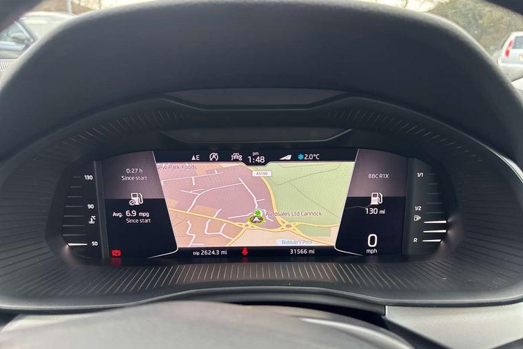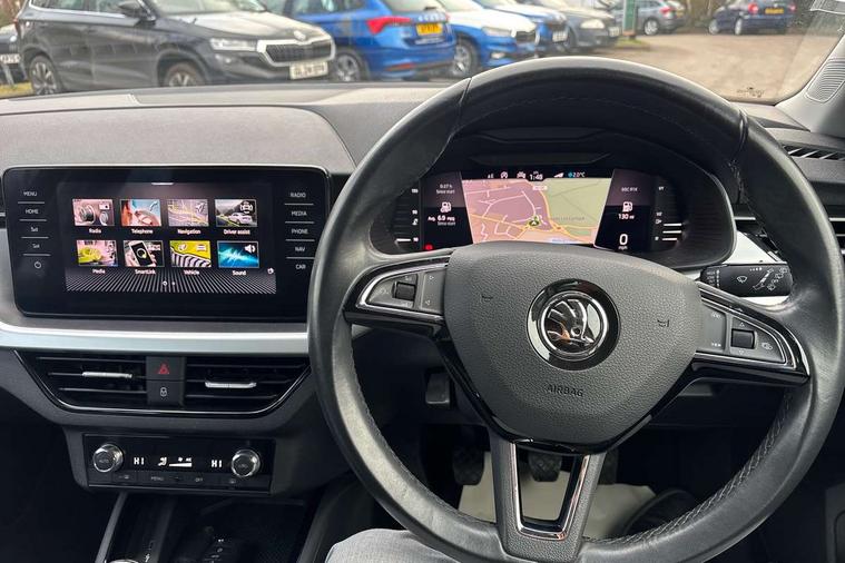 Amundsen satellite navigation with 9.2" touchscreen display, web radio and voice control, Blind Spot Detection (BAS), Bluetooth system, E-call, Front assist system, Lane assist, PAS, Service indicator, Speed limiter, Trip computer, Virtual cockpit with 10.25" display, Wireless SmartLink for Apple Car Play, 2 USB - C ports with 1x adaptor cable, Auxiliary input socket, DAB Digital radio, Auto dimming rear view mirror, Body colour bumpers, Body colour door mirrors and handles, Chrome grille surround, Electric folding door mirrors, Electrically adjustable and heated door mirrors, Front and rear electric windows, Headlight range control, Heated rear window, High functionality rear led lights with dynamic indicators, Light and rain sensors, Privacy glass, Rear fog lights, Rear wiper, 12V Accessory socket in centre console, Chrome inner door handles, Dual zone climate control, Front gesture control, Front head restraints, Glove compartment with illumination, Ice scraper, Isofix child seat fittings on outer rear seats, ISOFIX on front passenger seat, Manual lumbar support for front seats, Pollen filter, Rake/reach adjustable steering wheel, Reading lights for driver and front passenger, Sun visor with make up mirror for front passenger, Textile floor mats, Third rear headrest, Top tether for front passenger seat, Umbrella in driver's door, 3x3 point rear seatbelts, Airbags - driver and front passenger, ESP, Front passenger airbag deactivation switch, Front side airbags with curtain airbags, Hill hold control, Manual parking brake, One tone horn, Rear disc brakes, Seatbelt reminder for driver an co-driver, Traction control, Tyre pressure monitor, Alarm with interior monitoring, back up horn and tilt sensor with safe function and towing protection, Anti-theft wheel bolts, Immobiliser, Remote central locking with SAFE system,