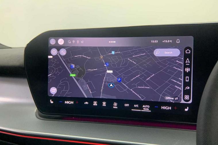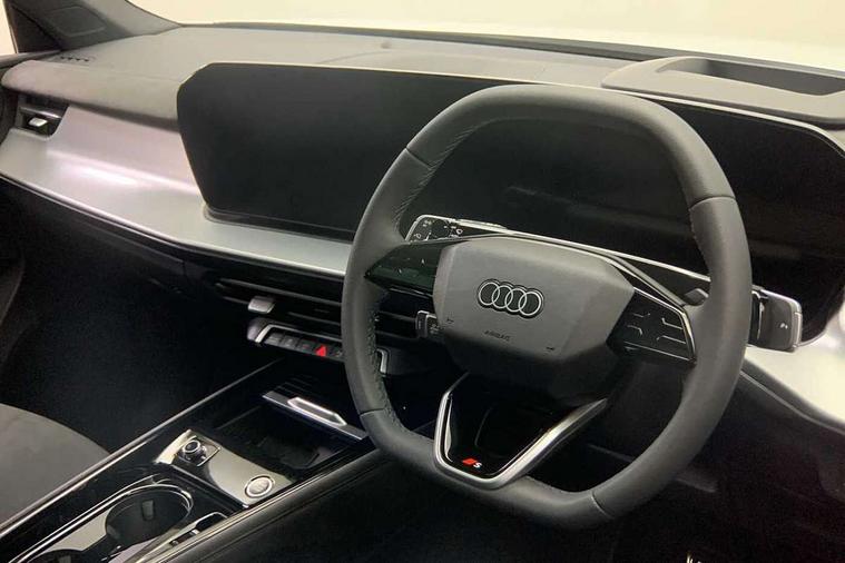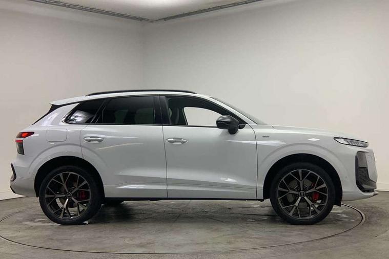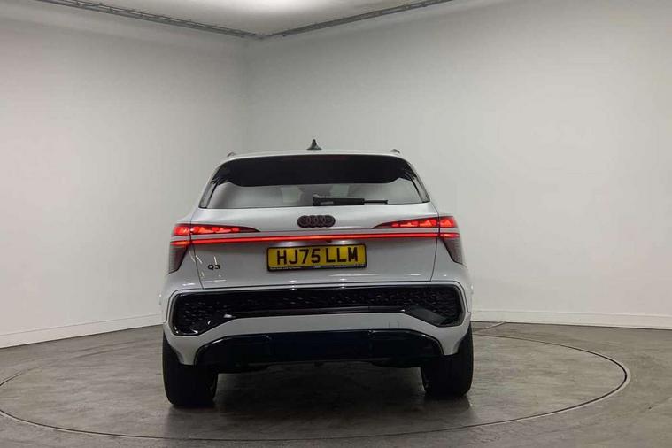 Adaptive cruise assist plus, Audi connect emergency call and service, Audi connect remote and controls, Audi drive select for suspension with damper control, Audi side assist with exit warning and rear cross traffic assist, Audi virtual cockpit plus - 11.9" display, Bluetooth interface, Camera based traffic sign recognition, Driver attention and fatigue monitor with driver monitoring, Emergency assist, Front cross traffic assist, Garage door opener, Head up Display, In-car-office assist, Panoramic curved display with 12.8" MMI navigation plus and MMI touch, Phonebox light with wireless charging, Progressive steering, Projection of a black ice warning, Smartphone interface includes wireless Apple carplay/Android Auto, Start/stop system, Surround view cameras, Swerve assist and turn assist, Traffic sign based speed limiter, Trained parking, Voice control system with natural language interaction, 3 pin 10 amp domestic charging cable, Charging socket CCS type 2, Compact charging system, Industrial connector CEE 32A, 230V, Mode 3 charging cable for public charging, 22 KW (AC), Petrol Particulate Filter, Sound actuator for interior drive sound, Suspension with damping control, 2 USB-C ports with charge and data functions, DAB digital radio module, SONOS premium sound system, USB interfaces with higher charging capacity, Acoustic glass for front door windows, Acoustic windscreen, Advanced dynamic light scenario of the coming home/leaving home function, Aluminium window trim, Audi Q3 lettering on the B-pillars, Auto dimming rear view mirror, Automatic dynamic headlight range control, Automatically dimming exterior mirrors with memory function, Contrasting finish in volcano grey, Cornering light, Digital matrix LED headlights, Digital OLED rear lights, Dipped beam, Dynamic indicators, Electrically folding, adjustable and heated door mirrors with integrated LED side indicators and kerb view function for passenger side, Full paint finish, Headlight cleaning system, High resolution main beam, Illuminated door sills with aluminium inserts at the front with S logo, Intersection light, Lane light with side assist and direction indicator, LED daytime running lights, LED third brake light, Loading sill protector in stainless steel, Manoeuvring light, Motorway light, Opening panoramic sunroof, Orientation light with lane departure warning, Position light, Preparation for trailer hitch, Privacy glass - dark tinted rear window, rear door and side windows, Projection light in the exterior mirrors - Projects a graphic element onto the ground, Q3 badging on the rear, Rain and light sensors, Rear side wing doors, Rear window, rear door windows and rear side windows in clear glass, Rear wiper, Solid paint, Sports bumpers, Turning light, 3 seat bench in 2nd row, 3 spoke flat top and bottomed leather free multi function Sport steering wheel with gear shift paddles and "S" badging, 3-zone deluxe automatic air conditioning, 4 way lumbar support for the front seats - electric with horizontal and vertical adjustment in four directions, Black cloth headlining, Convenience auxiliary air conditioning, Electrically adjustable front seats with memory function for driver's side, Front and rear floor mats, Front and rear headrests, Front centre armrest, Heated front seats, Height and reach adjustable steering wheel, Interior storage compartment, Luggage compartment lid, electrically opening and closing, Microfibre upholstery with rhombus pattern and S emblem + front sports seats, Single front passenger seat, Stainless steel pedals, Steering wheel operating unit, gloss black, Storage compartment in front centre console, Ambient lighting package pro - Q3, Black styling pack with black door mirrors - Q3, Function pack - Q3, 3 point seat belts in front, with pretensioner and electric height adjustment, 3x3 point rear seatbelts, Acoustic vehicle alerting system, Convenience key with safelock, Driver and front passenger airbag with passenger airbag deactivation, Electromechanical parking brake, Electronic stabilisation control including ABS, ASR and EDL, First aid kit with warning triangle and high visibility vests, Front and rear side airbags with head airbags and front interaction airbag, Front emergency brake assist, i - Size child seat mounting on the front passenger side and i - Size and top tether on the outer rear seats, Power operated child locks, Proactive occupant protection, front, side and rear, Rear side airbags, Red brake callipers, front and rear, Seatbelt monitoring, Tyre pressure loss indicator, Anti theft wheel bolts, Remote central locking, Thatcham approved category 1 anti theft alarm, Dark aluminium divergence inlay, Interior elements in dinamica microfibre, Interior trims in aluminium look, 20" 5 spoke tripod design alloy wheels with gloss turned finish in darkened metallic black, Tool kit and Jack, Tyre repair kit,