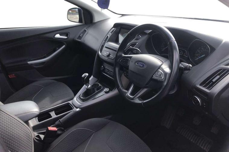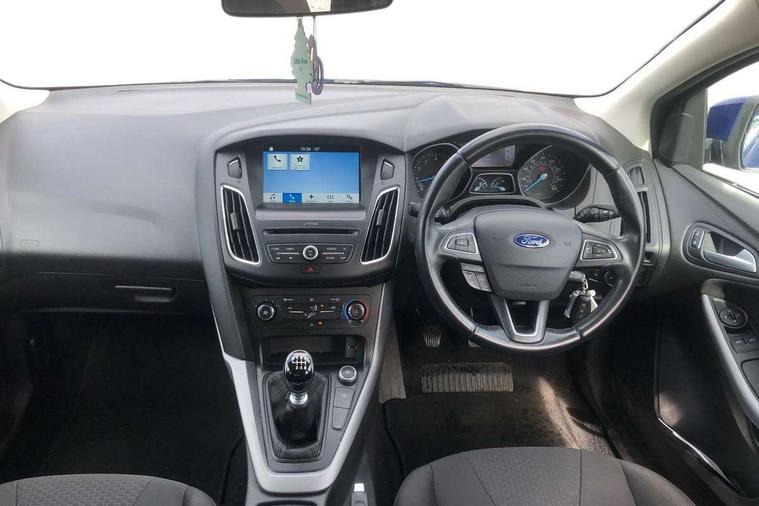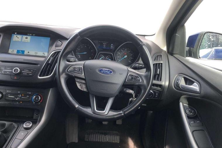 Cruise control + speed limiter, Digital clock, Easy fuel capless refuelling system, Eco mode, Electric boot release, PAS, Rear parking sensor, SYNC 3 nav system with DAB radio/CD, 8" colour touch screen, bluetooth, emergency assistance, advanced voice control and 6 speakers, TFT cluster screen, Trip computer, Aux input, Steering column with mounted audio controls, USB connection, 'Quickclear' heated windscreen/heated washer jets, Body colour bumpers, Body colour door handles, Body colour door mirrors, Body colour rear spoiler, Chrome finish on upper door line, Chrome radiator grille and surround, Electric adjustable heated door mirrors, Front fog lights, Front variable intermittent wipers with electric wash, Heated rear window, Rear privacy glass, Tailgate wash/wipe, 3 spoke leather steering wheel, 60/40 split back and cushion rear seats with 2 height adjustable headrests, Air conditioning - CFC-free, Centre console storage box/armrest, Cloth upholstery, Driver's seat manual height adjust, Driver's seat with adjustable lumbar support, Front floor mats, Height adjustable front headrests, Isofix child seat preparation, Reach + rake adjustable steering column, Sports style front seats, ABS+Electronic Brake force Distribution, Driver airbag, ESP with traction control + emergency brake assist, Front inertia reel height adjustable seatbelts with pre-tensioners, Front passenger airbag, Front side airbags, Hill start assist, Side curtain airbags, Three rear inertia reel lap/diagonal seatbelts, Torque vectoring brake, Tyre pressure monitoring system, Immobiliser-Passive Anti-Theft System (PATS), MyKey system, Remote central double locking, Thatcham Cat.1 alarm,