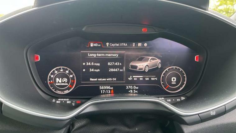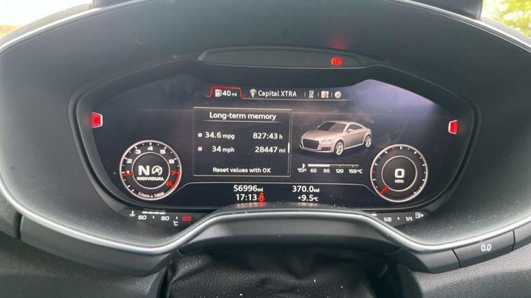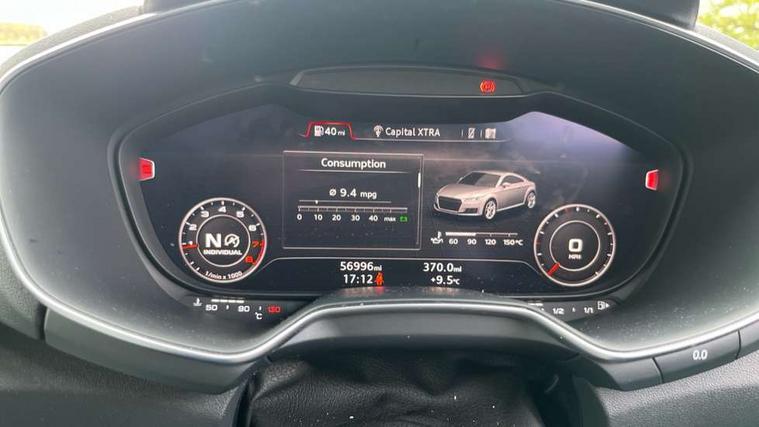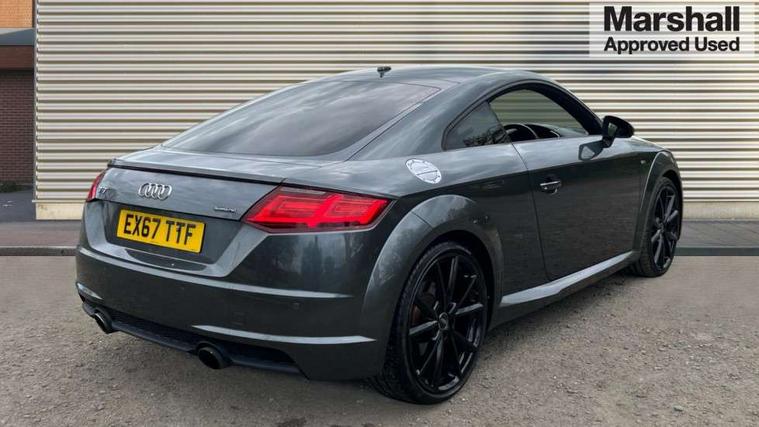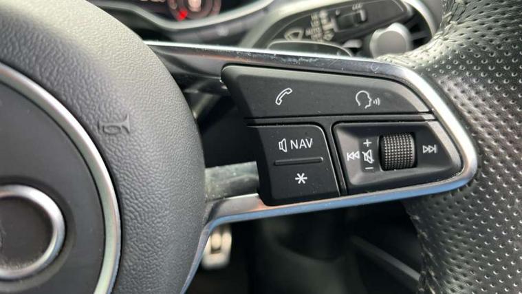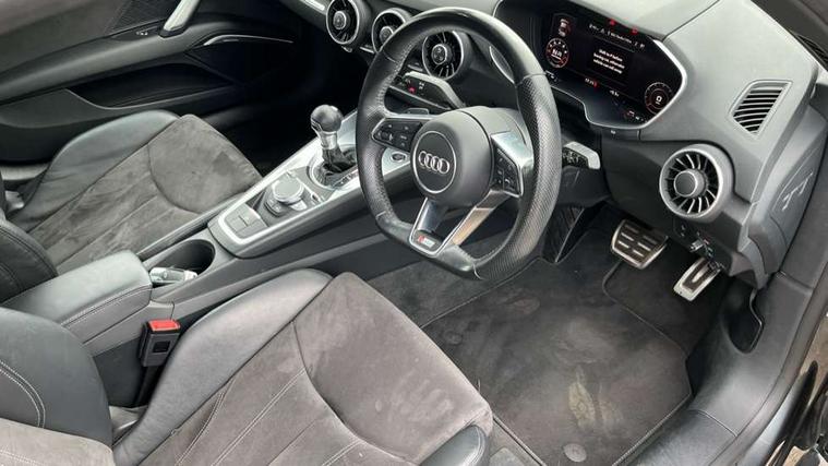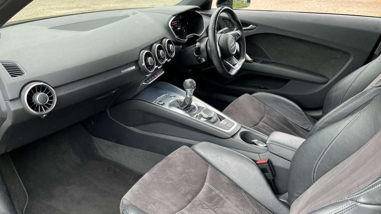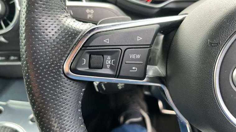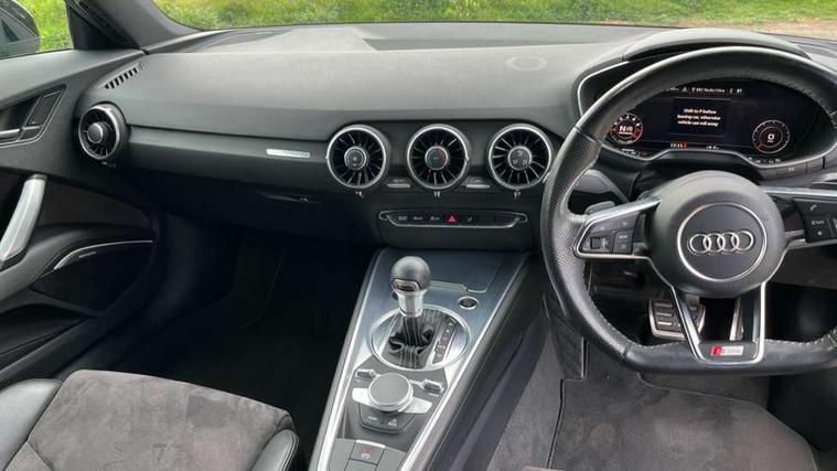 Audi drive select, Audi virtual cockpit - 12.3" high-resolution LCD display with fully customisable instrument cluster, Cruise control + speed limiter, MMI touch panel, Mobile phone preparation with bluetooth interface, Progressive power assisted steering, Service interval indicator, Audi music interface, Auxiliary input socket, Bluetooth audio streaming, DAB Digital radio, MMI Radio with CD player and SD/XC card slot, Auto headlight range control, Black door mirrors, Body colour bumpers, Electric front windows, Front fog lights, Green tinted heat insulating glass, High gloss black front grille, LED daytime running lights, LED rear lights, Matt black radiator grille and number plate holder, Privacy glass, Rear diffuser, Retractable rear boot spoiler, S Line body styling, Sunband for windscreen, 3 spoke leather multi-function sport steering wheel including paddle shift, Aluminium door sill trims, Black headlining, Electric lumbar support, Extended aluminium look with stainless steel pedals, Front centre armrest, Front head restraints, Front passenger seat isofix location point, Height/reach adjust steering wheel, ISOFIX on outer rear seats, Split folding rear seat, Top tether anchor plate for isofix child seat, Auto dimming rear view mirror with light and rain sensors pack - TT, Non smoking pack - TT/TT RS, 3 point front seat belts, ABS, ASR traction control, Curtain airbags, Driver/Front Passenger airbags, EDL traction control, Electromechanical parking brake, ESP, First aid kit, Front passenger airbag deactivation, Front side airbags, Head airbags, Seatbelt warning, Tyre pressure warning, Warning triangle, Anti theft alarm, Immobiliser, Keyless start, Locking wheel bolts, Remote central locking, Matt brushed aluminium inlays, Tyre repair kit,