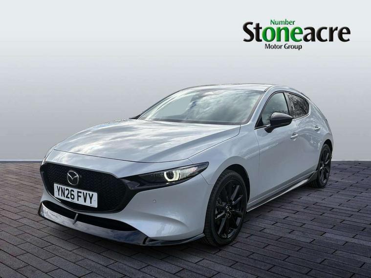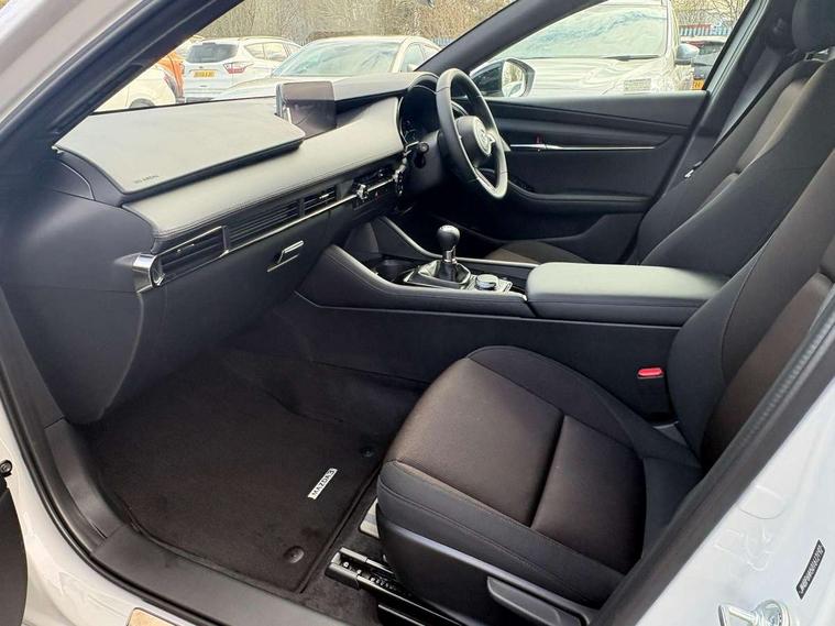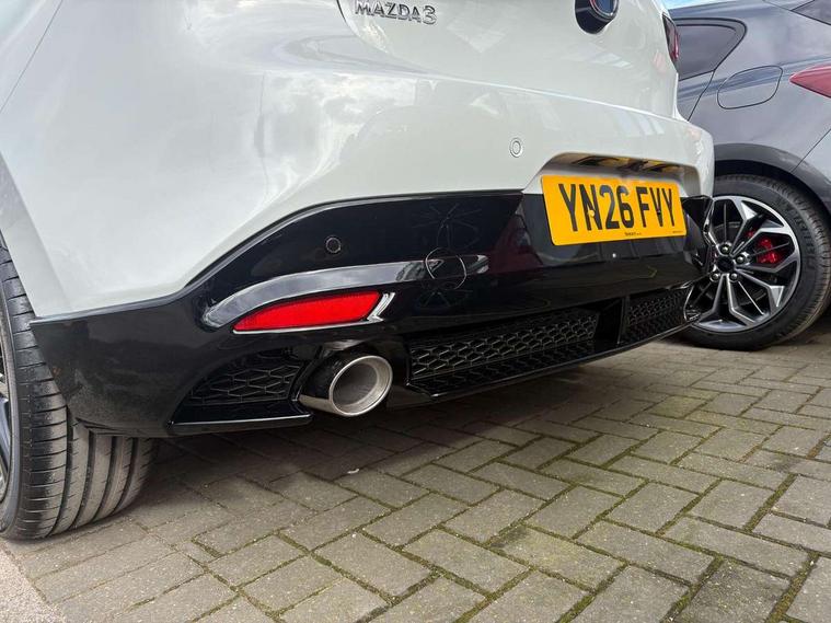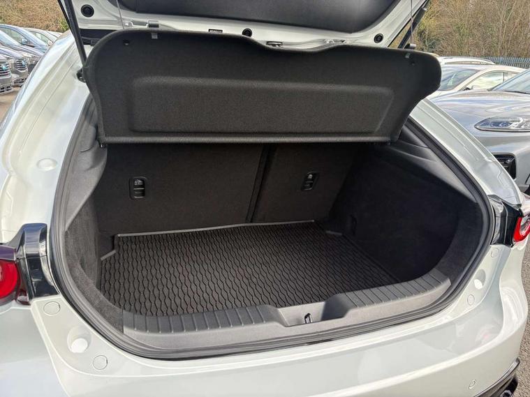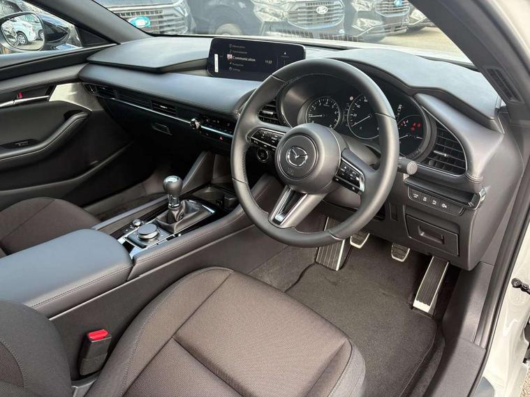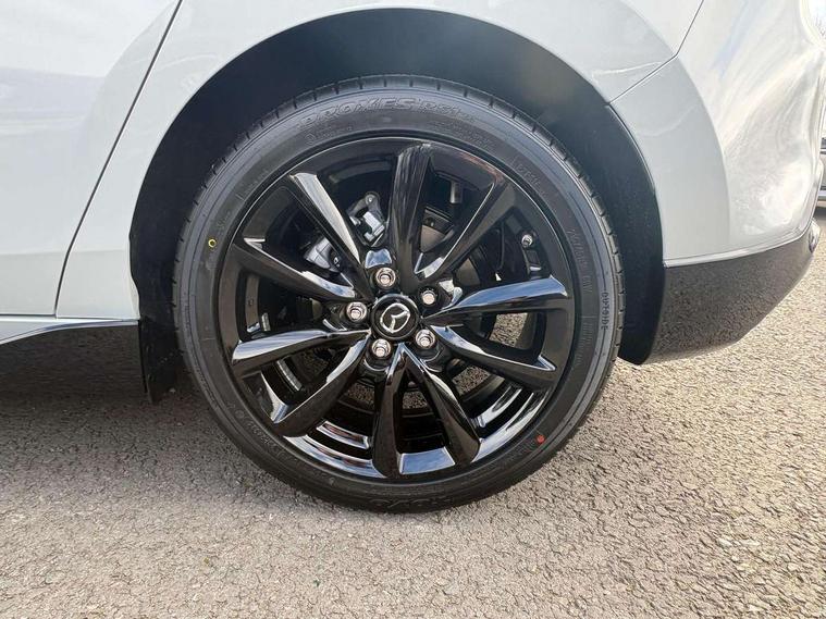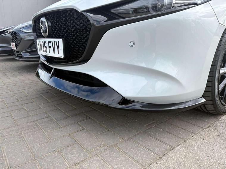10.25" display with Mazda Connect infotainment, 7" colour TFT display, Adjustable speed limiter, Advanced E-call with GPS, Alexa in-car voice assistant, Audio transfer from bluetooth devices, Blind spot monitoring with rear cross traffic alert, Car finder, Colour active driving display inc Windscreen projected, Traffic Sign Recognition, turn-by- turn navigation and Mazda Radar Cruise Control information, Digital instrument cluster, Driver attention alert system, Emergency stop signalling system, Engine start/stop button, Front and rear parking sensor with audible and visual warning, Head up Display, Integrated bluetooth with steering wheel mounted controls, Intelligent speed assist, Lane keep assist system (LAS) with Lane departure warning system (LDWS), Mazda connected services, Mazda Navigation System with european mapping, Mazda Radar Cruise Control, Mobile App interface, Multimedia Commander, PAS, Qi wireless charging, Reversing camera, Service indicator, Tailgate, Traffic sign recognition (TSR), Trip computer, Wireless Apple CarPlay/Android Auto, i-stop, 2 USB-C ports in the front, Mazda Multimedia System with AM / FM / DAB radio with 12 Speaker Bose sound system, bose centerpoint, bassmatch+audiopilot technology, Adaptive LED Headlights, Auto dimming driver's door mirrors, B-pillar garnish in piano black, Body coloured door mirrors, Coming/leaving home lighting function, Dark metallic finish signature wing, Dual chrome tailpipes tip, Dusk sensing headlights, Electric front/rear windows with one touch/auto up/down, Electrically adjustable, heated auto power folding door mirrors, Frameless auto dimming interior rear view mirror, Front body coloured bumper with black lower bezel, Front kodo turn signal, Gloss black finish front grille, Gloss black rear roof spoiler, LED auto headlight levelling, LED indicator lights, LED third brake light, Power tilt and slide sunroof, Privacy glass with dark tinting on rear side windows and rear window, Rain sensing front wipers with adjustable sensitivity and speed, Rear colour coded bumper with gloss black lower moulding, Rear fog lights, Rear side wing doors, Signature LED daytime running lights, Signature LED rear combination lights, Speed adjustable rear wash wiper with intermittent wipe, 12v electrical power outlet, 3 seat bench in 2nd row, 60/40 split fold down rear seats, Chrome interior trim accents with steering wheel centre bezel, surround of engine start / stop button and glove box handle, Cloth upholstery, Dark cloth door panel inserts, Dark roof headlining, ceiling and pillars, Driver seat manual slide, recline, height and seat tilt adjust, Driver, front passenger and two rear door pockets, Driver, Front passenger and two rear grab handles with coathooks, Driver/passenger sunvisors + vanity mirrors (drivers side with ticket holder), Dual zone climate control air conditioning, Folding rear centre armrest with two cup holders, Front and rear courtesy lamps, Front armrest, Front centre storage with two cupholders, Front head restraints, Front passenger seatback pocket, Front passengers seat manual slide, recline and height adjustment, Gear shift indicator, Heated front seats with 3 stage setting, Illuminated glovebox, Interior colouration dashboard and doorcards in black with dark stitching, ISOFIX child seat anchorage points attached on outer rear seats, Leather wrapped gear shift knob, Leather wrapped steering wheel, LED interior light, LED light in luggage compartment, Power outlet in luggage compartment, Roof mounted sunglasses holder, Single front passenger seat, Three height adjustable rear head restraints, Tilt/height adjustable steering wheel, 3 point ELR front seatbelts with pretensioners, 3 rear 3 point seatbelts with ELR, Anti-lock braking system (ABS), Drivers knee airbag, DSC - Dynamic Stability Control, Dual stage driver and single stage passenger airbags, EBD - Electronic brakeforce distribution, Electronic parking brake with auto disengage function and auto hold function, Front and rear curtain airbags, Front passenger airbag cut-off switch, Front side airbags, Front smart city brake support, G-Vectoring control plus, Hill launch assist, Intelligent Traction Control system, Manual child lock in rear doors, Mild Hybrid system with regenerative braking, Seatbelt reminder audible warning for driver, passenger and rear seats, Tyre pressure monitoring system (TPMS), Auto door lock when driving, Remote central locking + deadlocks, Smart keyless entry, Thatcham accredited alarm and immobiliser, 18" Black alloy wheels, Emergency tyre repair kit,