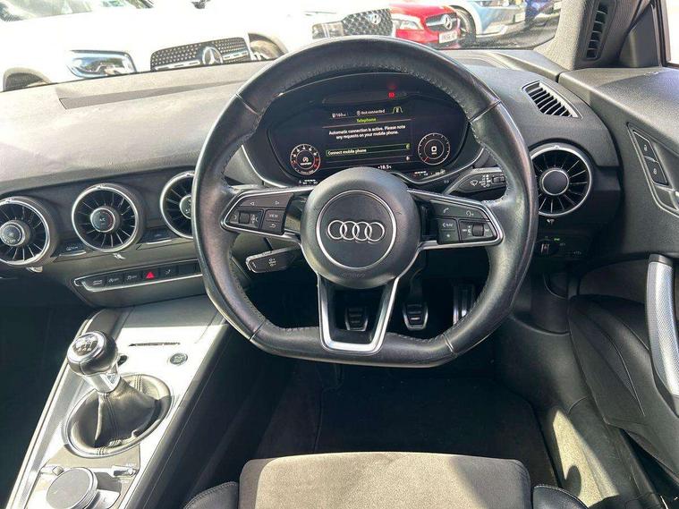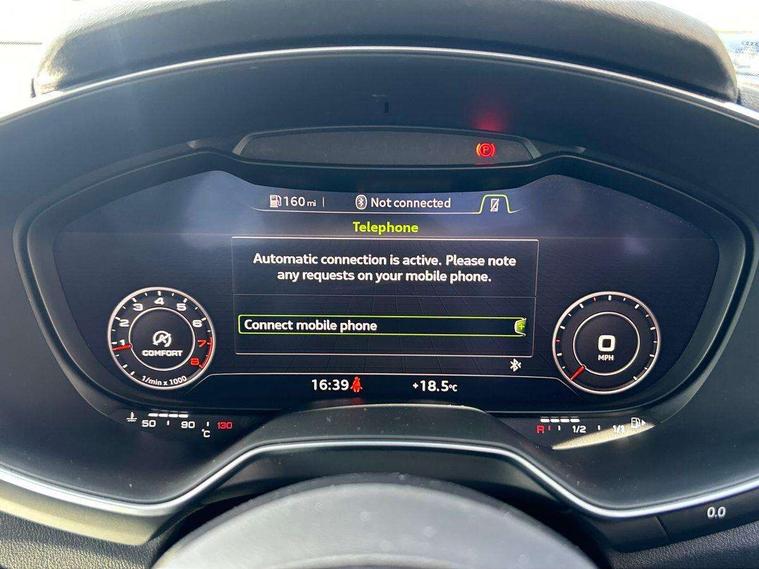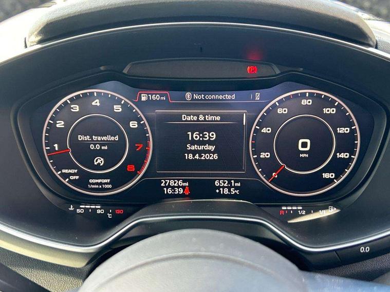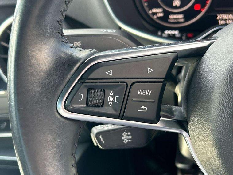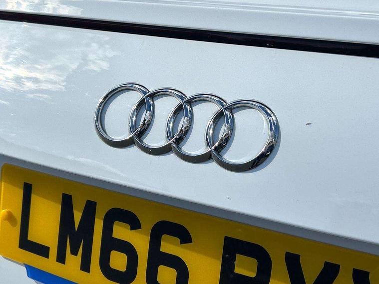 Audi drive select, Audi virtual cockpit - 12.3" high-resolution LCD display with fully customisable instrument cluster, Cruise control + speed limiter, MMI touch panel, Mobile phone preparation with bluetooth interface, Progressive power assisted steering, Service interval indicator, Sports suspension, Audi music interface, Auxiliary input socket, Bluetooth audio streaming, DAB Digital radio, MMI Radio with CD player and SD/XC card slot, Auto headlight range control, Body colour bumpers, Body colour door mirrors, Electric front windows, Green tinted heat insulating glass, LED daytime running lights, LED rear lights, Retractable rear boot spoiler, 3 spoke leather multifunction sports steering wheel, Aluminium door sill trims, Extended aluminium look with stainless steel pedals, Front centre armrest, Front head restraints, Front passenger seat isofix location point, Height/reach adjust steering wheel, ISOFIX on outer rear seats, Split folding rear seat, Top tether anchor plate for isofix child seat, 3 point front seat belts, ABS, ASR traction control, Curtain airbags, Driver/Front Passenger airbags, EDL traction control, Electromechanical parking brake, ESP, First aid kit, Front passenger airbag deactivation, Front side airbags, Head airbags, Seatbelt warning, Tyre pressure warning, Warning triangle, Anti theft alarm, Immobiliser, Keyless start, Locking wheel bolts, Remote central locking, Tyre repair kit,